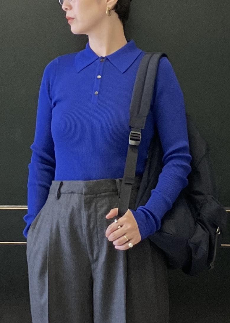 ADAM ET ROPÉ FEMME【J'aDoRe限定】【AURALEE(オーラリー)】SUPER FINE WOOL HIGH GAUGE RIB KNIT POLOブルー / 1¥39,600レビュー綺麗なロイヤルブルーのオーラリーのリブニット。