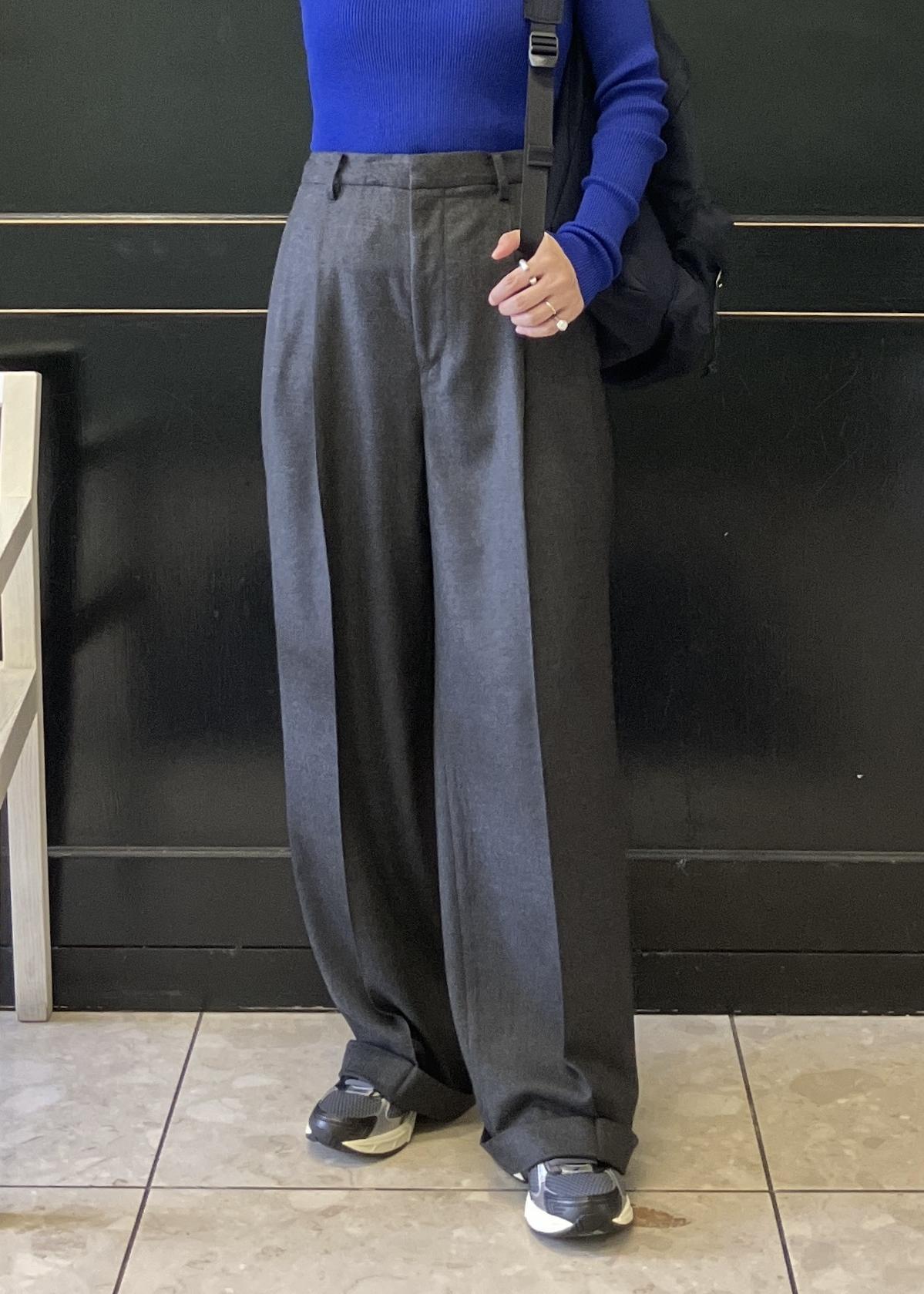 ワイドシルエットながらもとても綺麗な形で、大人な品もあるパンツ。
