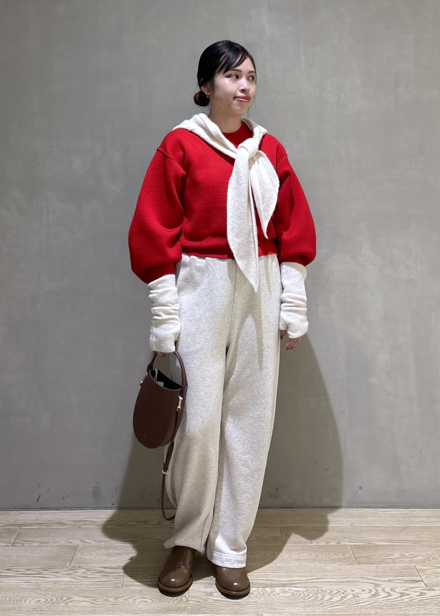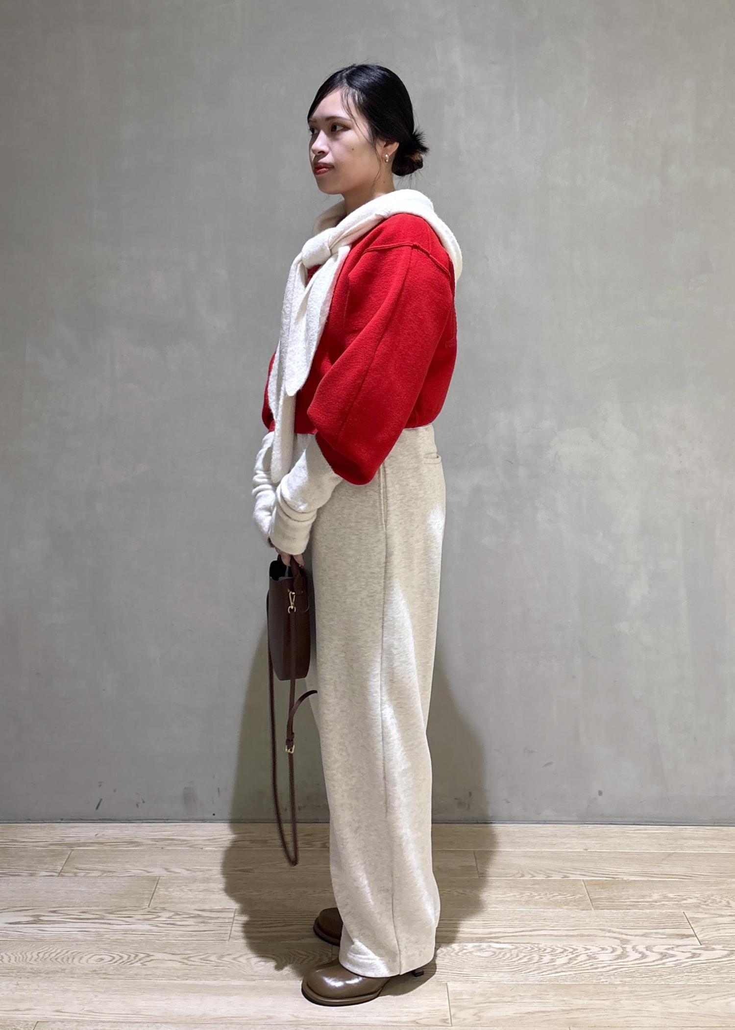 色物が好きなので赤のニットを差し込んでパンツはラフにしました。