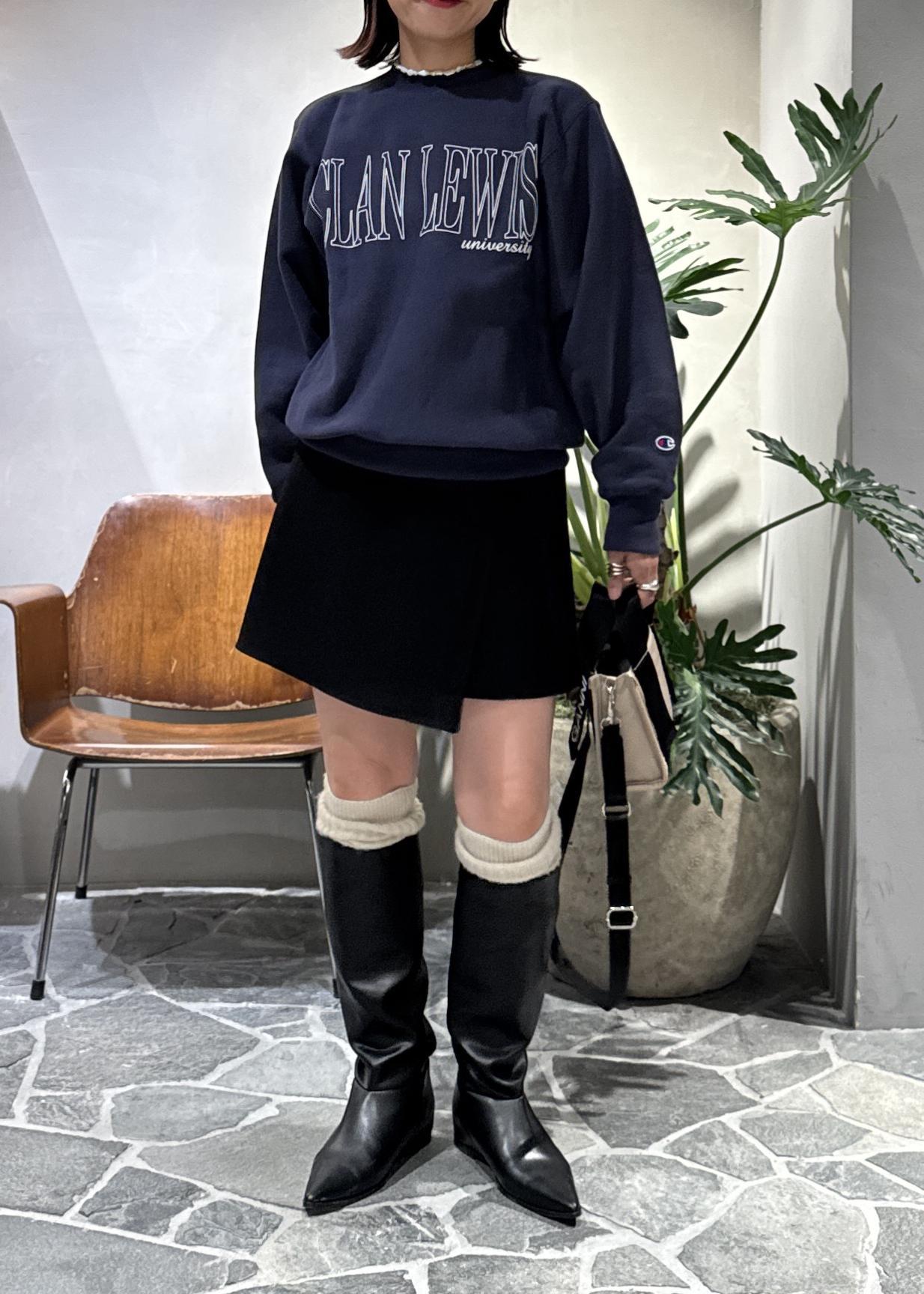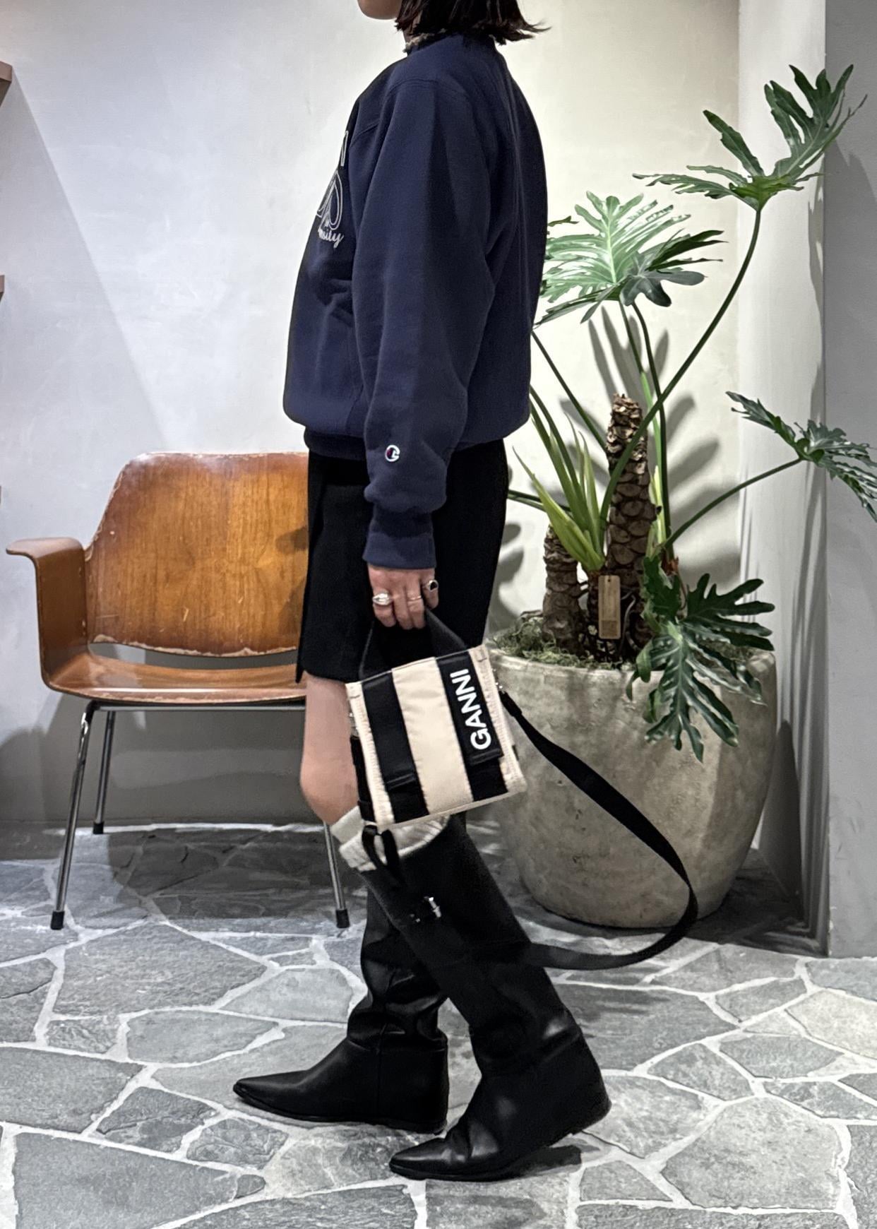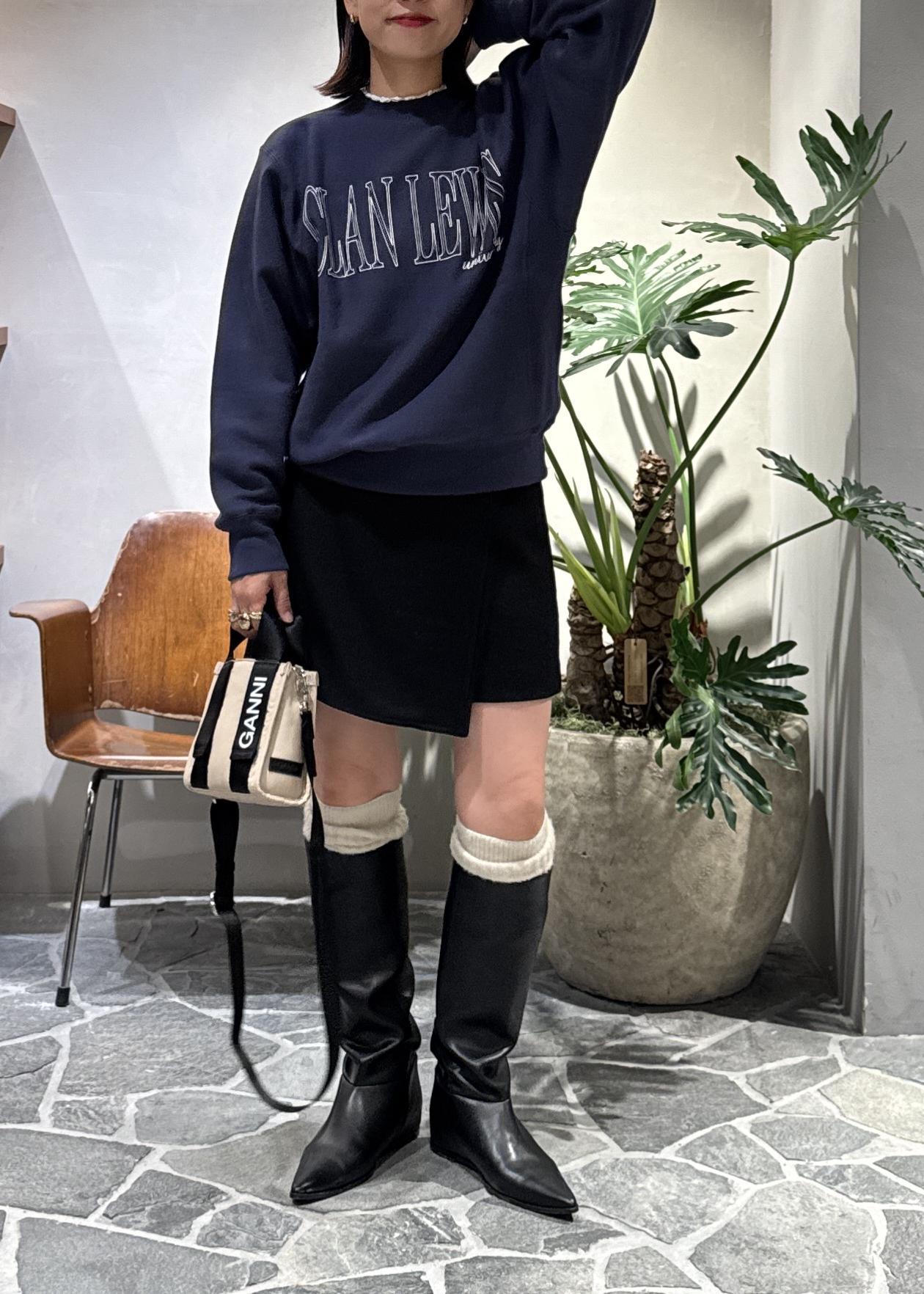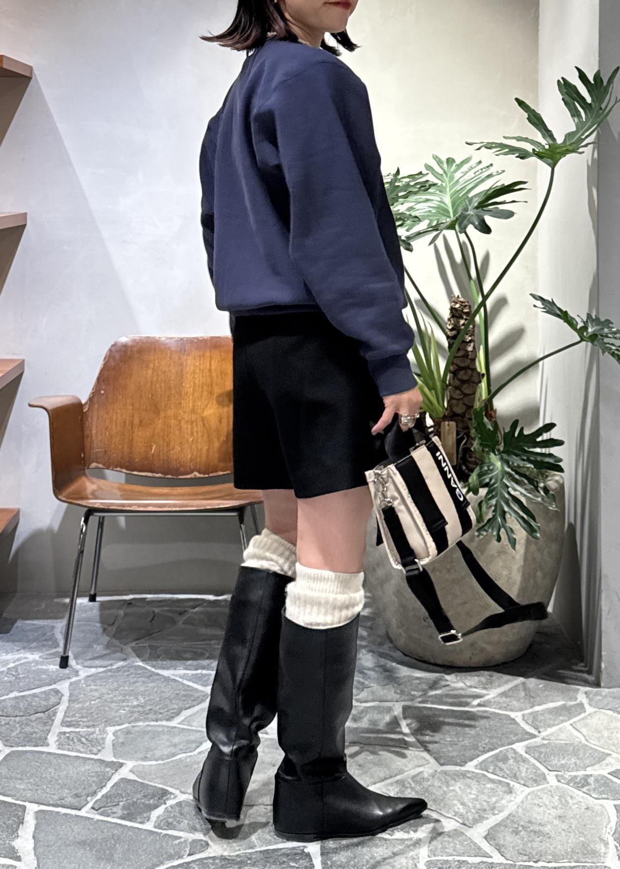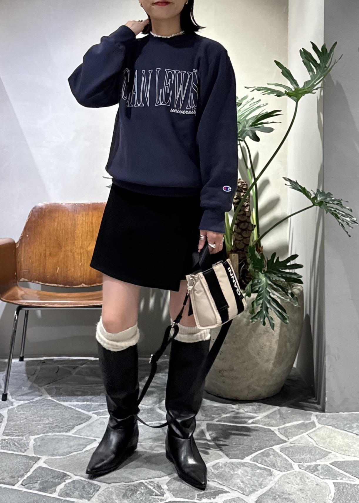 スウェットのカジュアル感が苦手な方でも使いやすいネイビーでスタイリングしました。