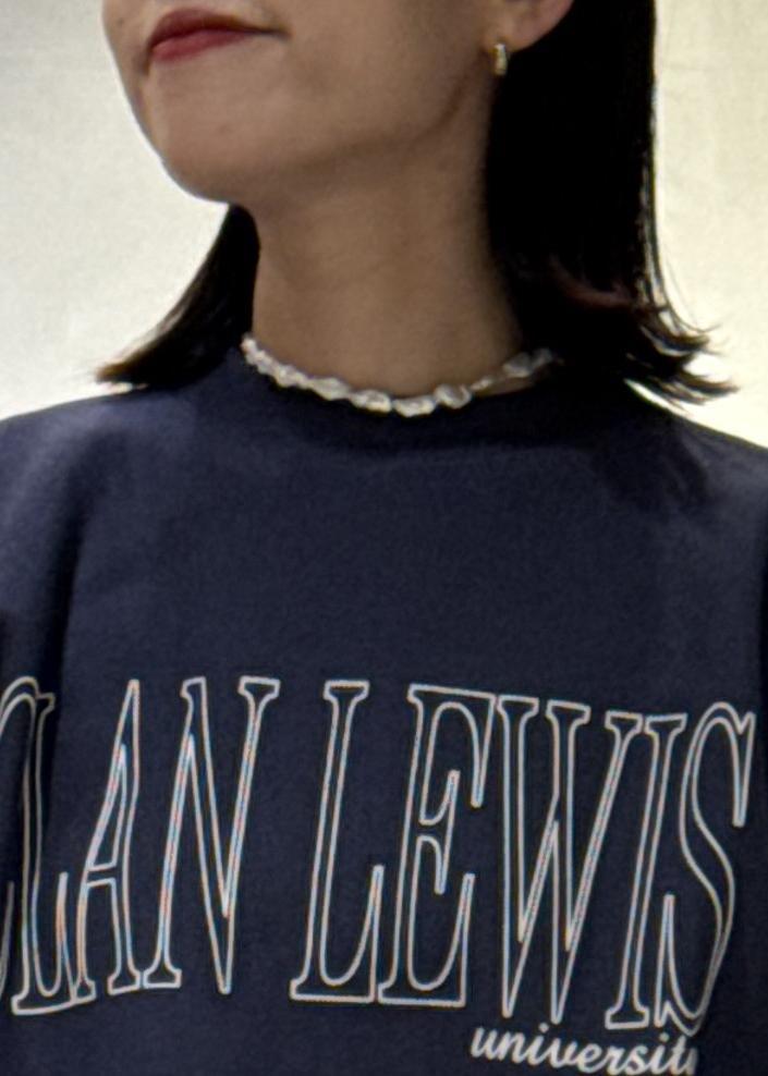 パールのチョーカーをプラスして、スウェット特有のスポーツ感やカジュアル感をソフトに仕上げました!