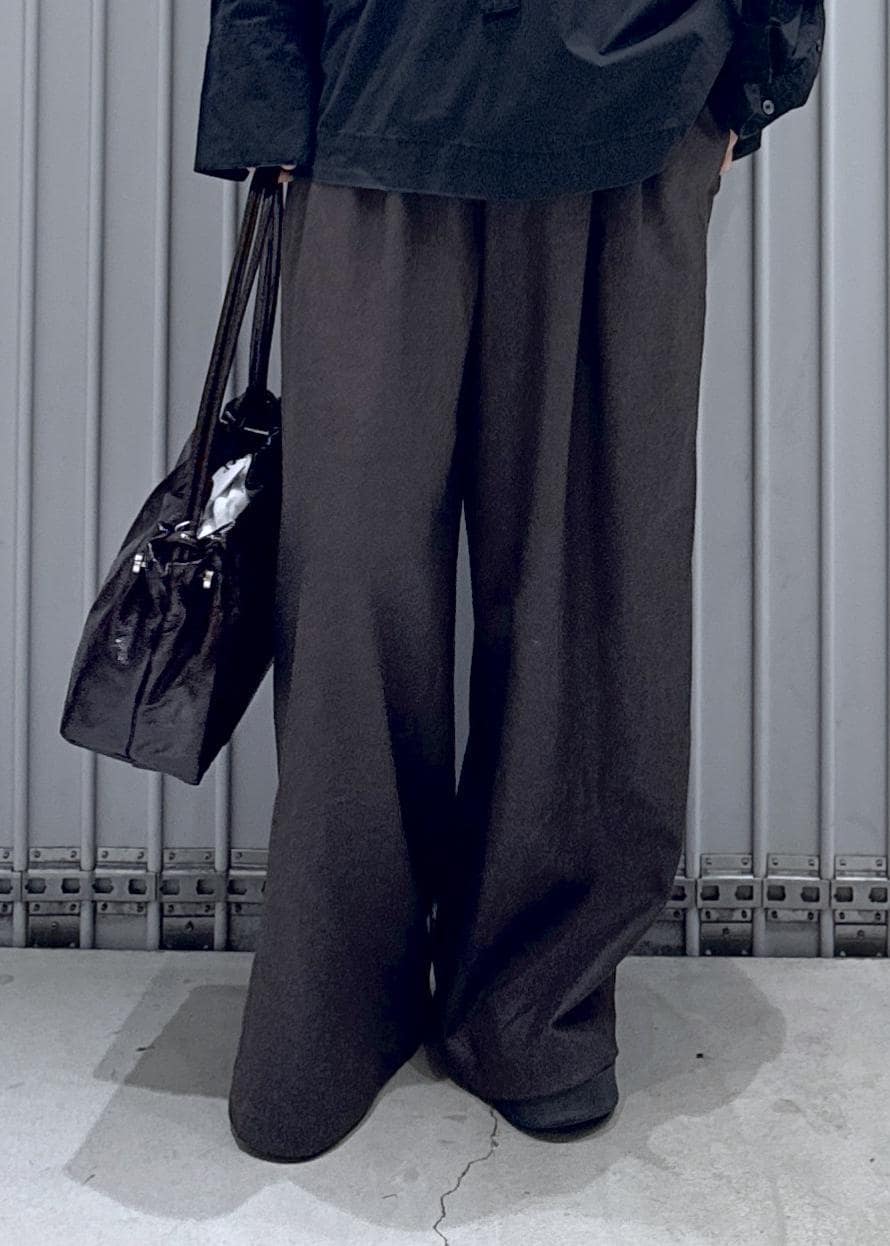 かなりワイドでボリューム感たっぷりのシルエットがシンプルなトップスに合わせてもまとまります。
