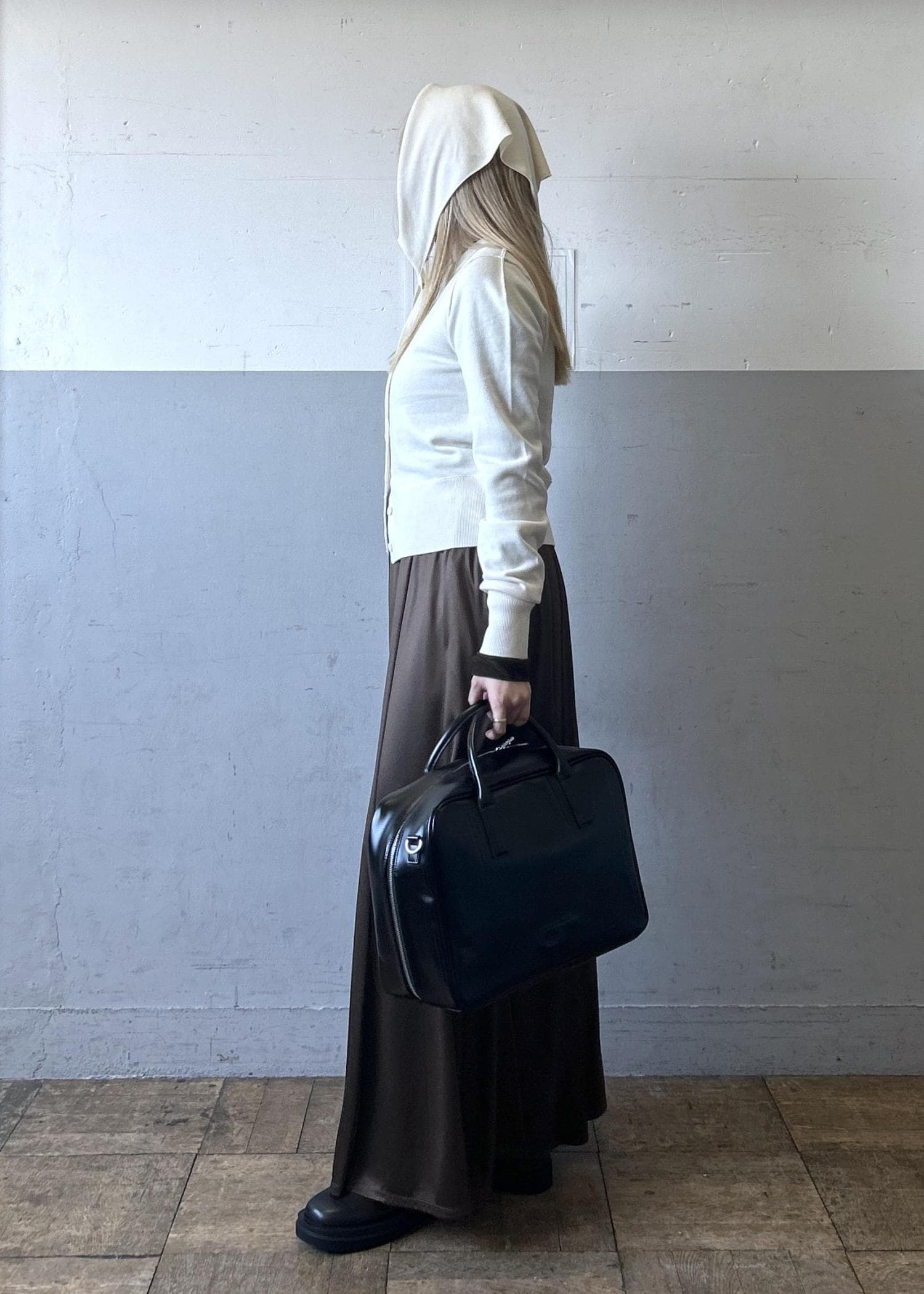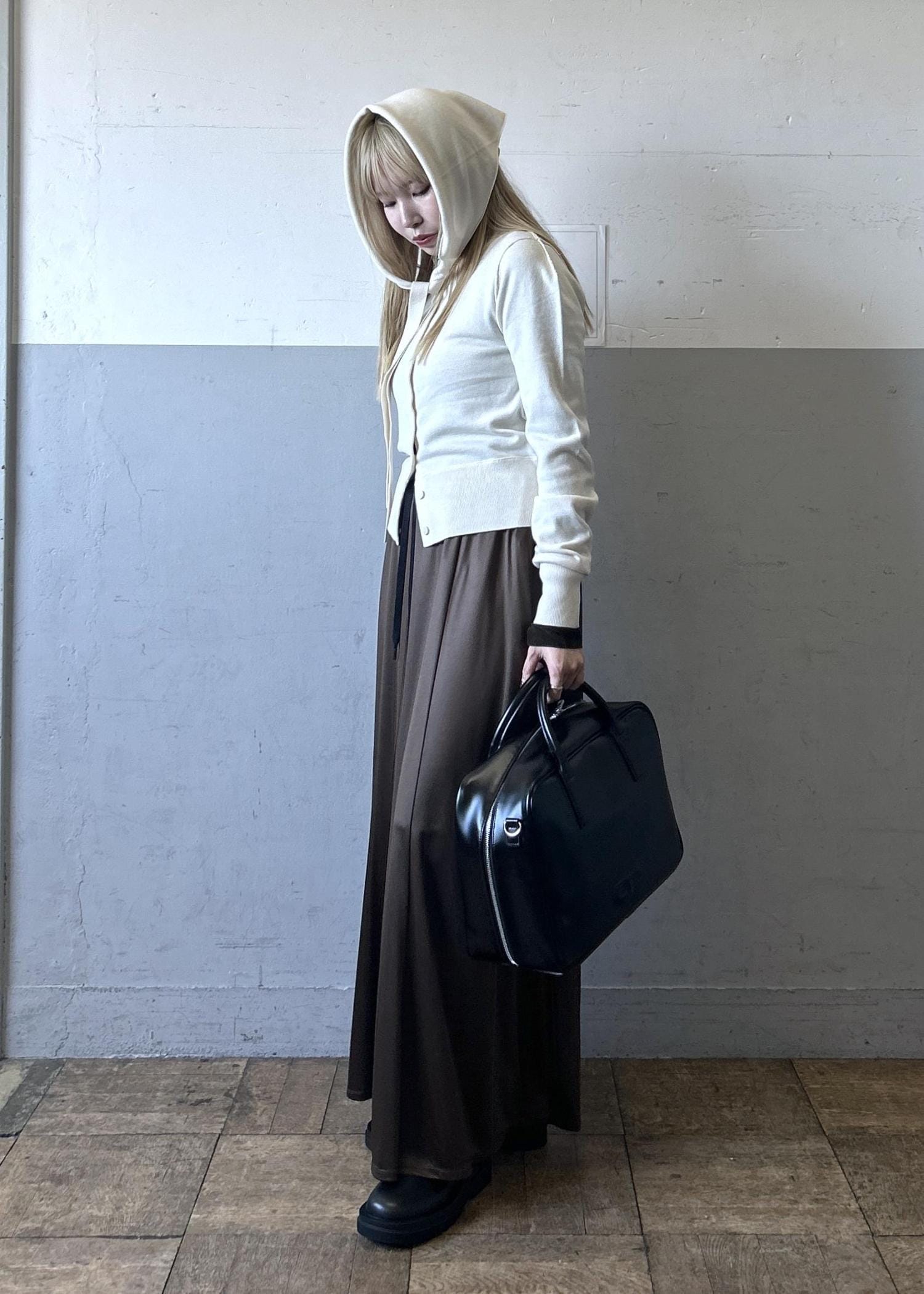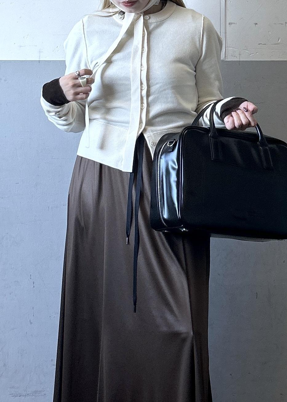 キナリカラーのカーディガンにトレンドのブラウンで全体を引き締め、メリハリを付けています♡