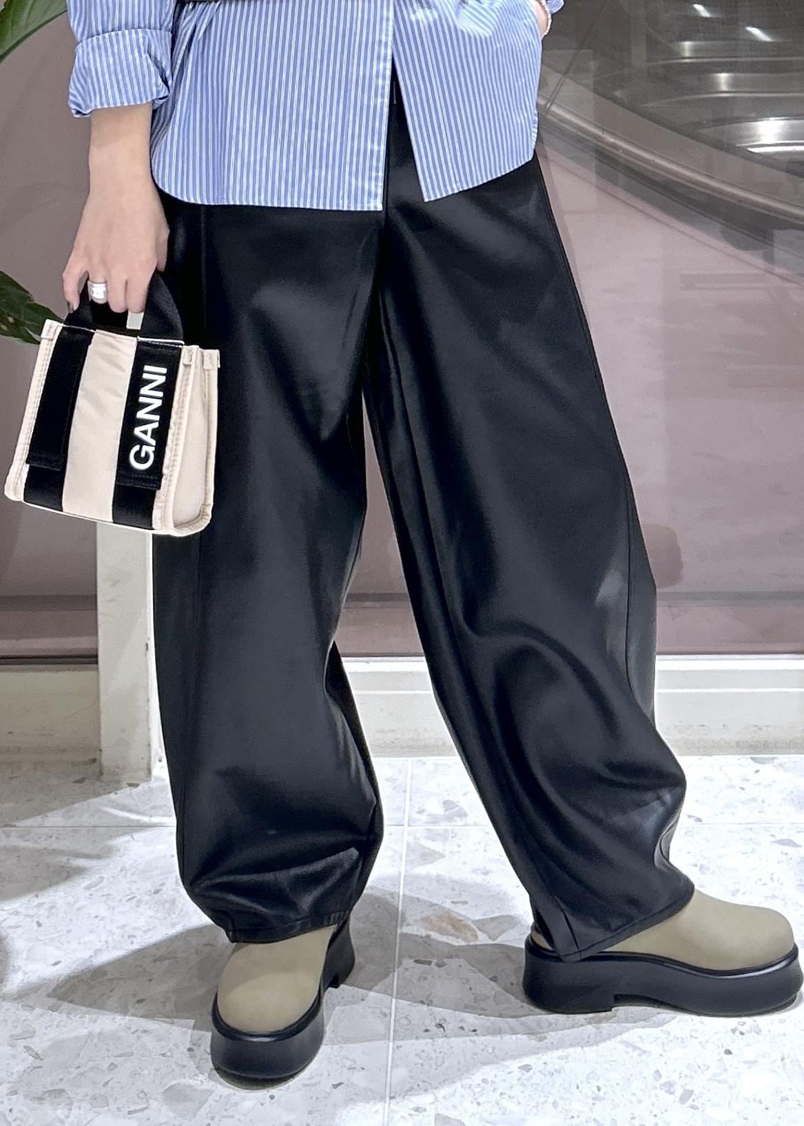 ADAM ET ROPÉ FEMMEシンセティックレザートラックパンツブラック / 36¥20,900レビューウエストゴムで軽やかな履き心地。丸みのあるシルエットでリラックス感があり、レザーでもハードになり過ぎません。何と合わせてもオシャレに見えてくれる優れもの!