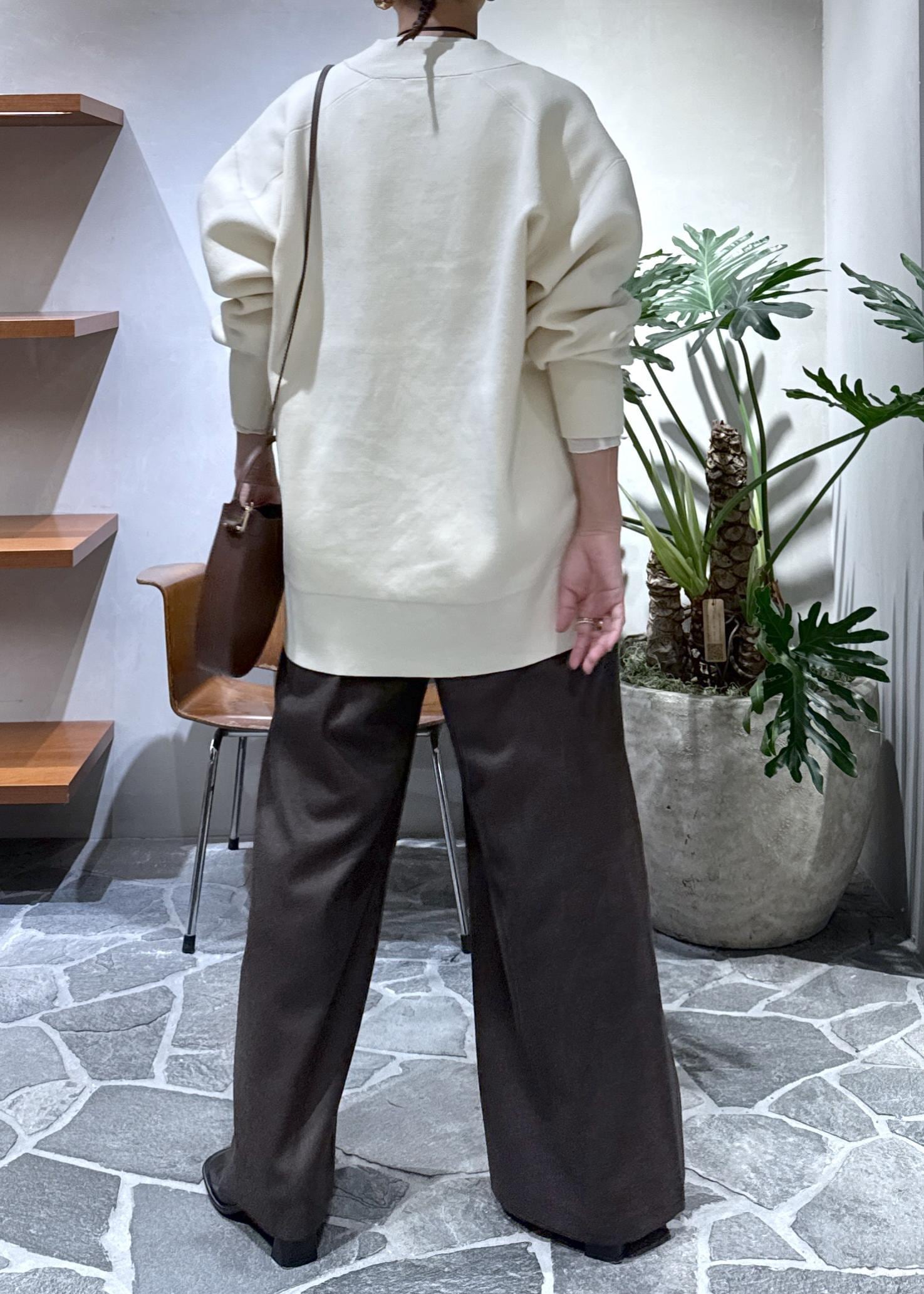 裾に向かってきれいに広がるシルエットでフラットシューズでもかっこよく着用していただけます。