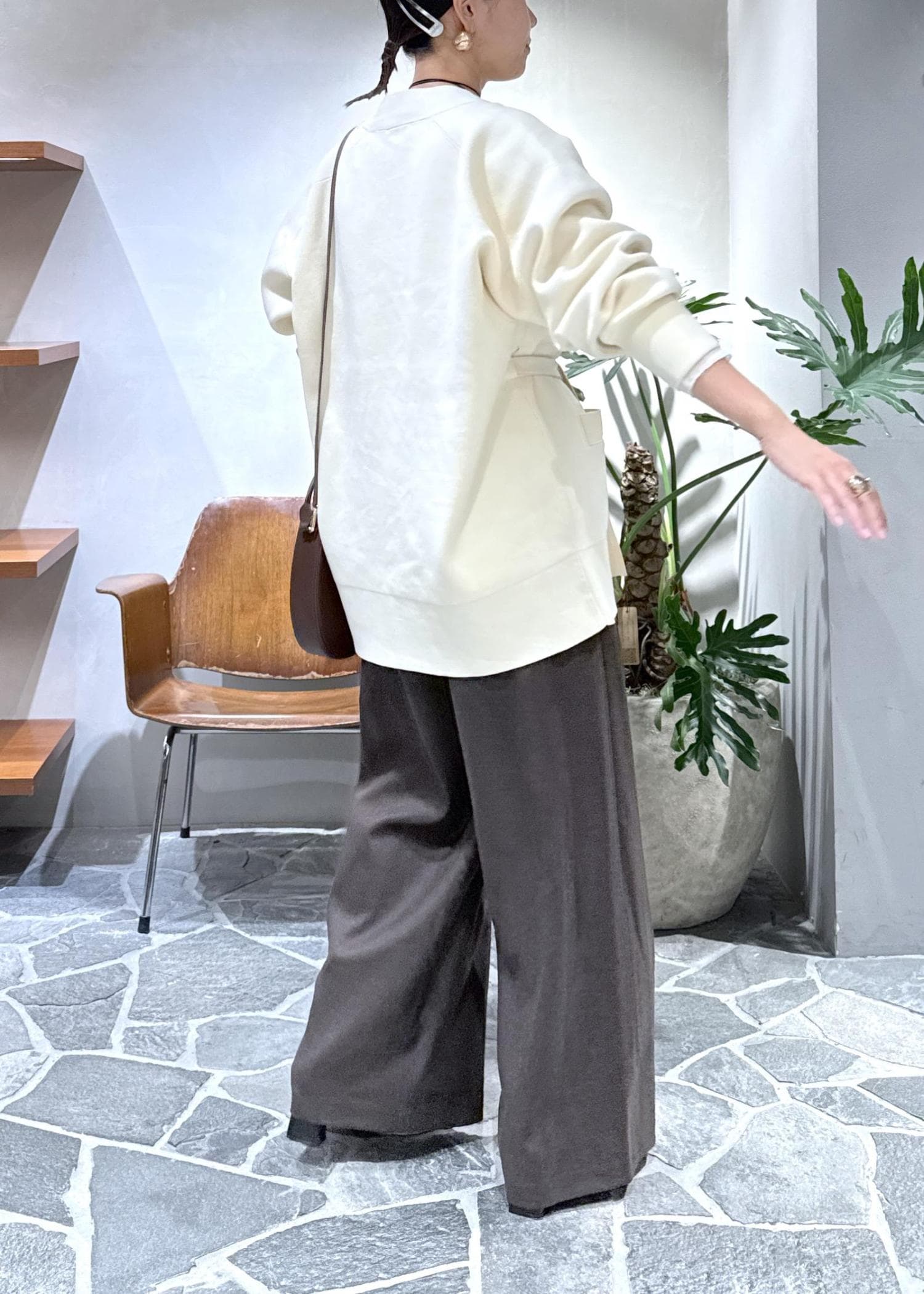 ウエストのベルトで締めるとキレイめに。なしで羽織るとカジュアルに着用できて、着回し力抜群です。 -