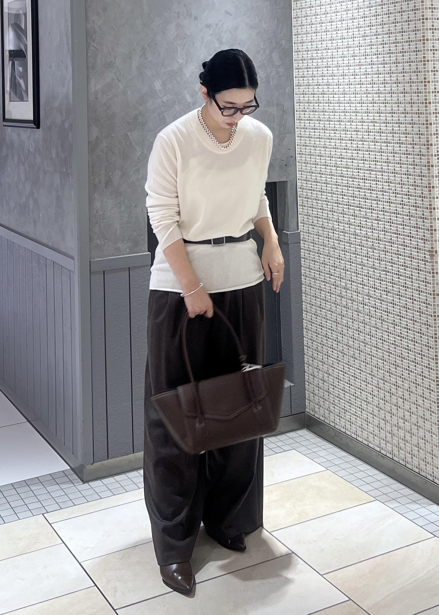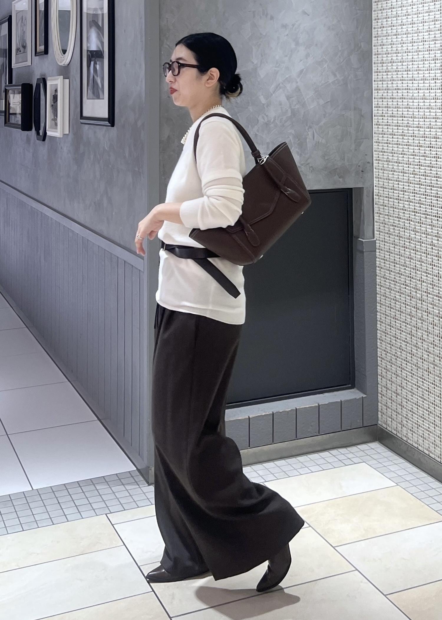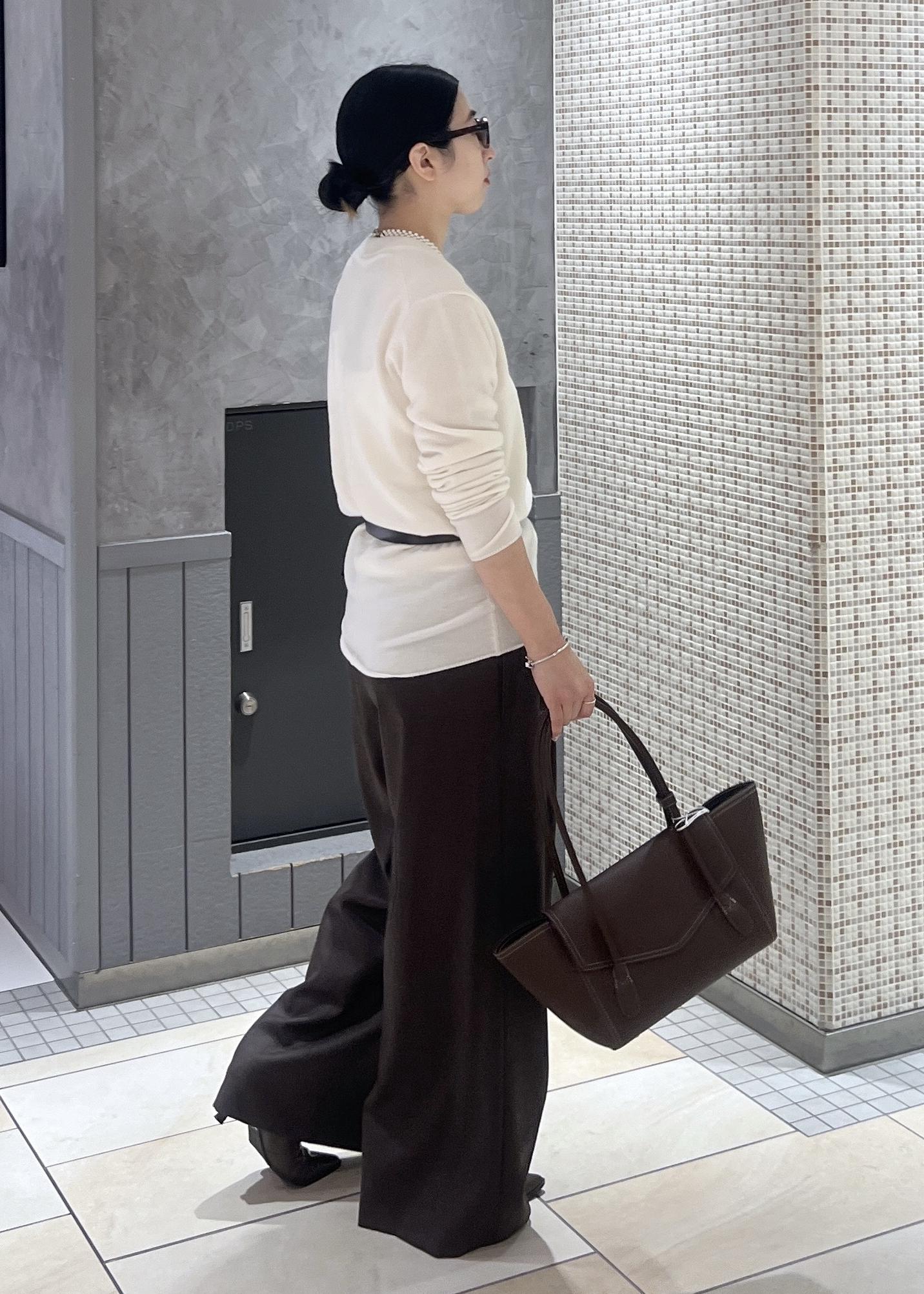 ワイドパンツ特有のカジュアル感は出過ぎず、