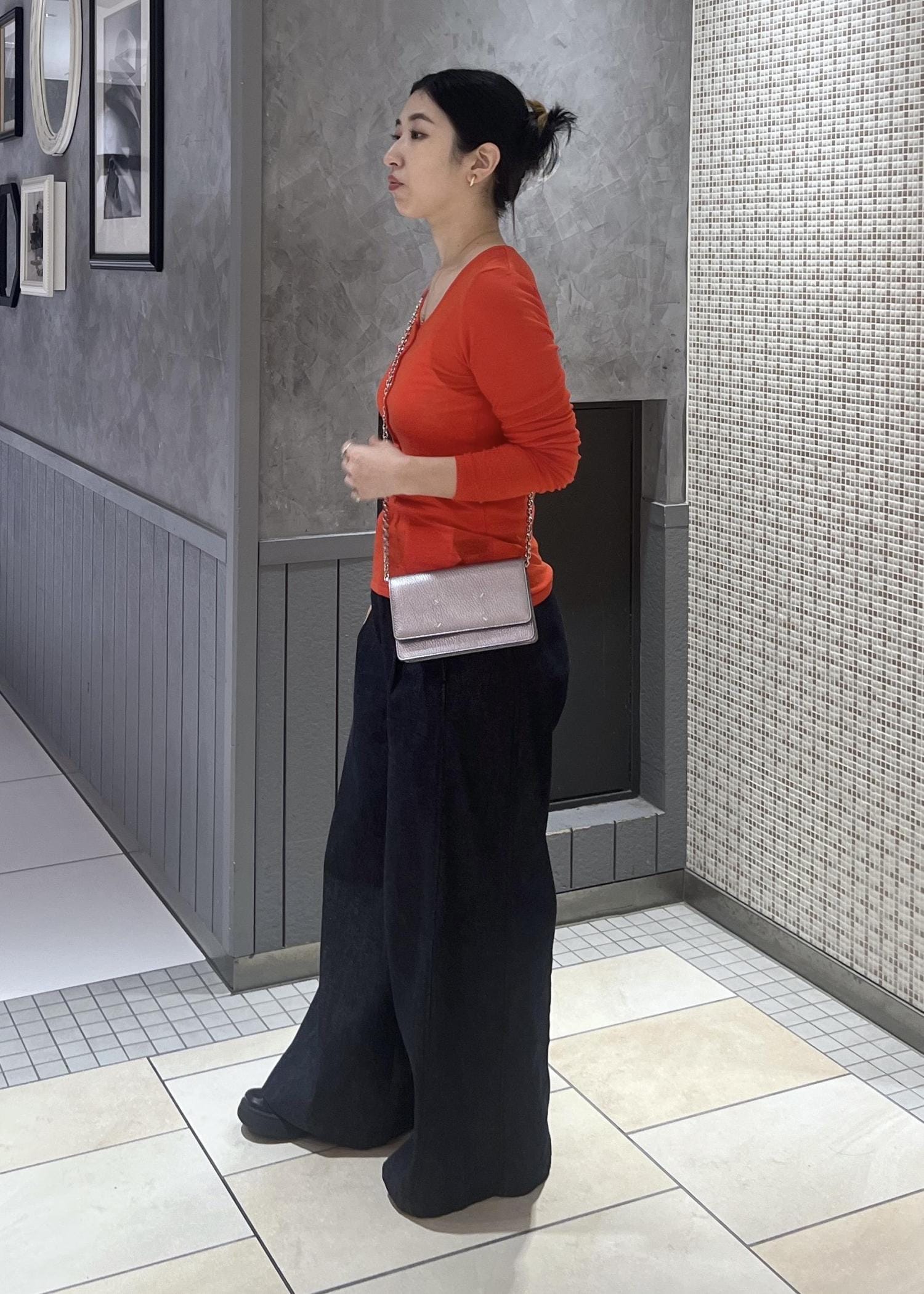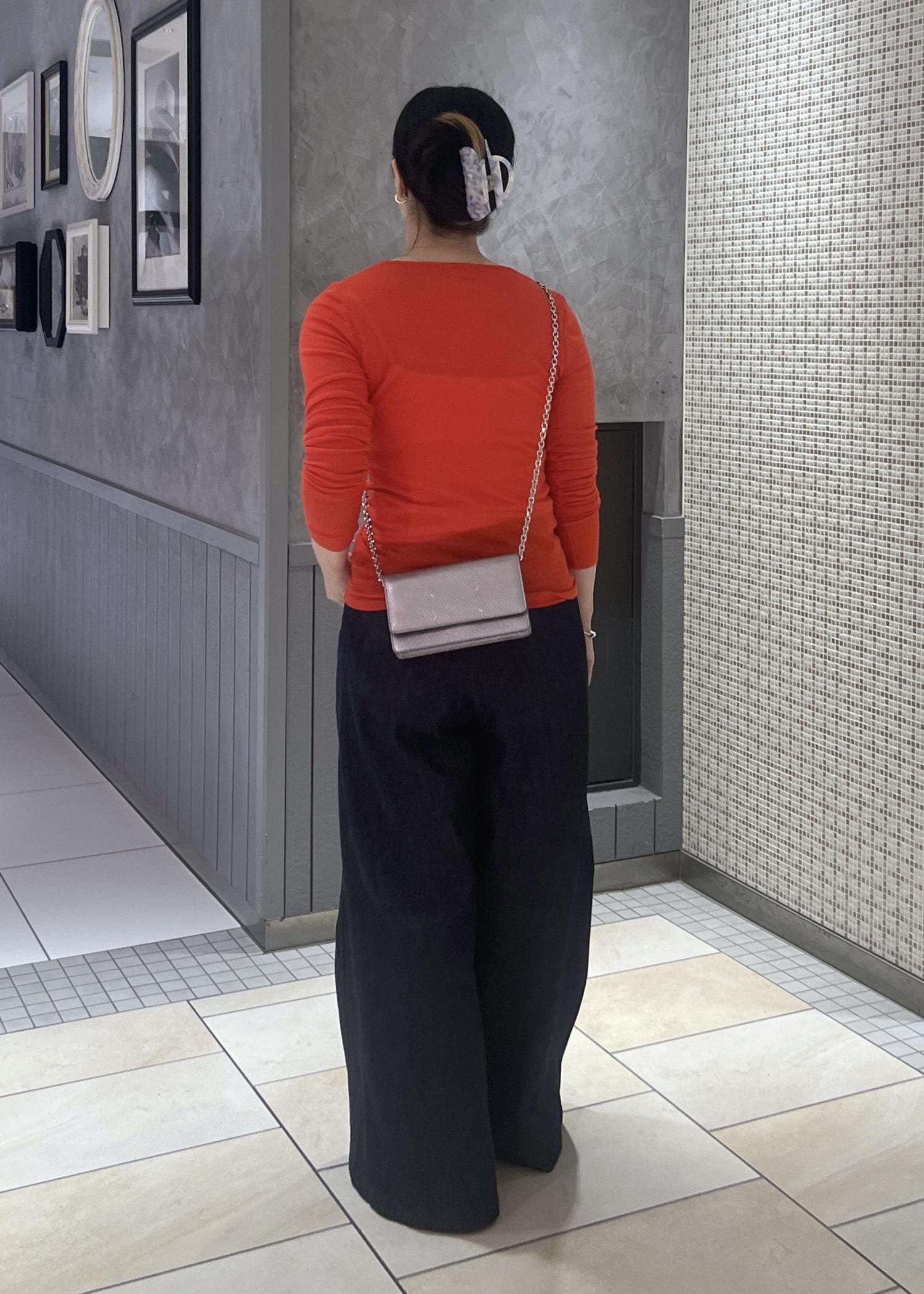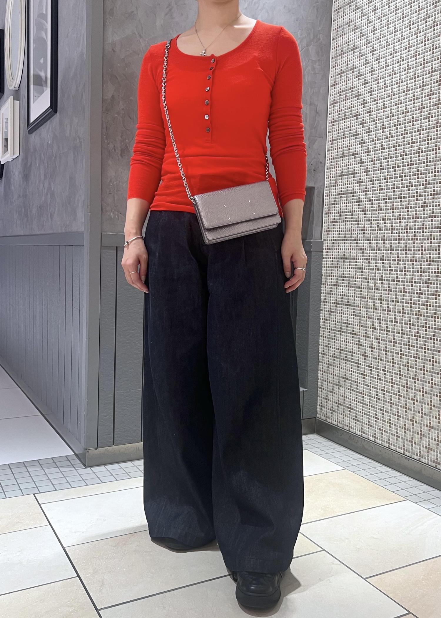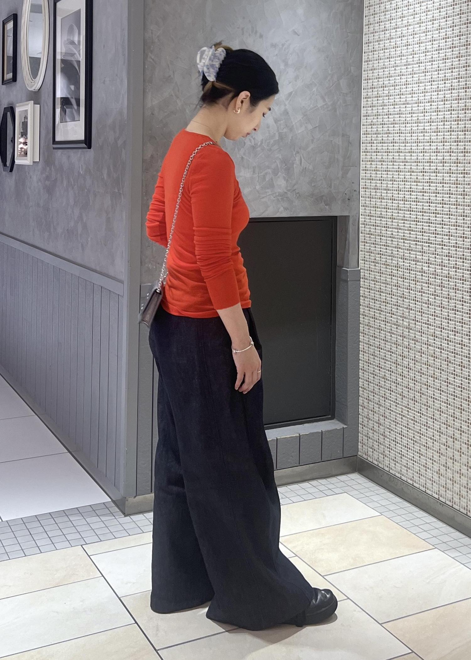 アウトレットADAM ET ROPÉ FEMMEツイストシームワイドデニムネイビー / 36¥11,880レビュー普段ボトムスは38着用ですが36でキツすぎずジャストサイズで履けるサイズ感です。リジットデニムなので、洗濯機での洗濯有無でサイズ感を決めるのも◎硬すぎず程よくフィットしてくれて、ワイド感がとても綺麗でスラックス感覚に履けるデニムです!