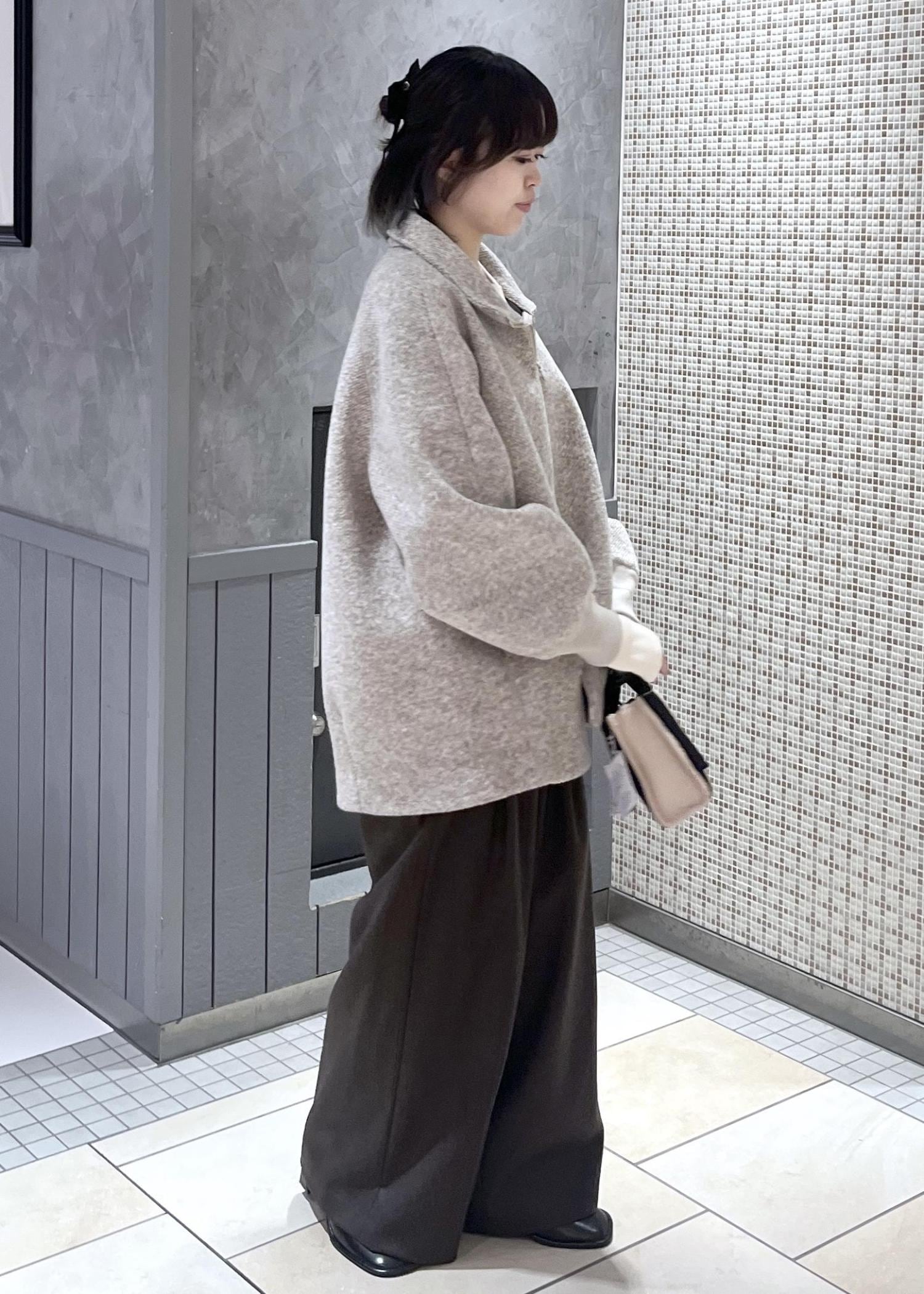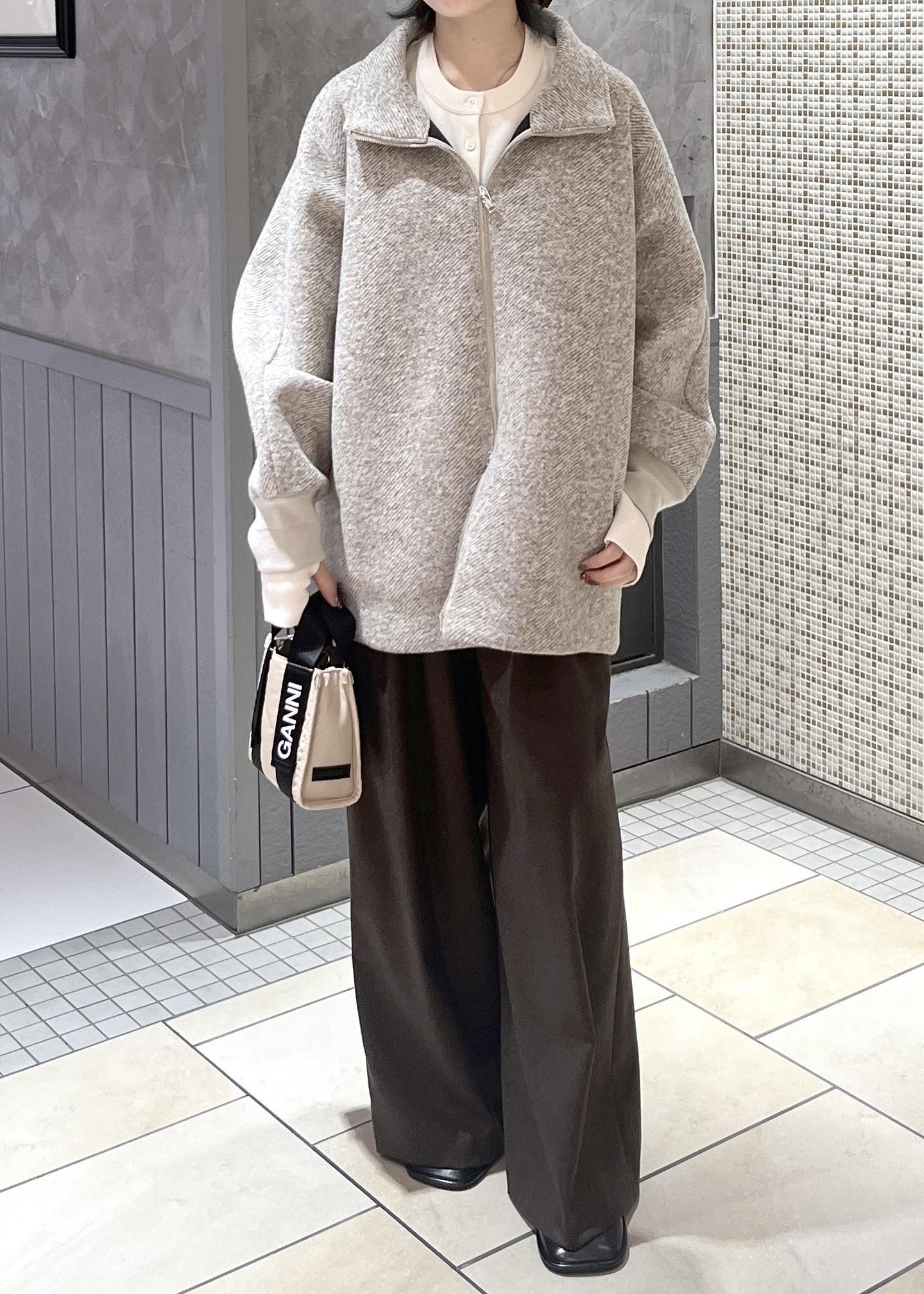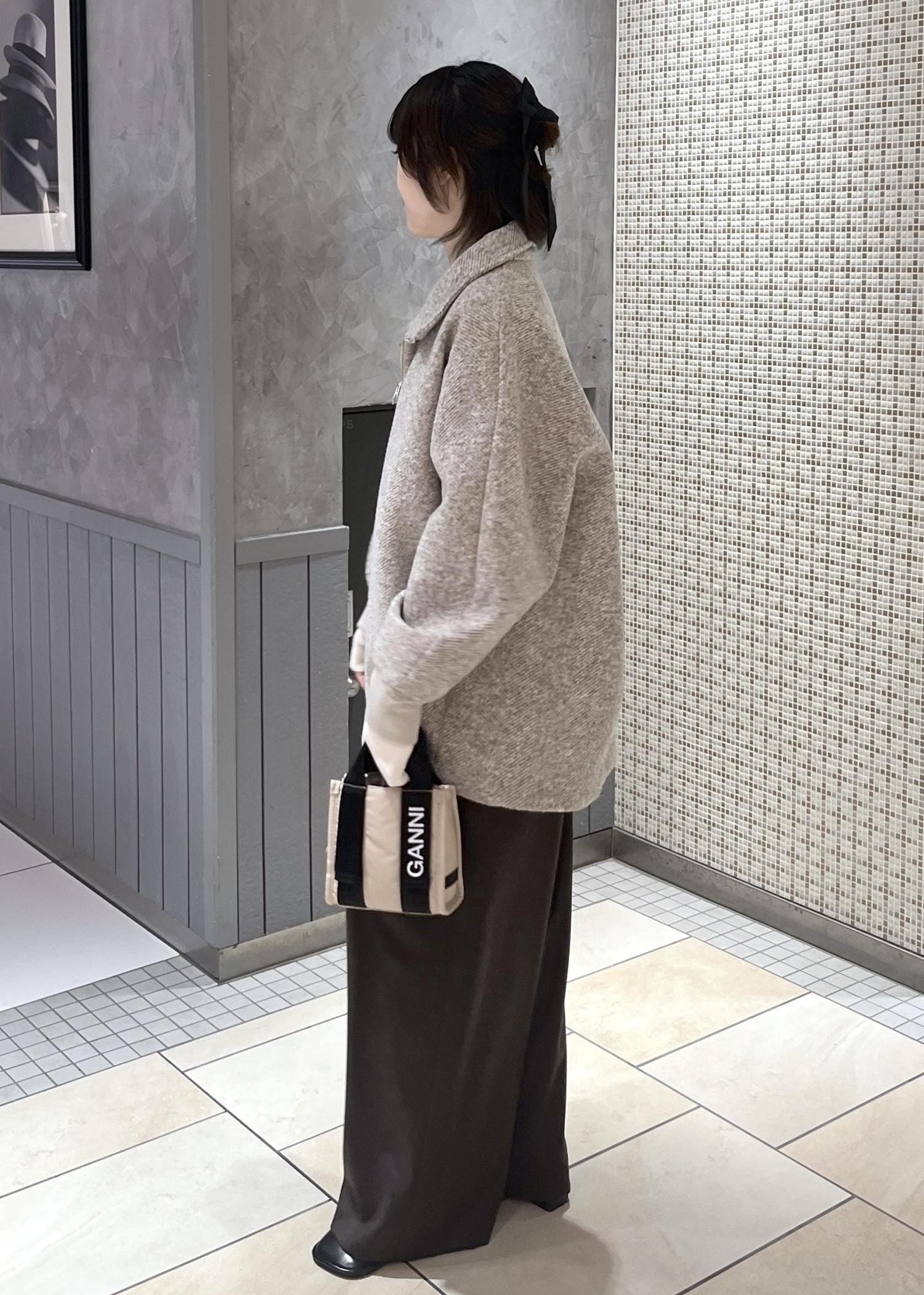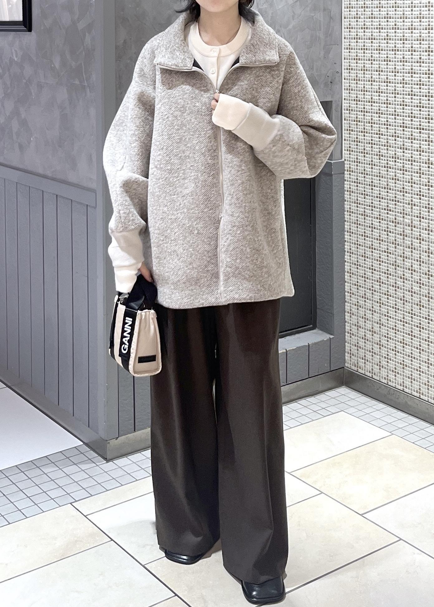 今回はヘリンボンツイードボンディングコーディガンを使ったコーディネート。秋アウターにぴったりです!カジュアルからきれいめなコーディネートまで、幅広く合わせられますよ◎
