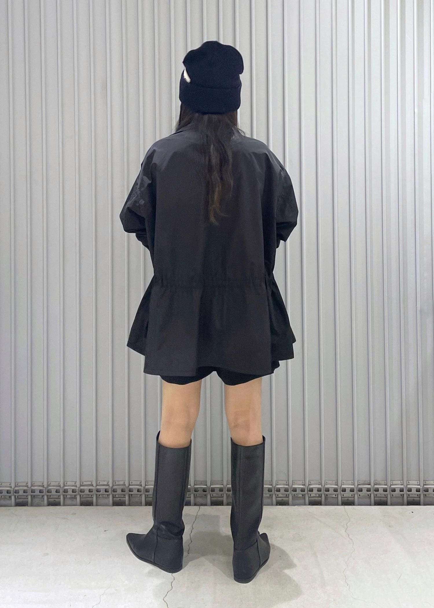 外側のウエスト部分に絞れるドローコードがあるので雰囲気かえていただけます! -
