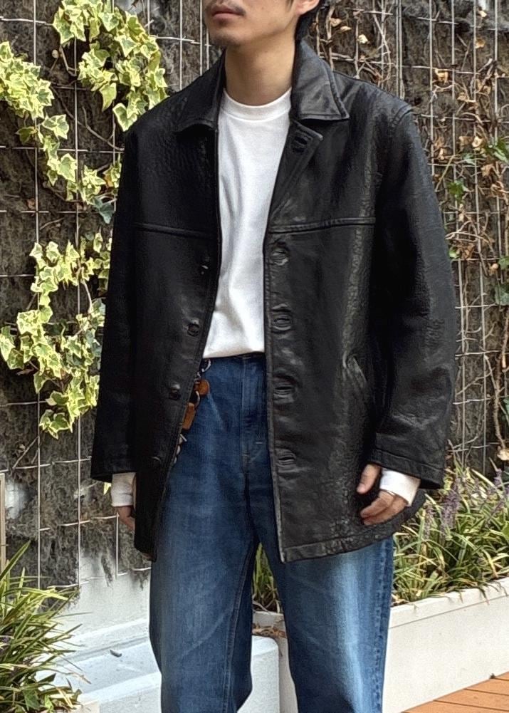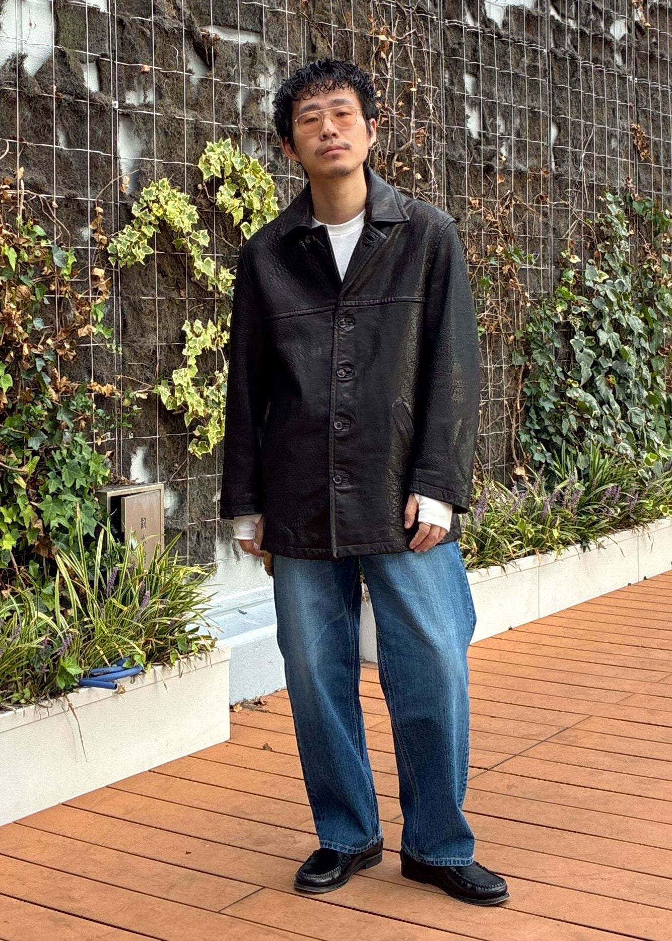 ウォッシュ加工のなされた、風合いがたまらなく渋くてかっこいいレザージャケットを使ったスタイリングです!