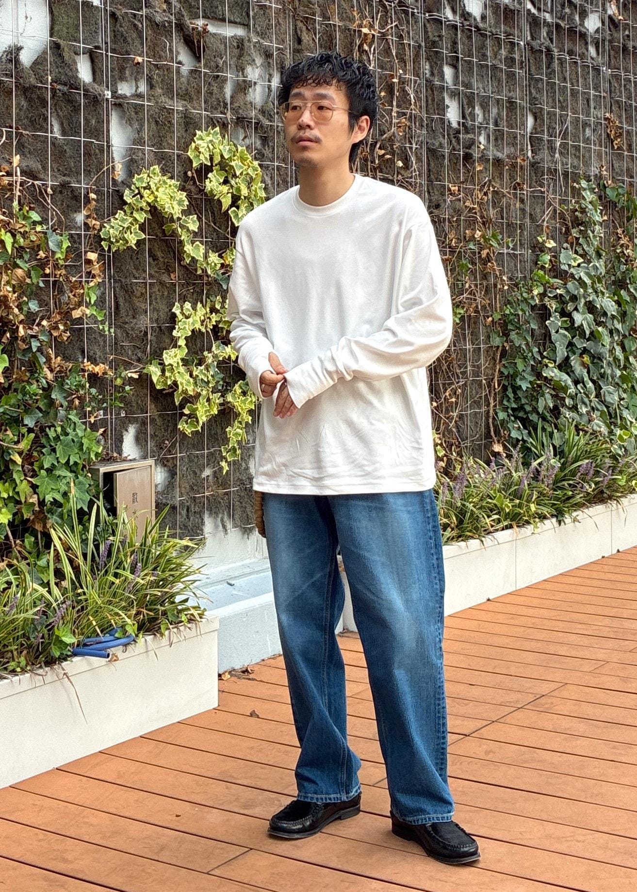 ややゆったりめのサイズ感で、僕の体型でMサイズでも余裕を持って着用できました。もちっとした生地感で、Hanesとは思えないほど極上の着心地にアップデートされております。
