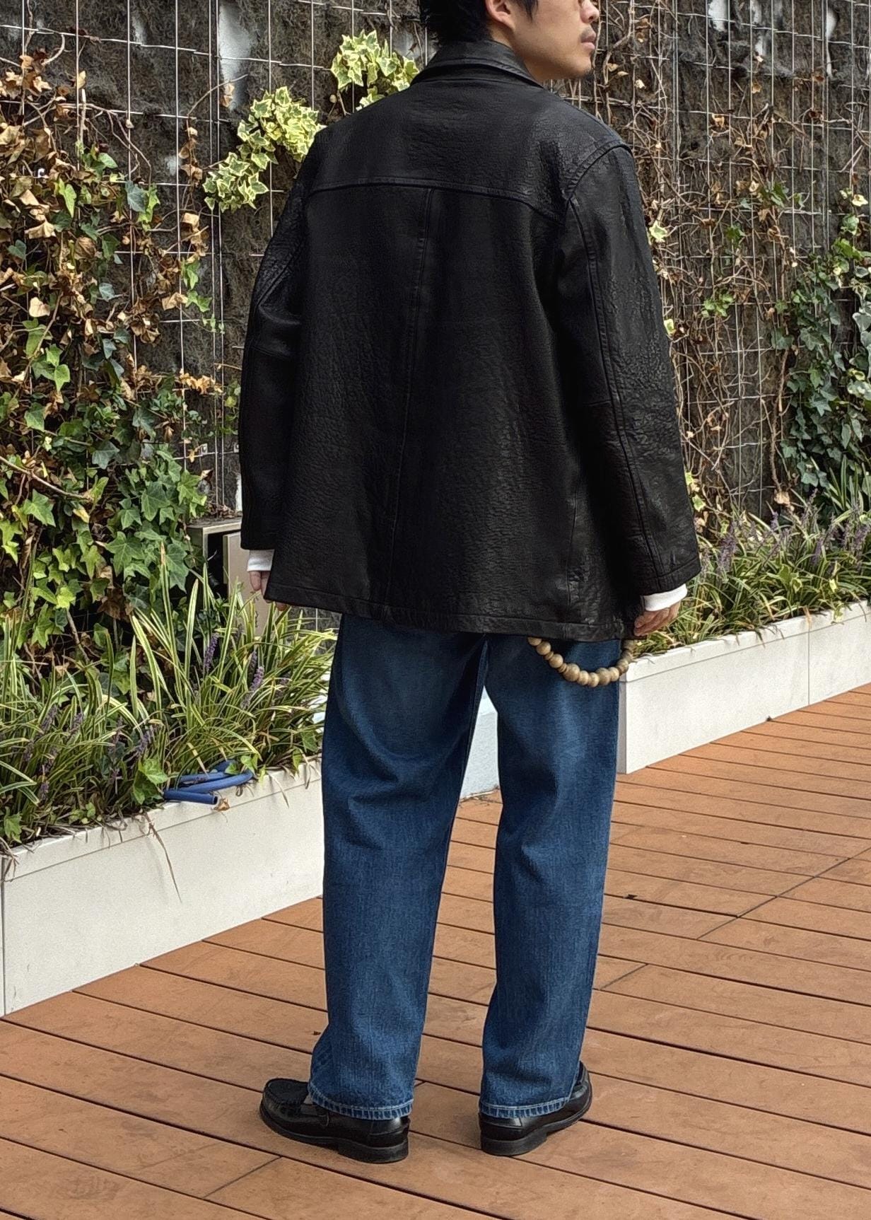 程よく余裕のあるサイズ感で、僕自身肩幅がありますが、Mでも余裕を持って着用できました。ラムレザーで、かつ元からウォッシュ加工がなされているので、最初の段階からレザー特有の硬さをそこまで感じず、楽な着心地でレザーを楽しんでいただけます。