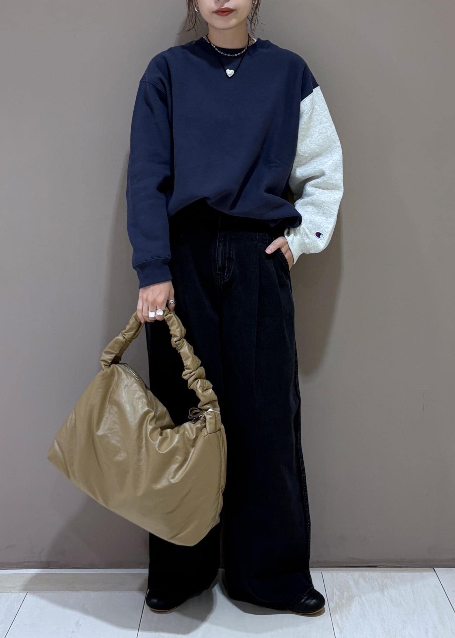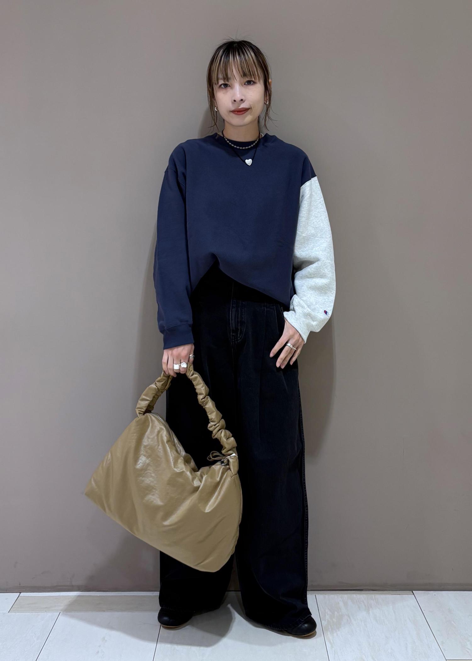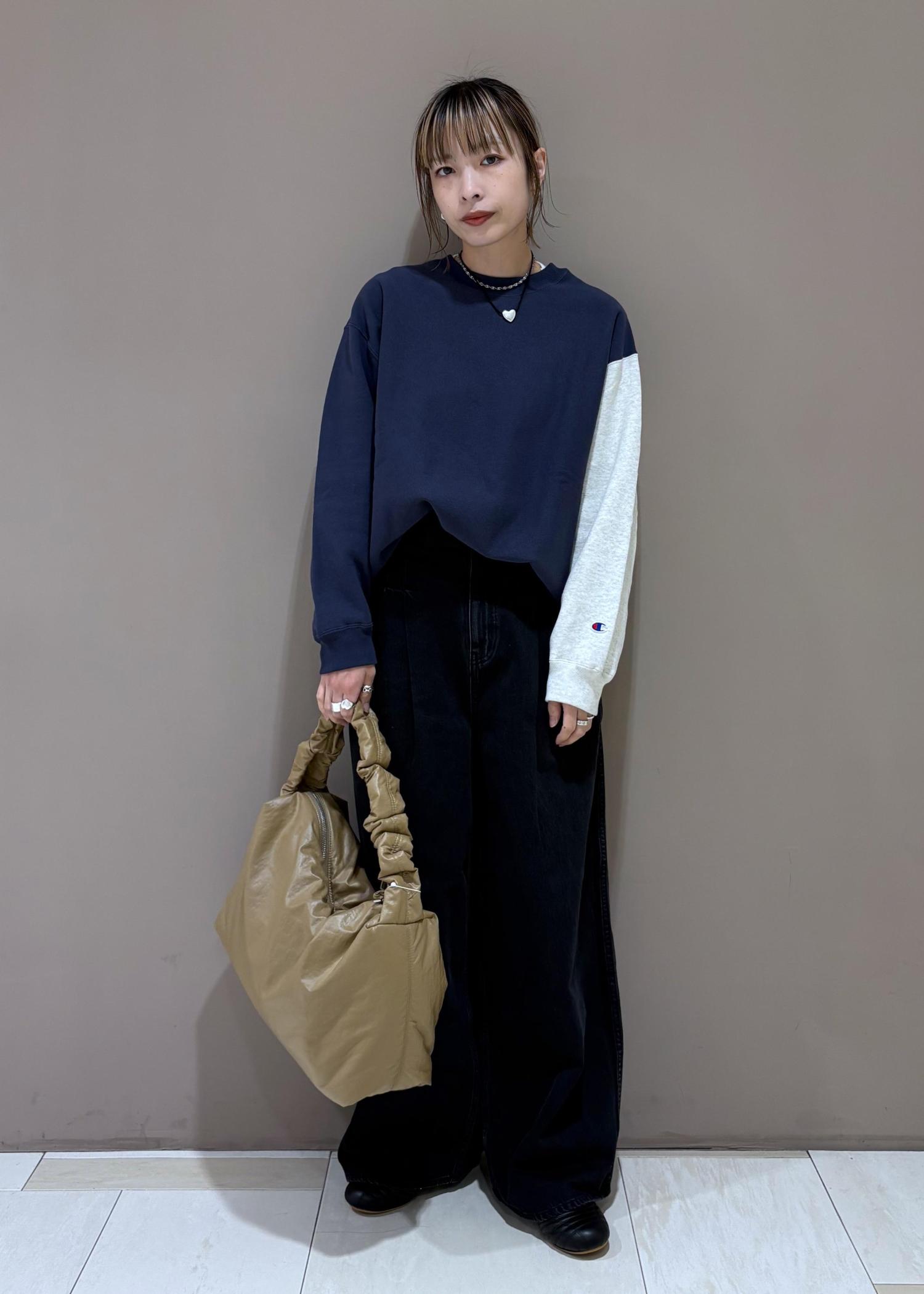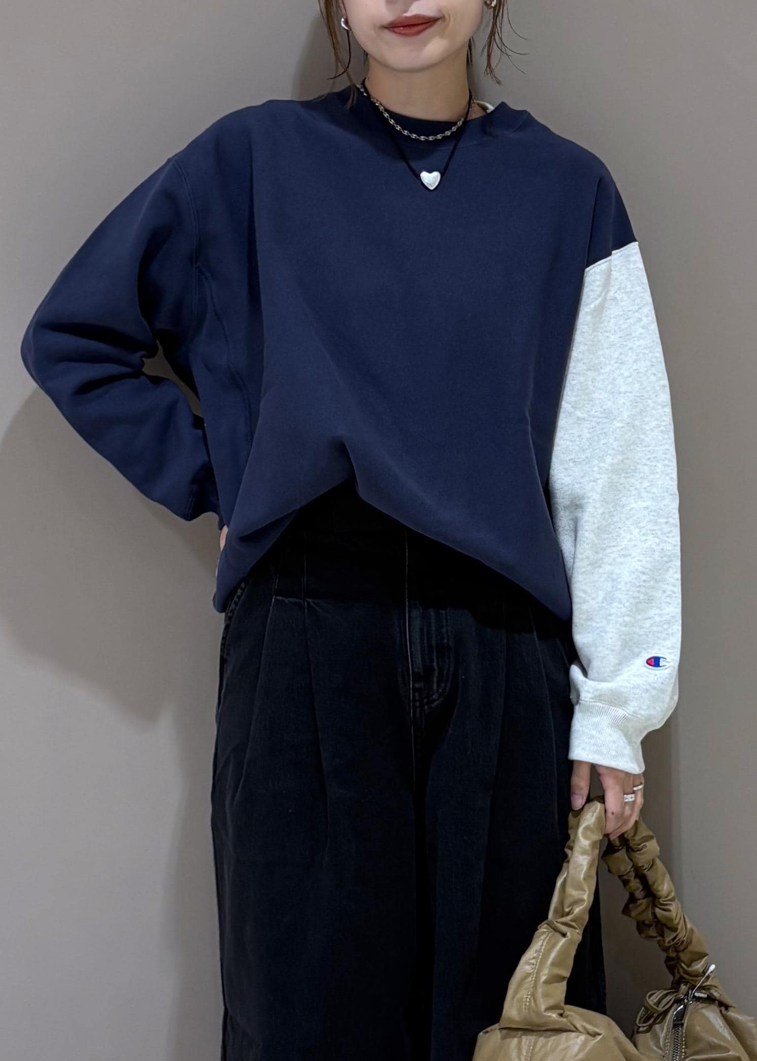 ADAM ET ROPÉ FEMME【Champion for ADAM ET ROPE'】別注 RW SWEATネイビー / F¥10,010レビュー162cm、フリーサイズ着用。
