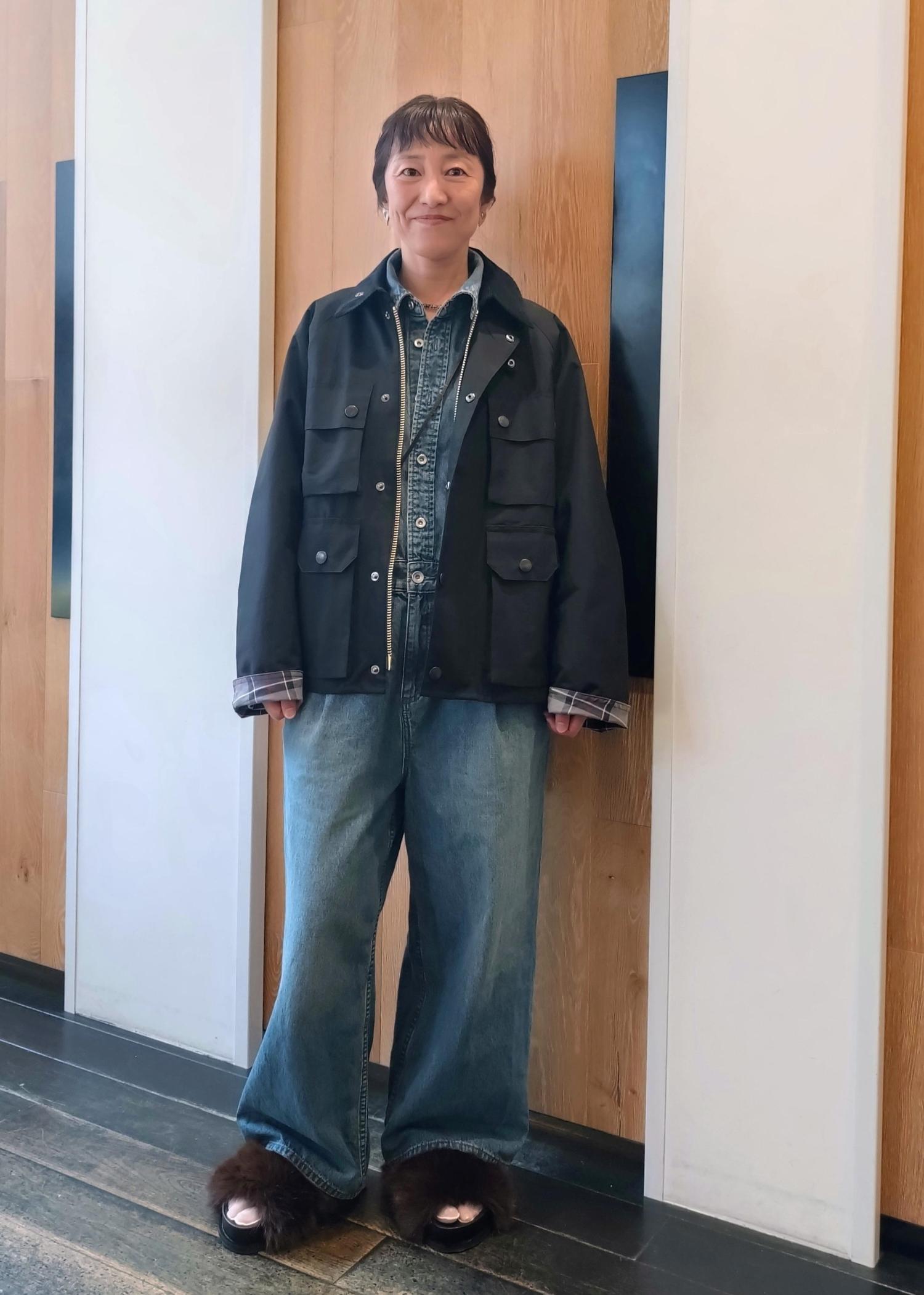身幅も肩まわりもゆったりとしたサイズ感で、中に厚手のニットやスウェットなど余裕で着れるサイズ感でした。
