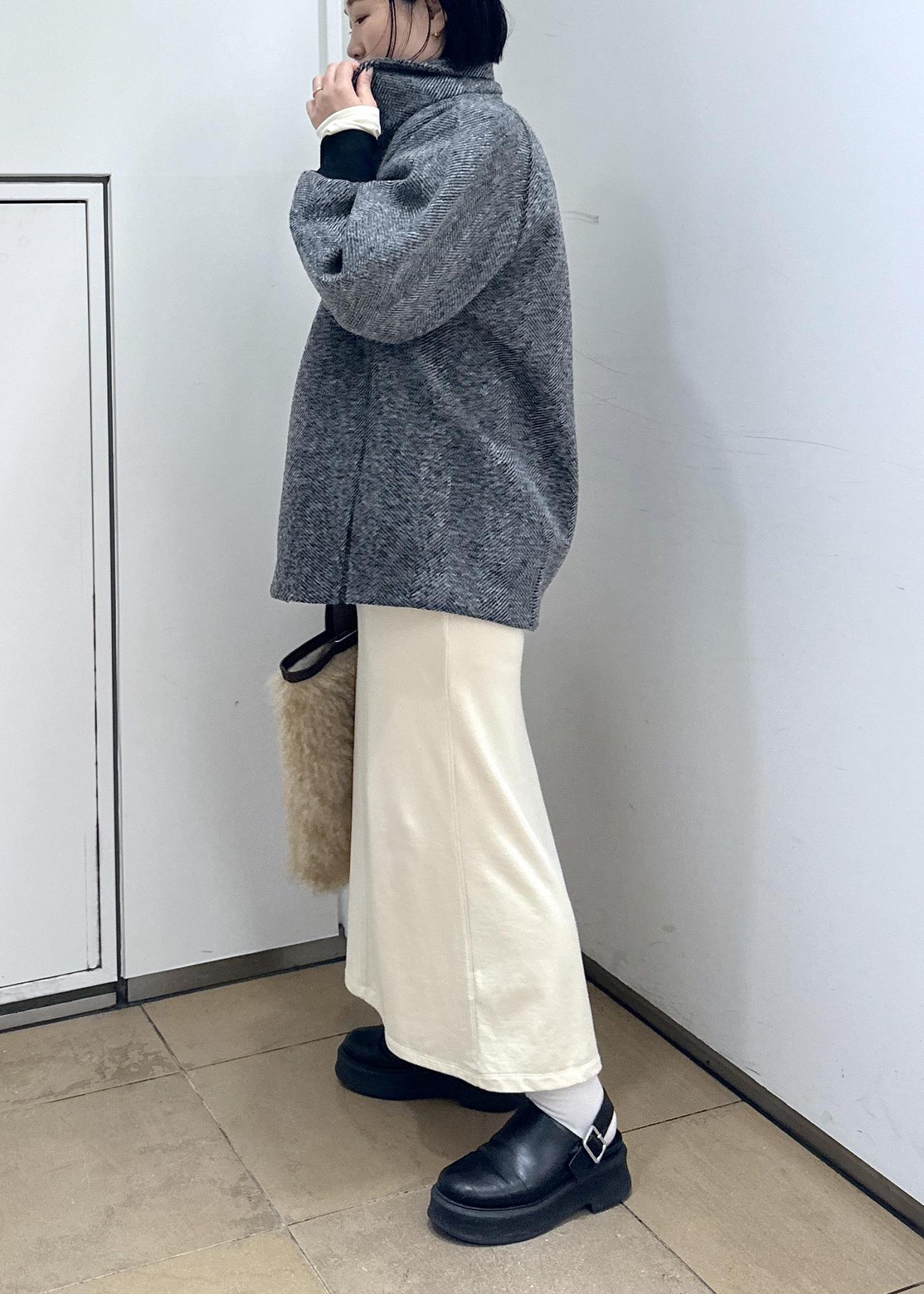 Wジップなので、ボトムスに合わせてシルエットを変えられます。 -