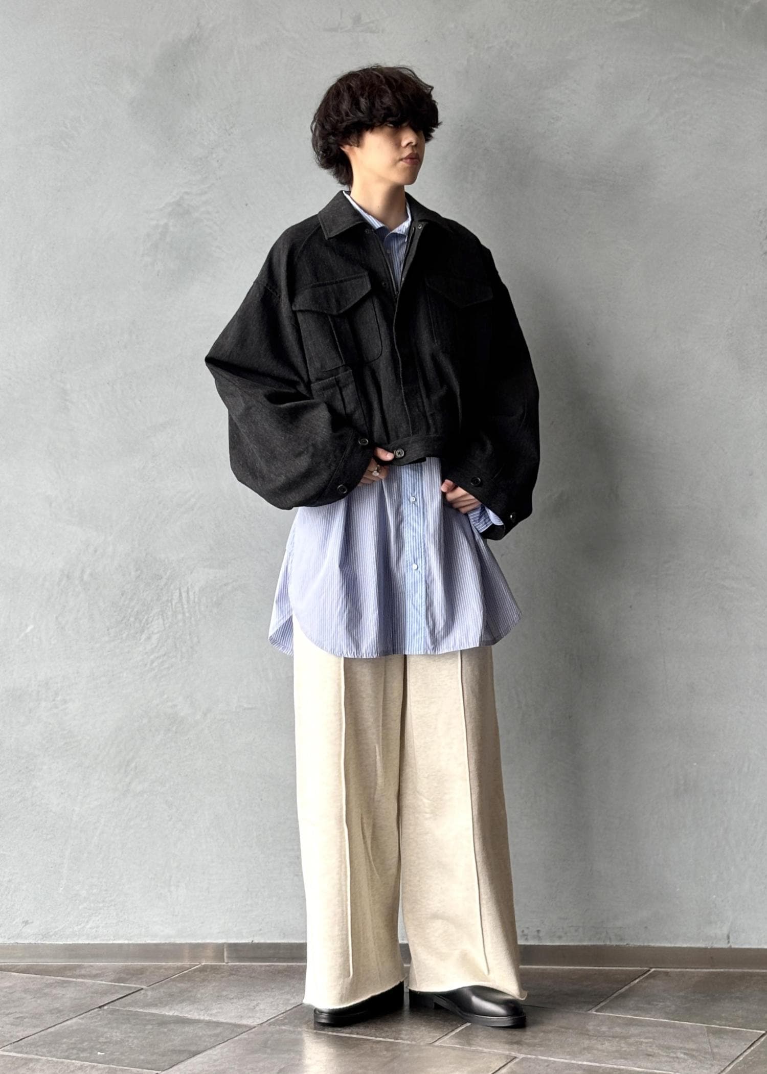 シルエット感は超ワイドで、センタープレスが入っているのでキレイめにも着用できます。