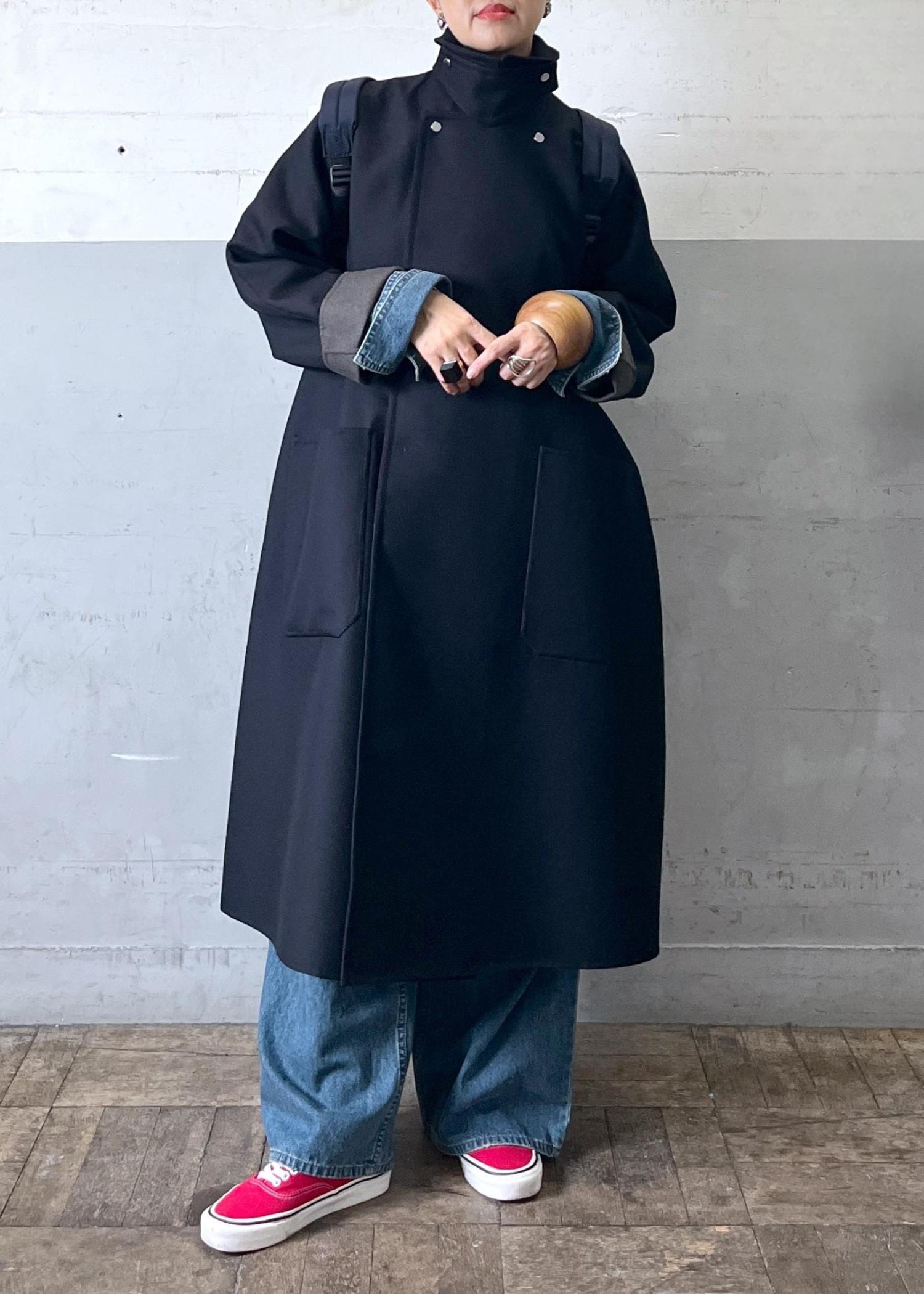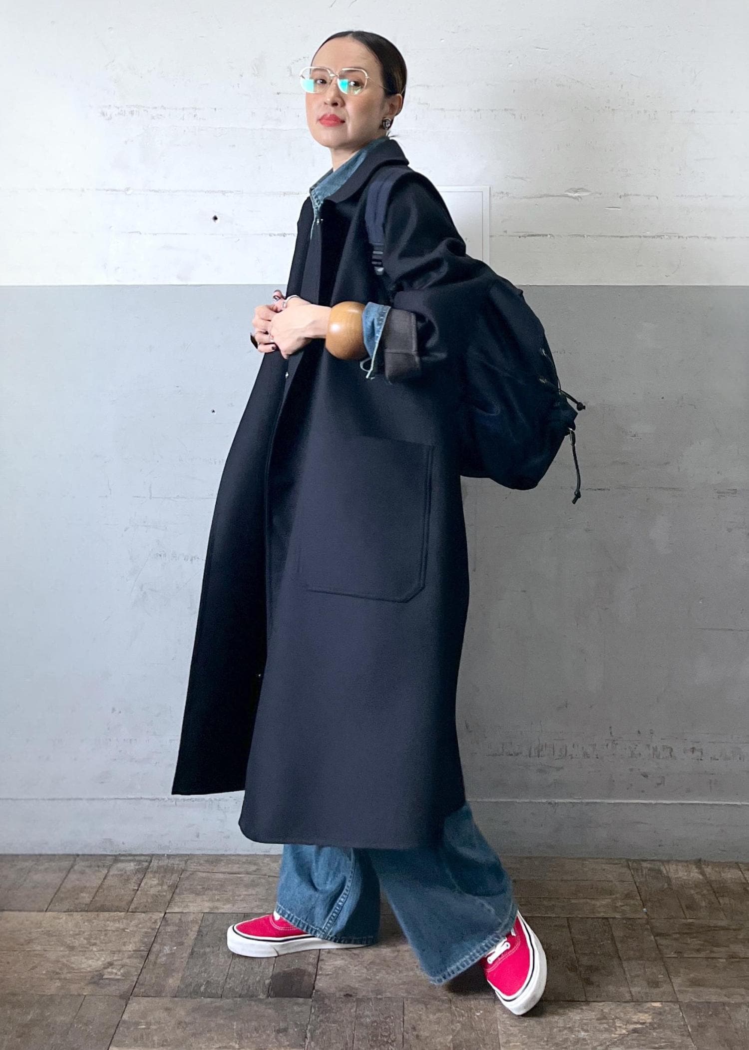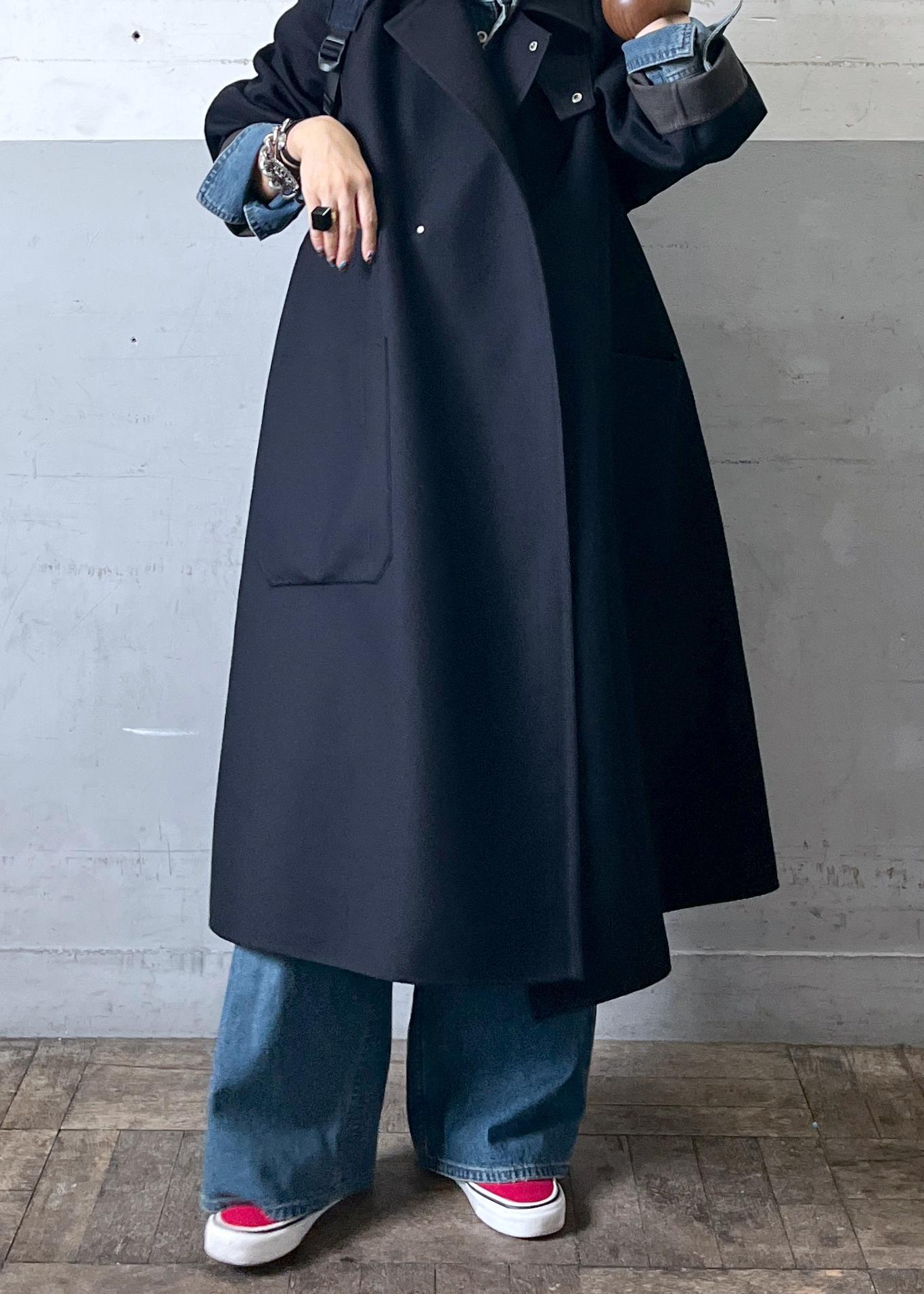 ADAM ET ROPÉ FEMMEソモウリバーロングコートネイビー系 / F¥88,000レビューとっても素敵なコートです。オーバーサイズですがすごくキレイなシルエット。ウール100%なのに重くない!厚手のニットやインナーダウンも楽々着れます♫開けても閉じてもサマになります。