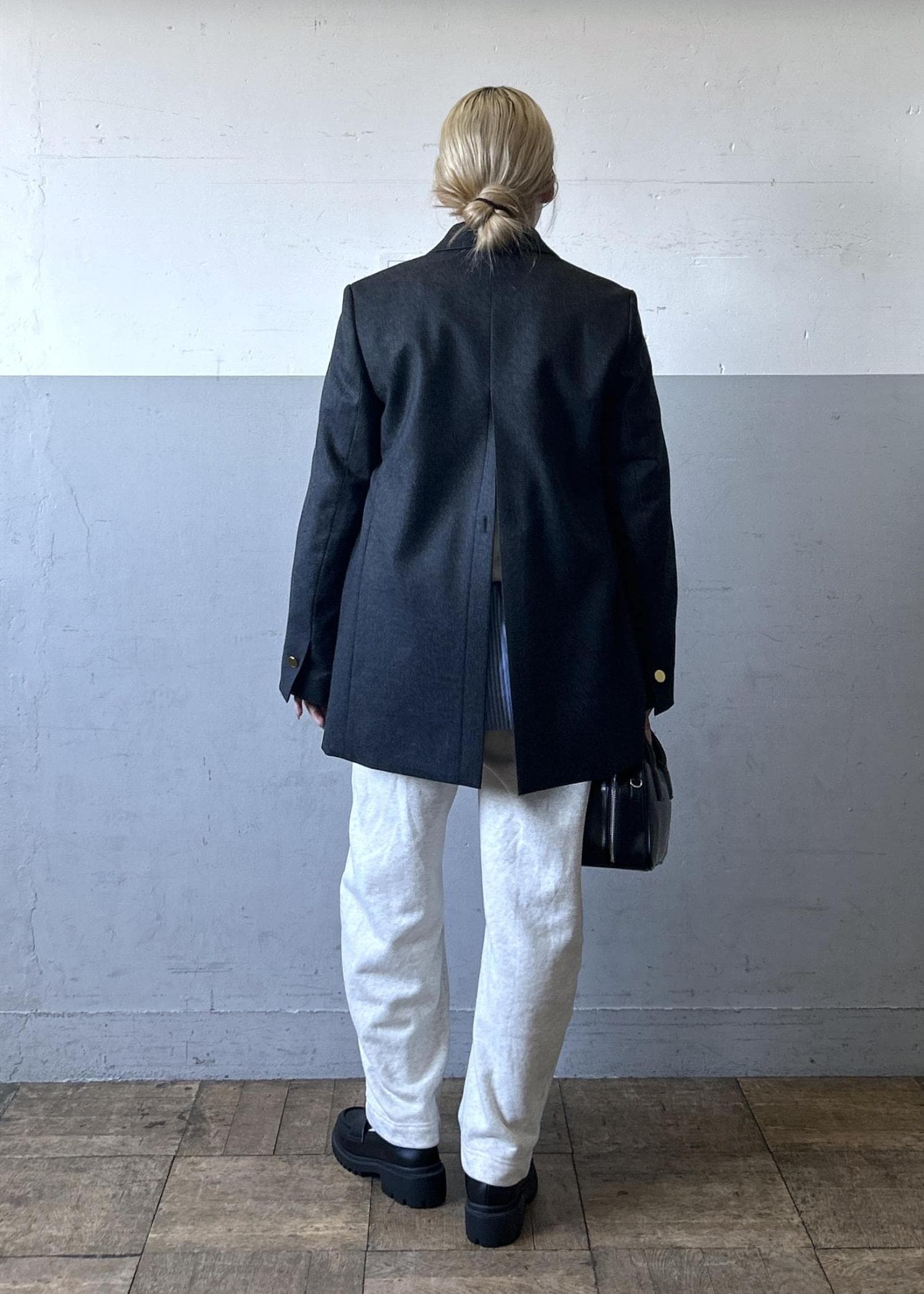 ADAM ET ROPÉ FEMMEシングルブレストスリットジャケットチャコール / 36¥39,600レビュー前と袖口にあるゴールドのボタンがコーデのアクセントになります。