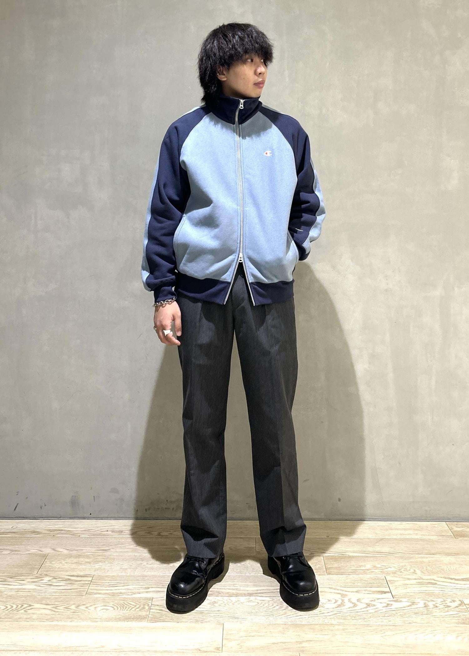 上下を綺麗めアイテムで合わせスポーティーなトラックジャケットでラフさ足すことで、バランスよくスタイリングできるのでオススメです!