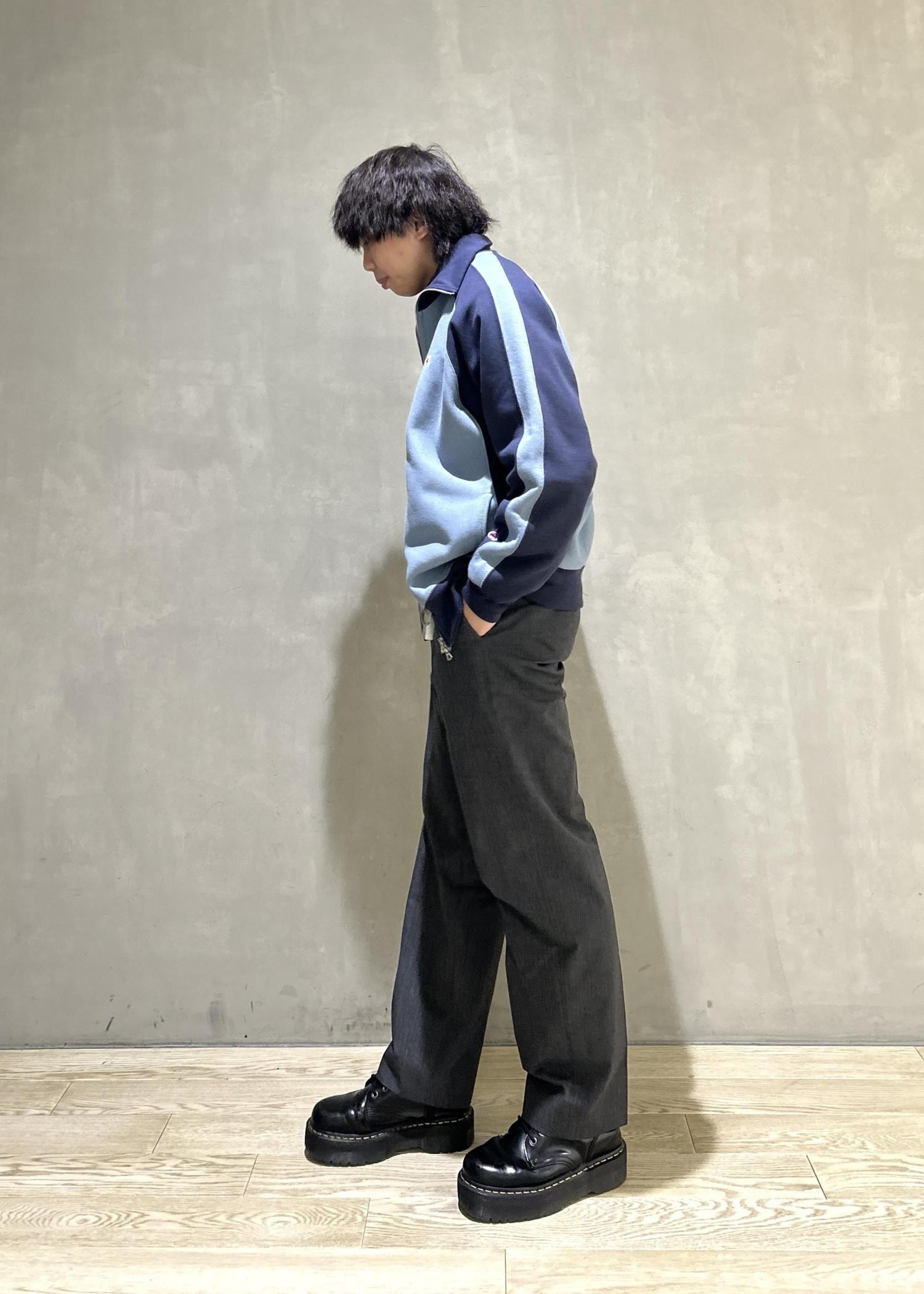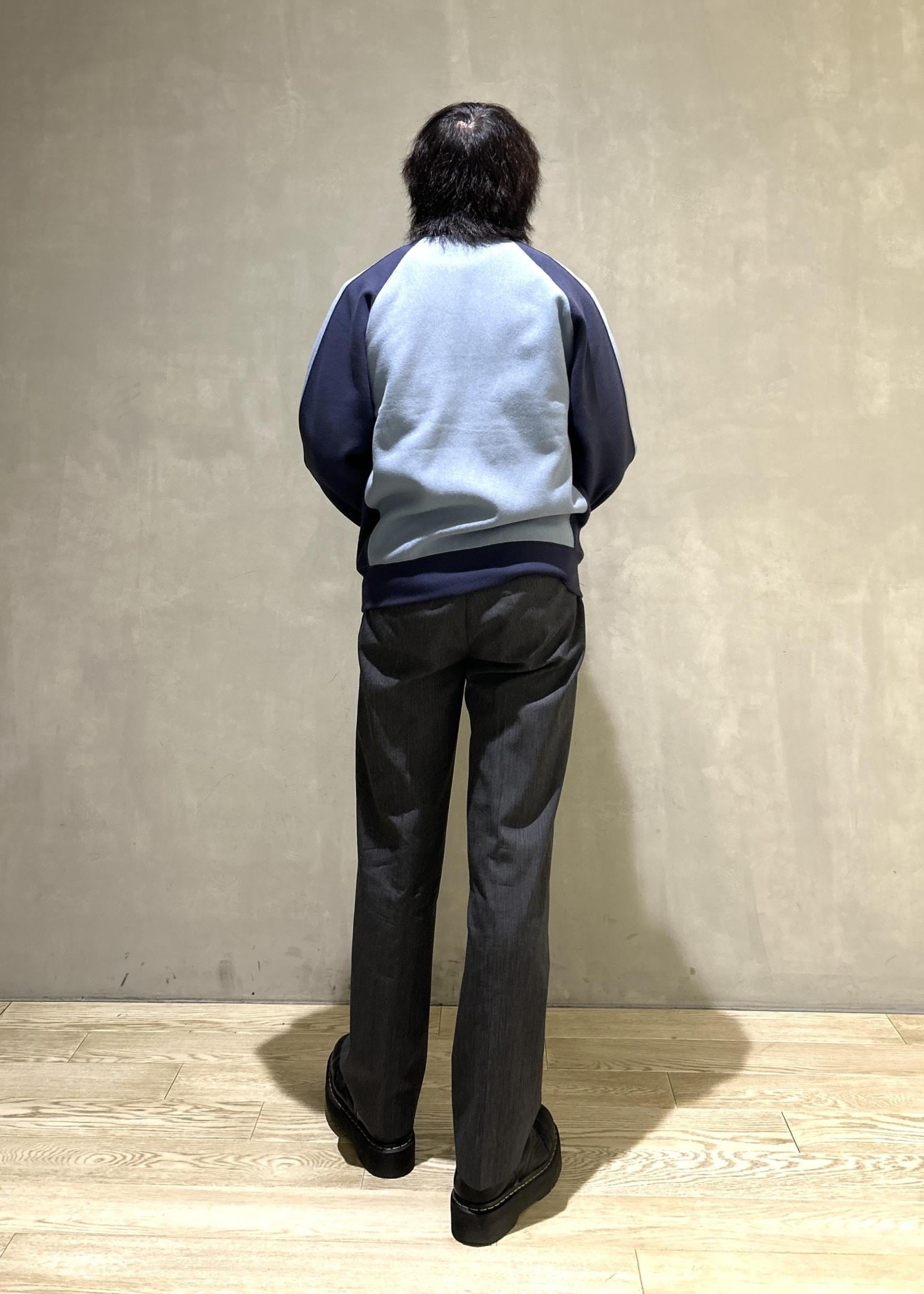 合わせたアイテムは、ワイルドライフテーラーのクルーネックとクラシックなスラックスを合わせてみました!