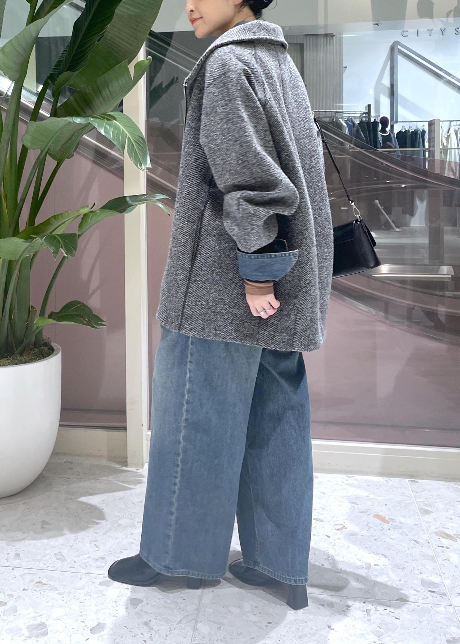 カジュアルデザインながら、ツイードの素材が綺麗目なスタイルにもマッチ。 -