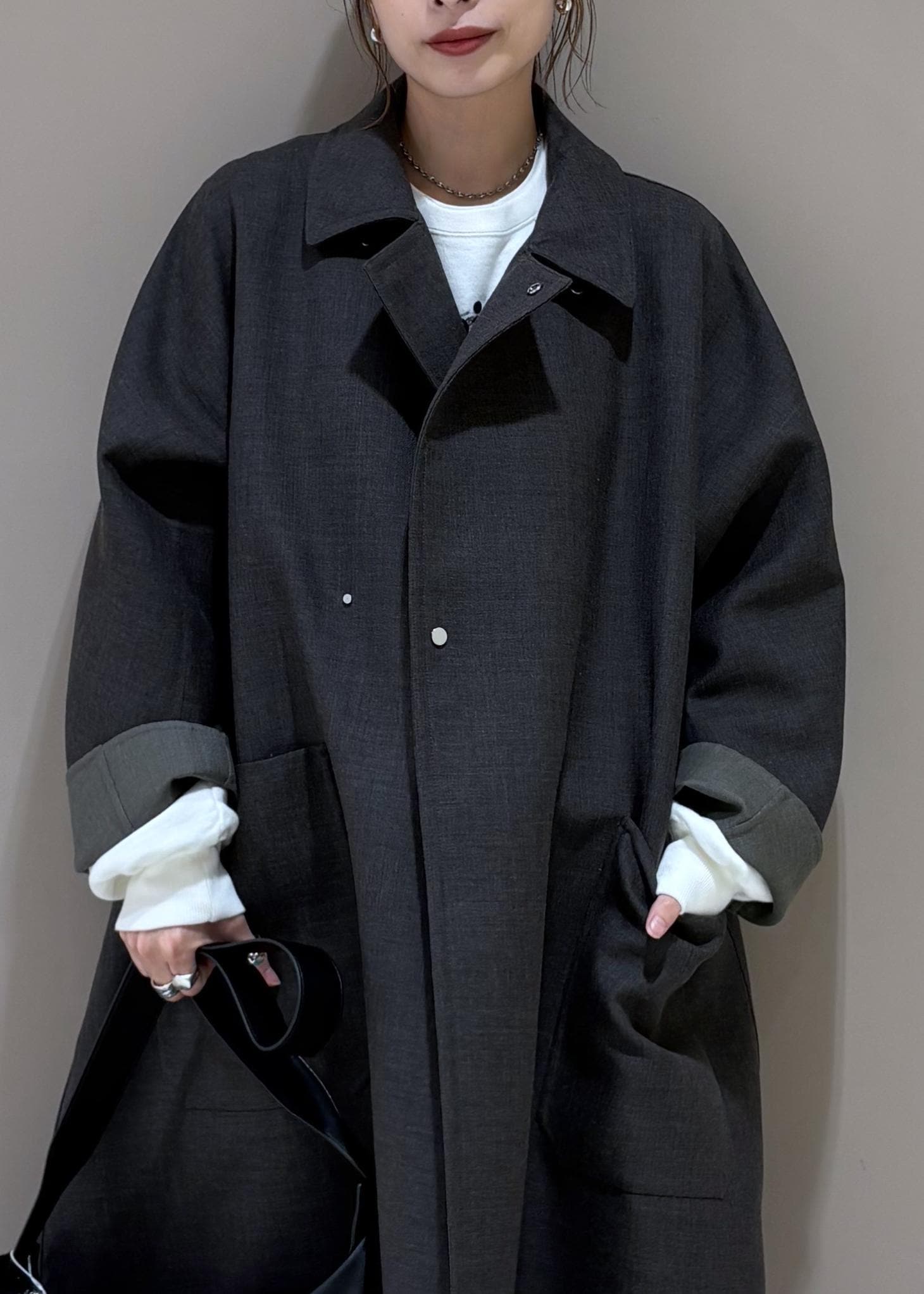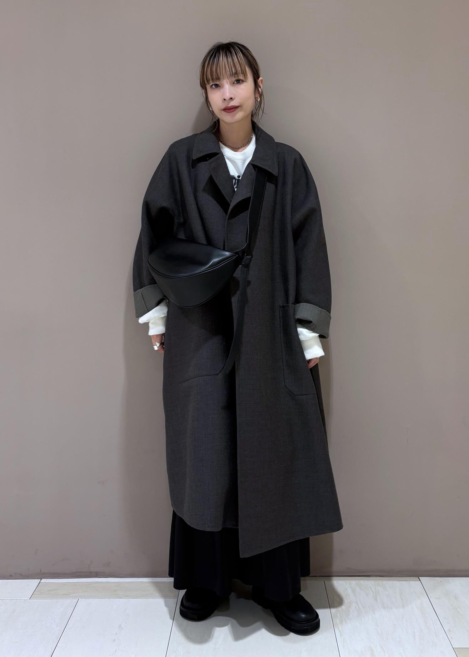 ロングアウターですが、重すぎず肩の負担も少ない重量感です◎ -