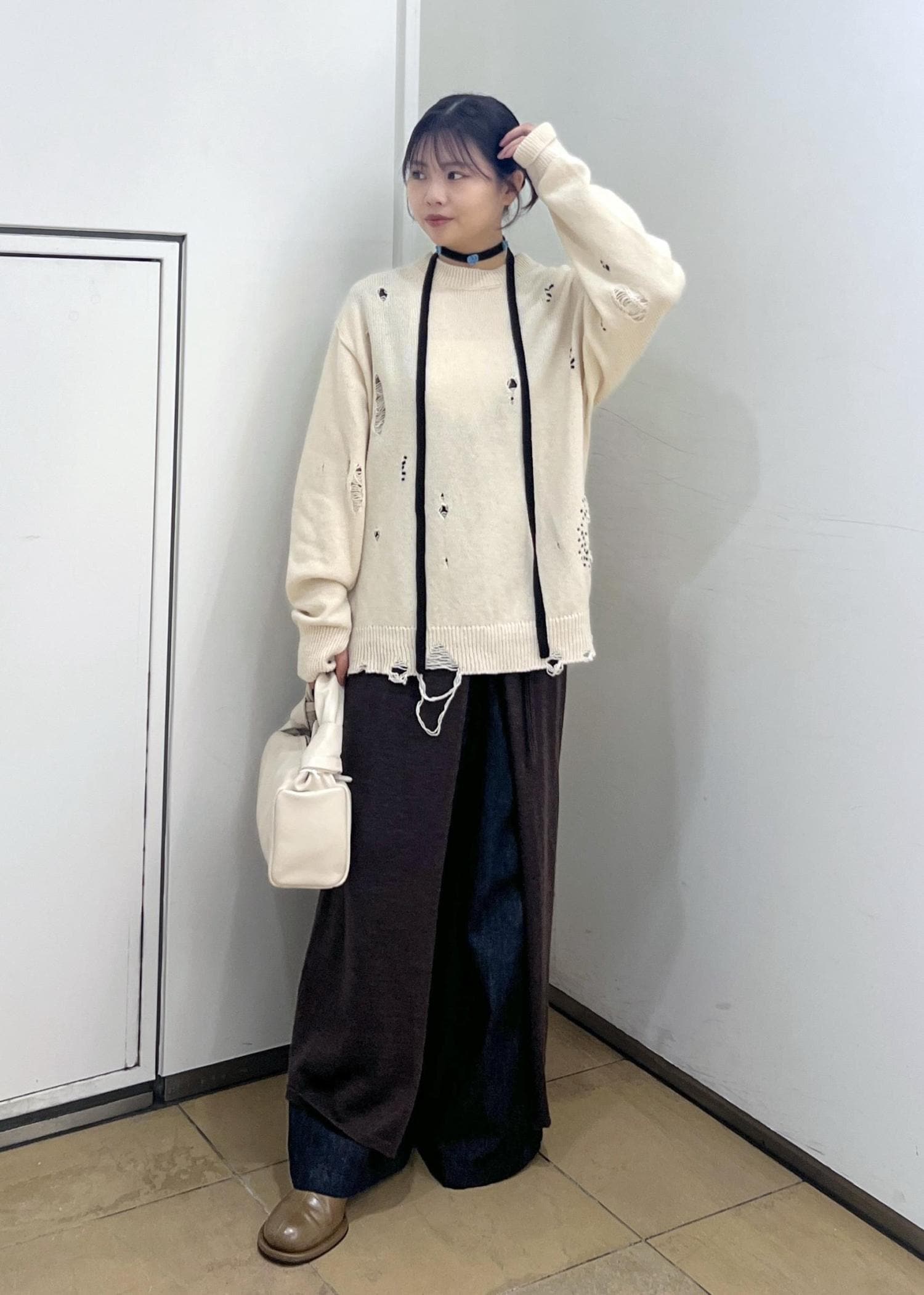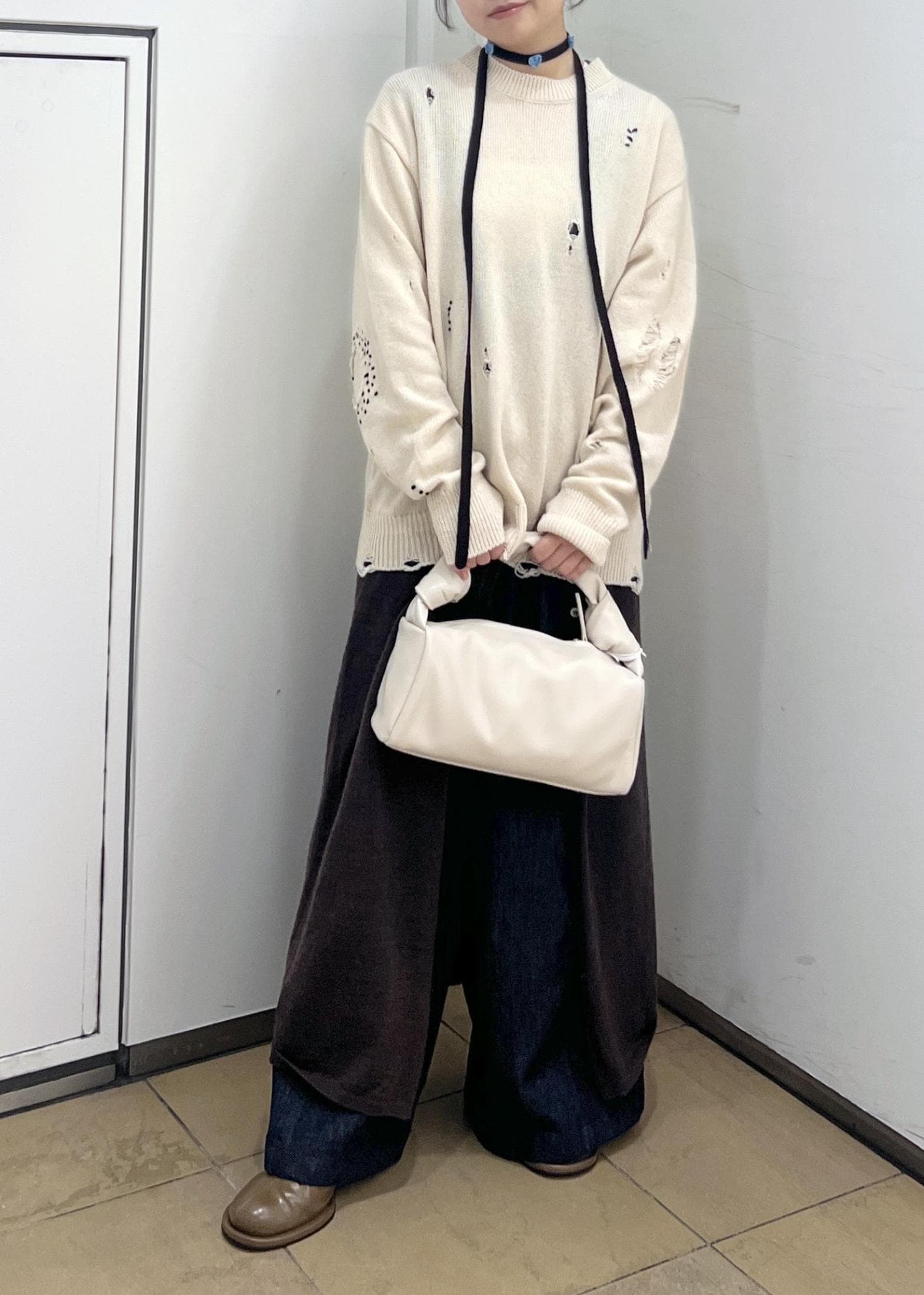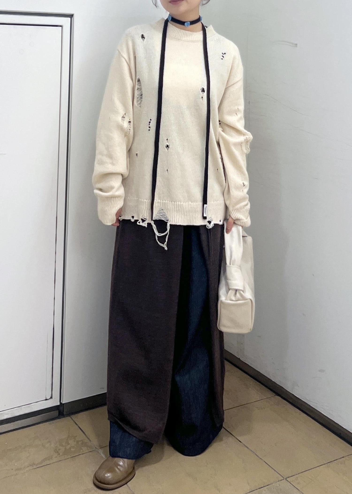 ニットもほんのりダメージなので着やすい◎