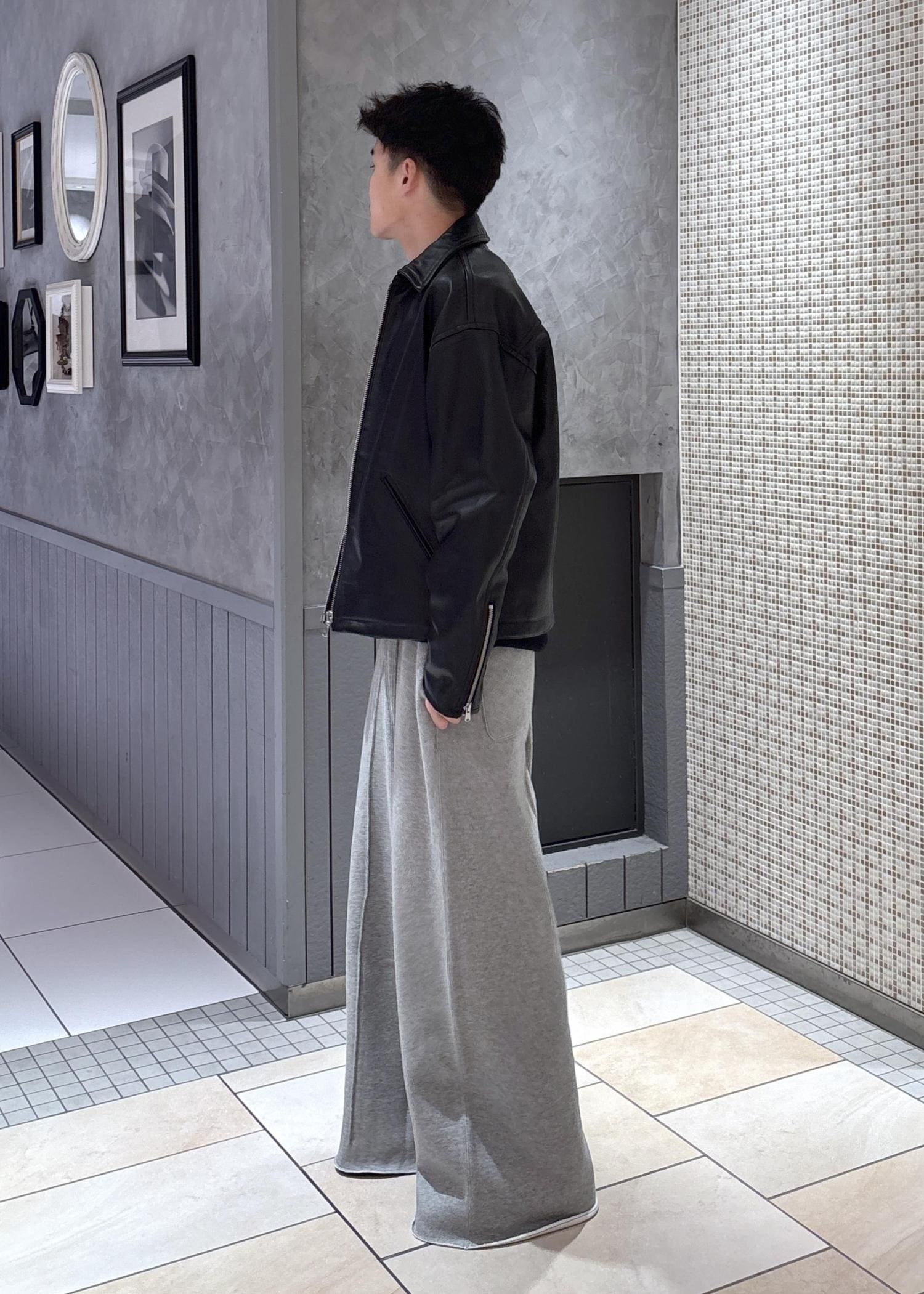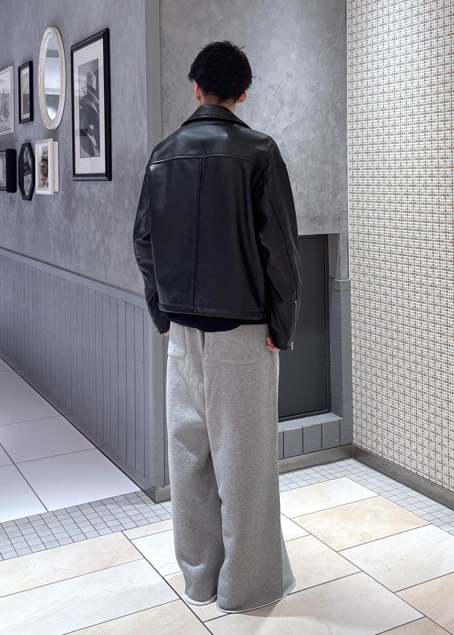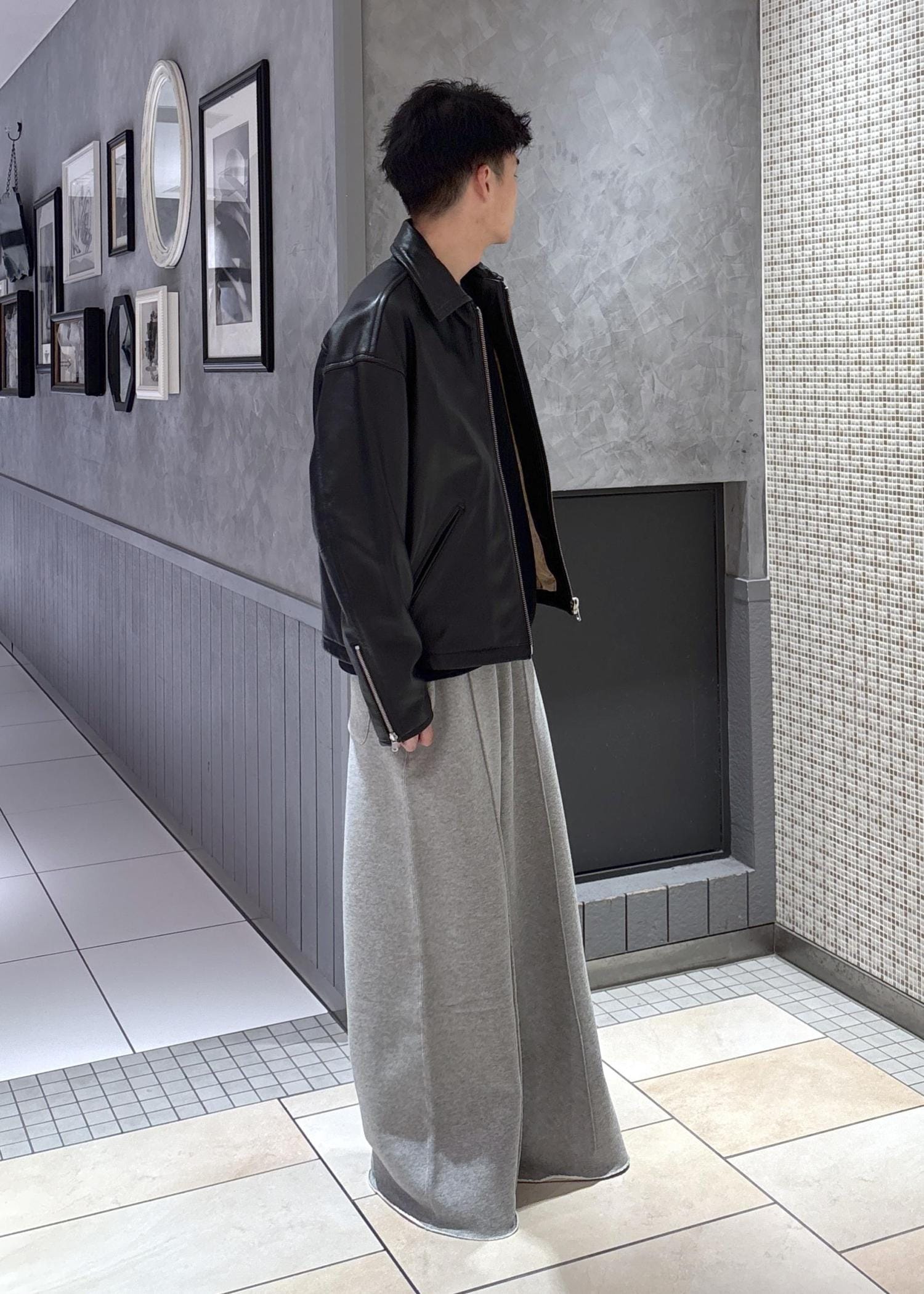 レザーとの相性もよく硬くなりすぎないスタイリングがおすすめポイントです。