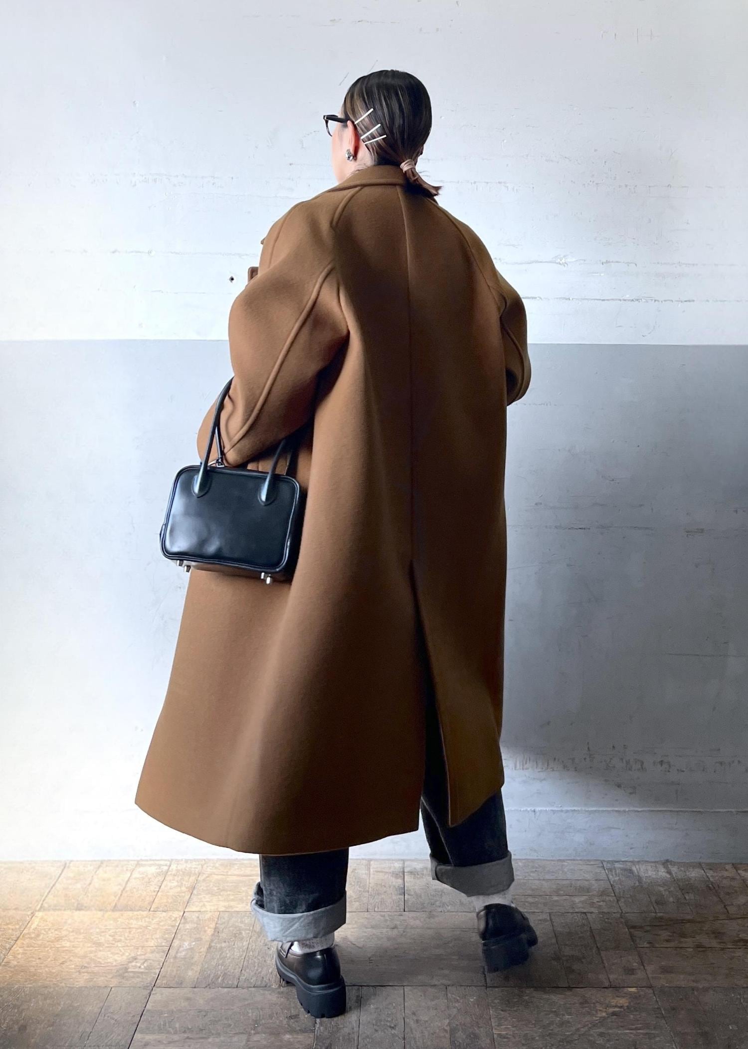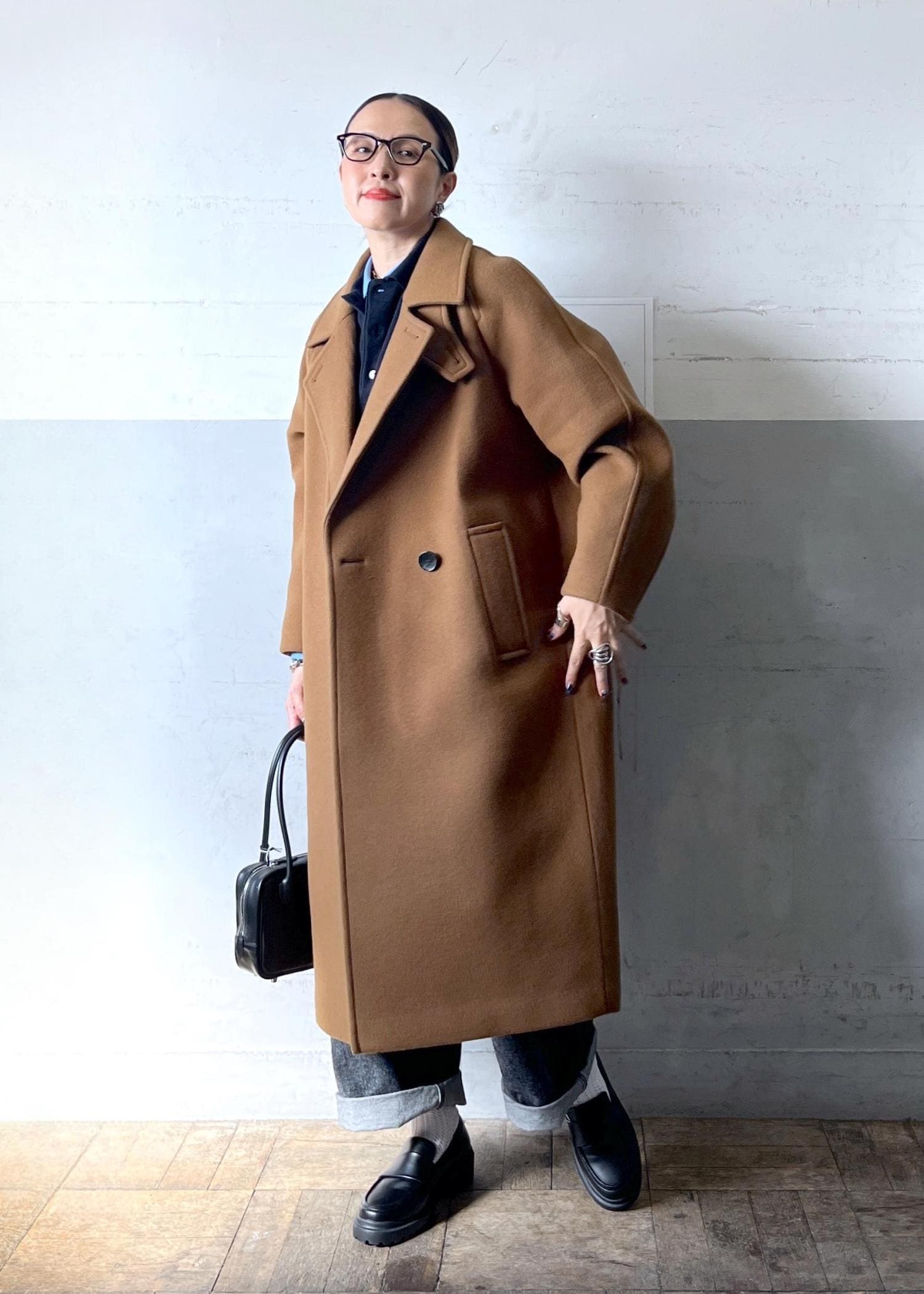 ADAM ET ROPÉ FEMMEウールボンディングラグランロングコートキャメル / 38¥49,500レビューふっくら厚みのあるコートです。166cmで着丈は膝下。サイズ感も大きすぎる事なく重みもあまり感じませんでした。ベーシックで着やすいコートです。
