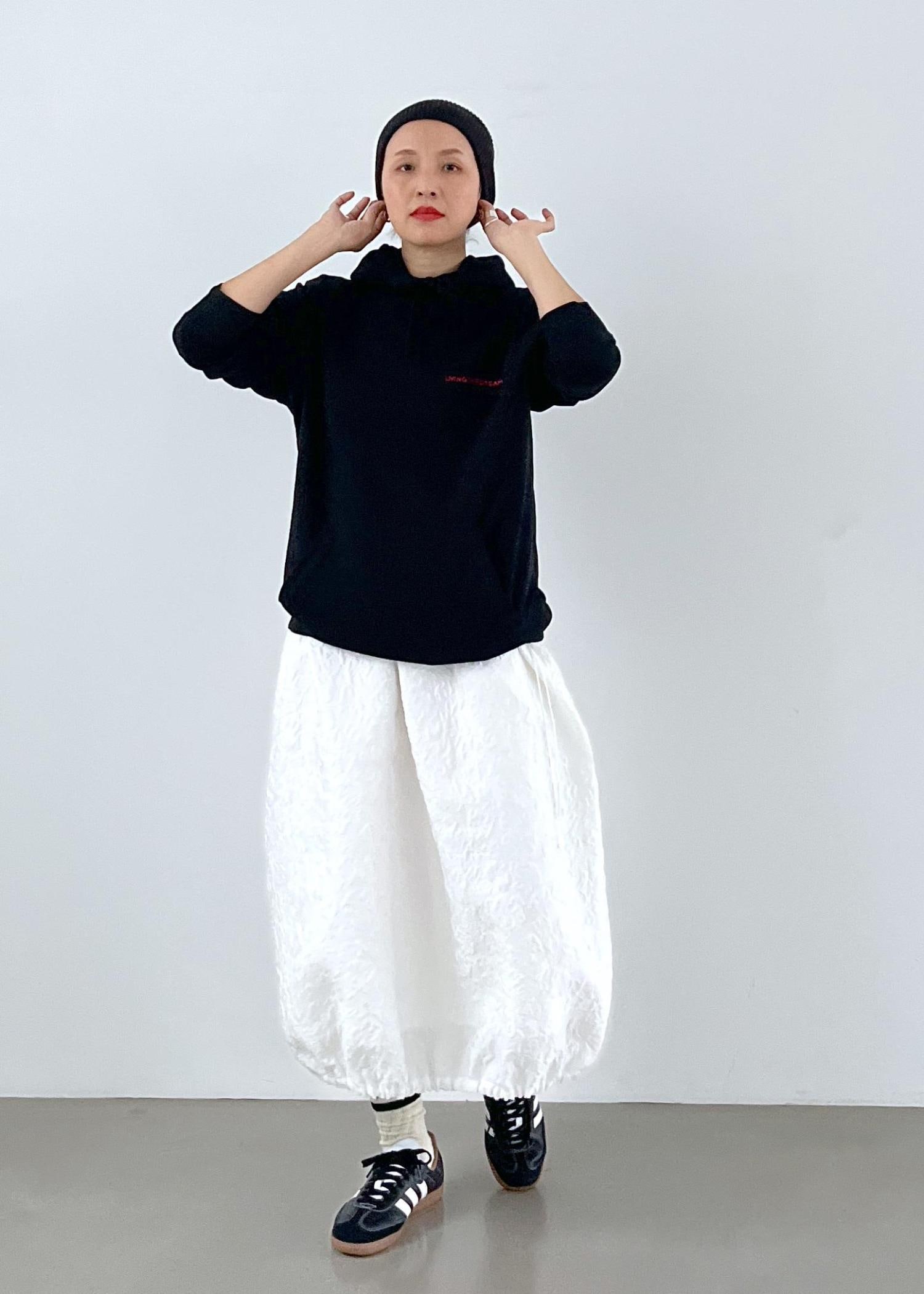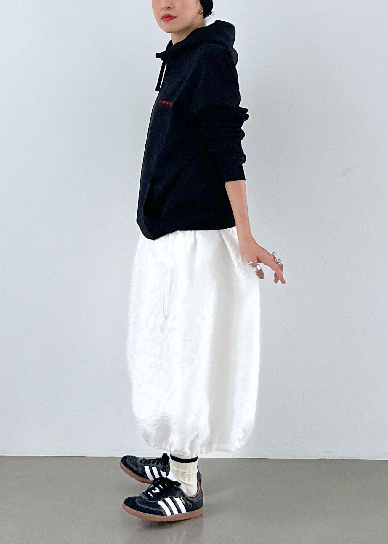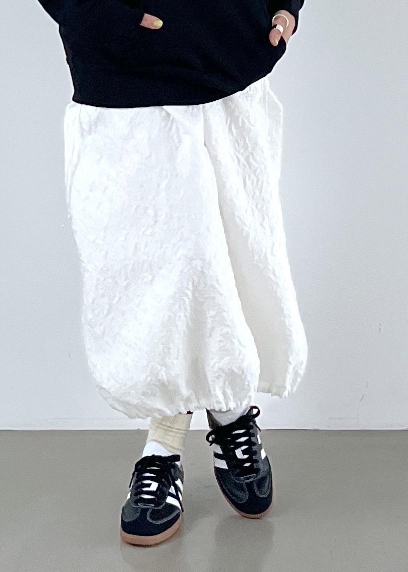 立体的なジャガード織が存在感を放つバルーンスカート。