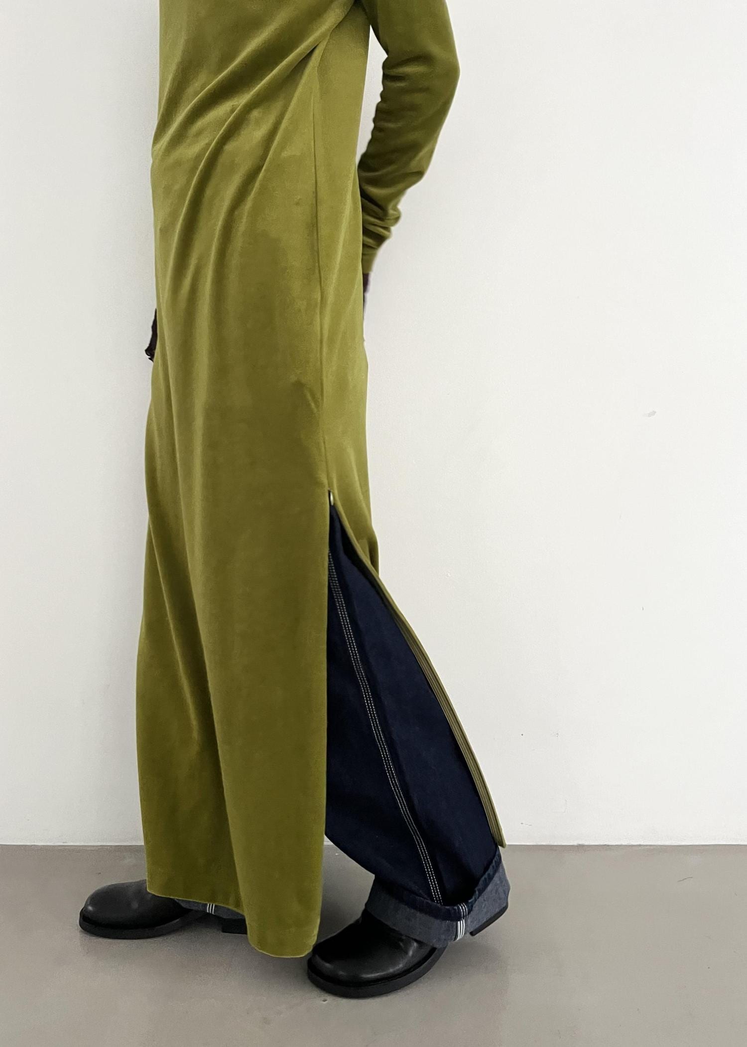 ADAM ET ROPÉ FEMMEベロア BOTANICAL DYED DRESSオリーブ / 2¥22,000レビュー身長162cmで38サイズ着用です。腰回りもフィットし過ぎずパンツとのレイヤードでも綺麗に着れました!明るすぎないグリーンなのでカラーアイテムでも挑戦しやすいとおもいます。スリットはジップで開きの具合が調整できます。