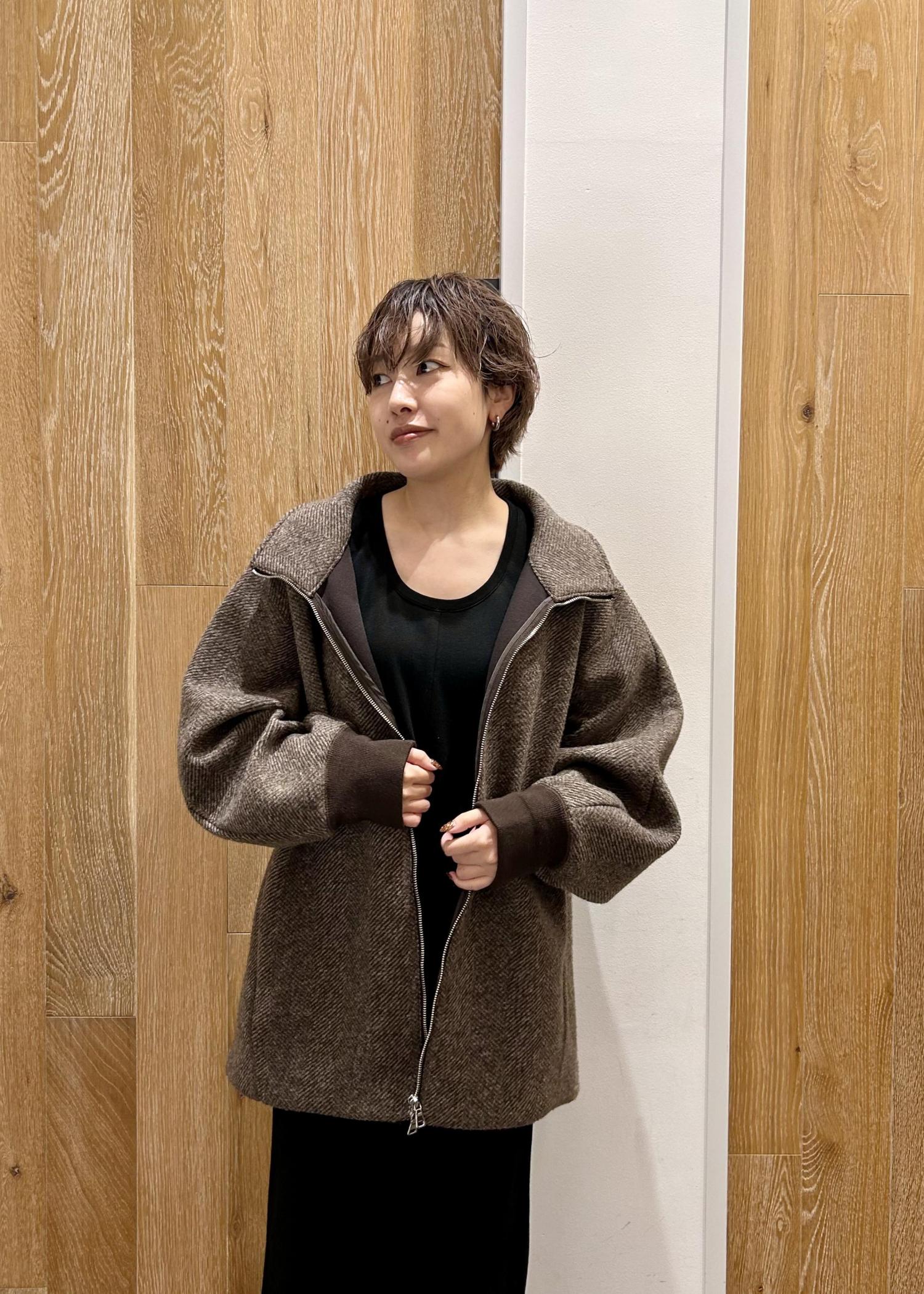 ADAM ET ROPÉ FEMMEヘリンボンツイードボンディングコーディガンブラウン系 / F¥26,400レビュー軽くて暖かな大人気アウター。