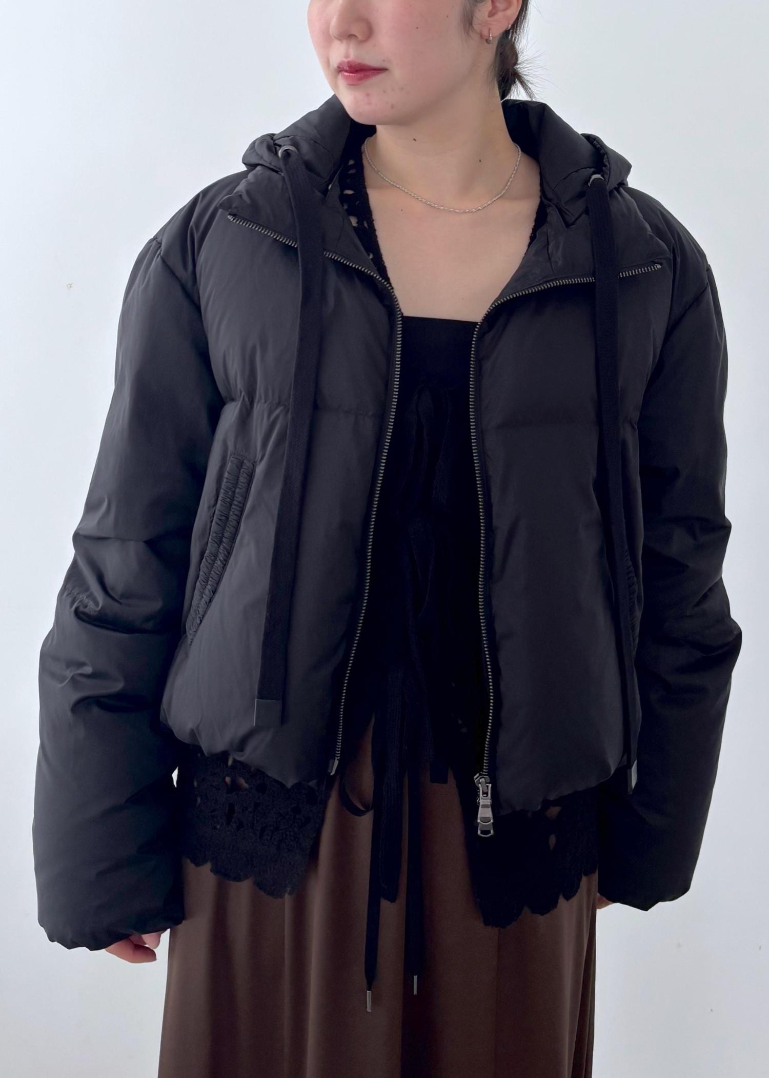 ADAM ET ROPÉ FEMME【サステナブル】2WAYフーディショートダウン/撥水ブラック / F¥46,200レビュー柔らかくて軽い!