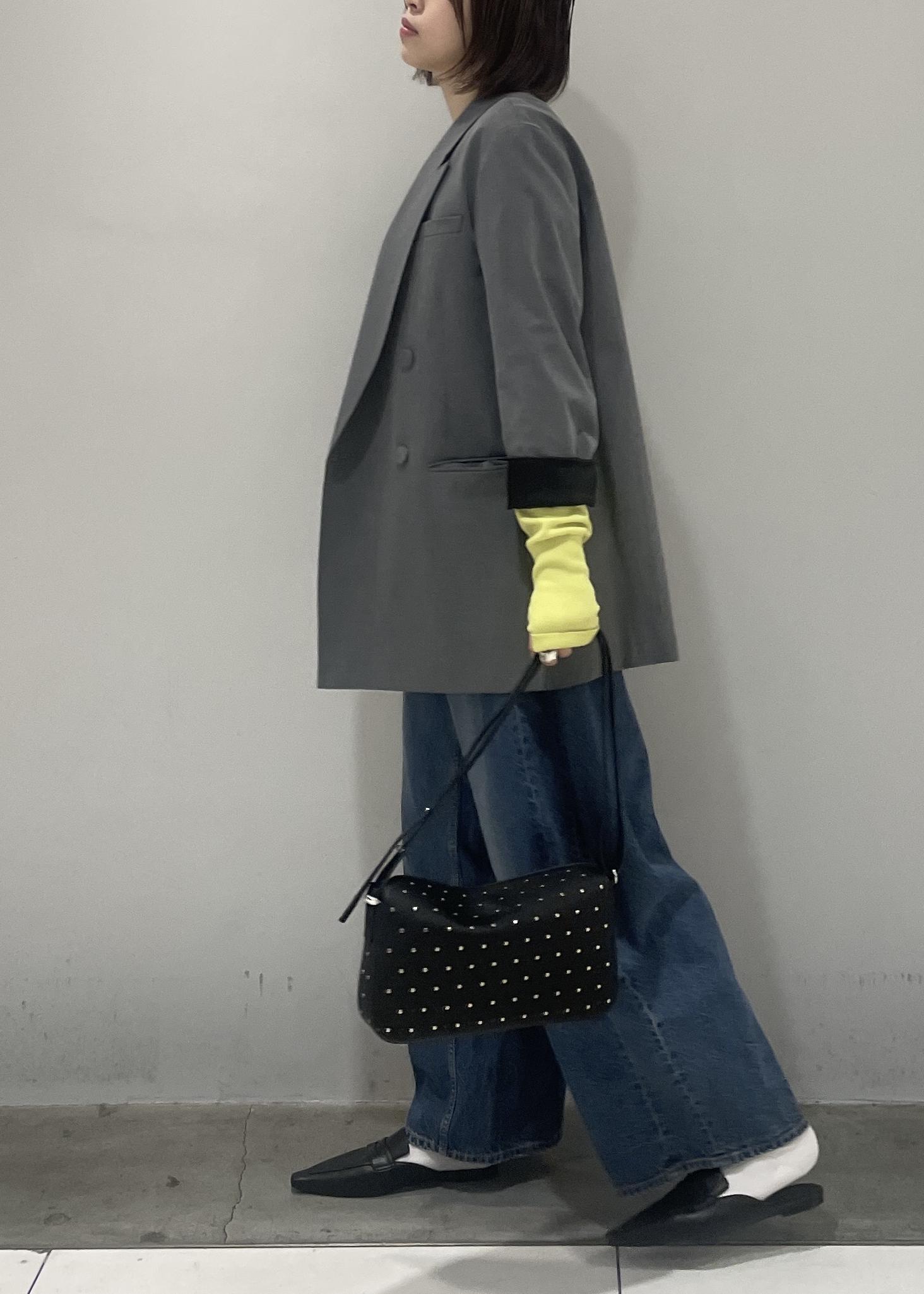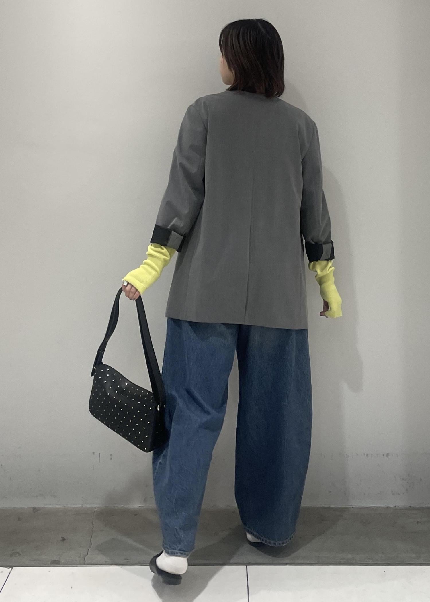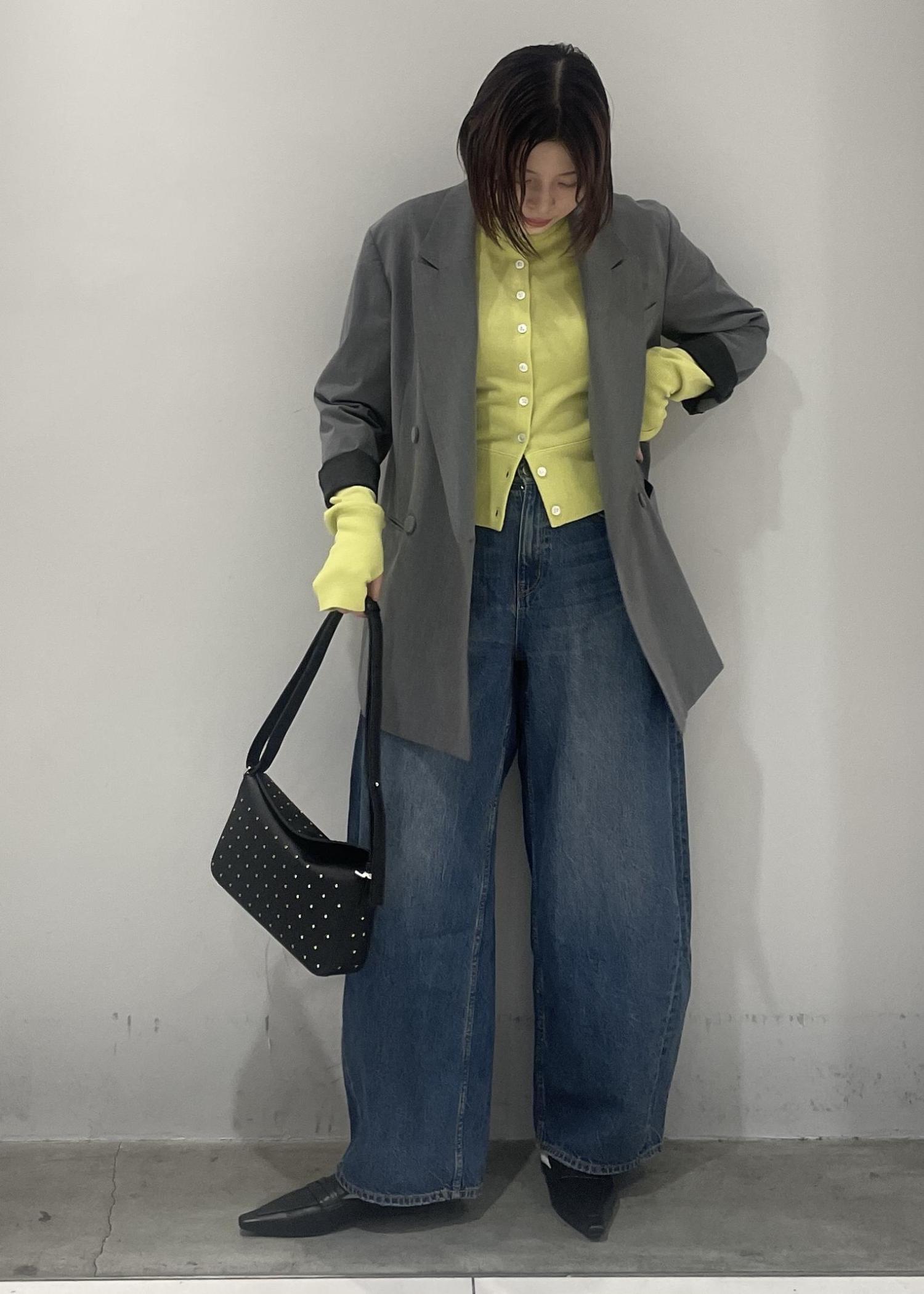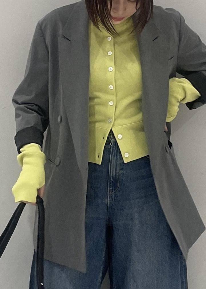 ジャケットにデニム合わせという、定番のスタイルでも色みが入るだけでぐっど華やかに、そして個性的になります!