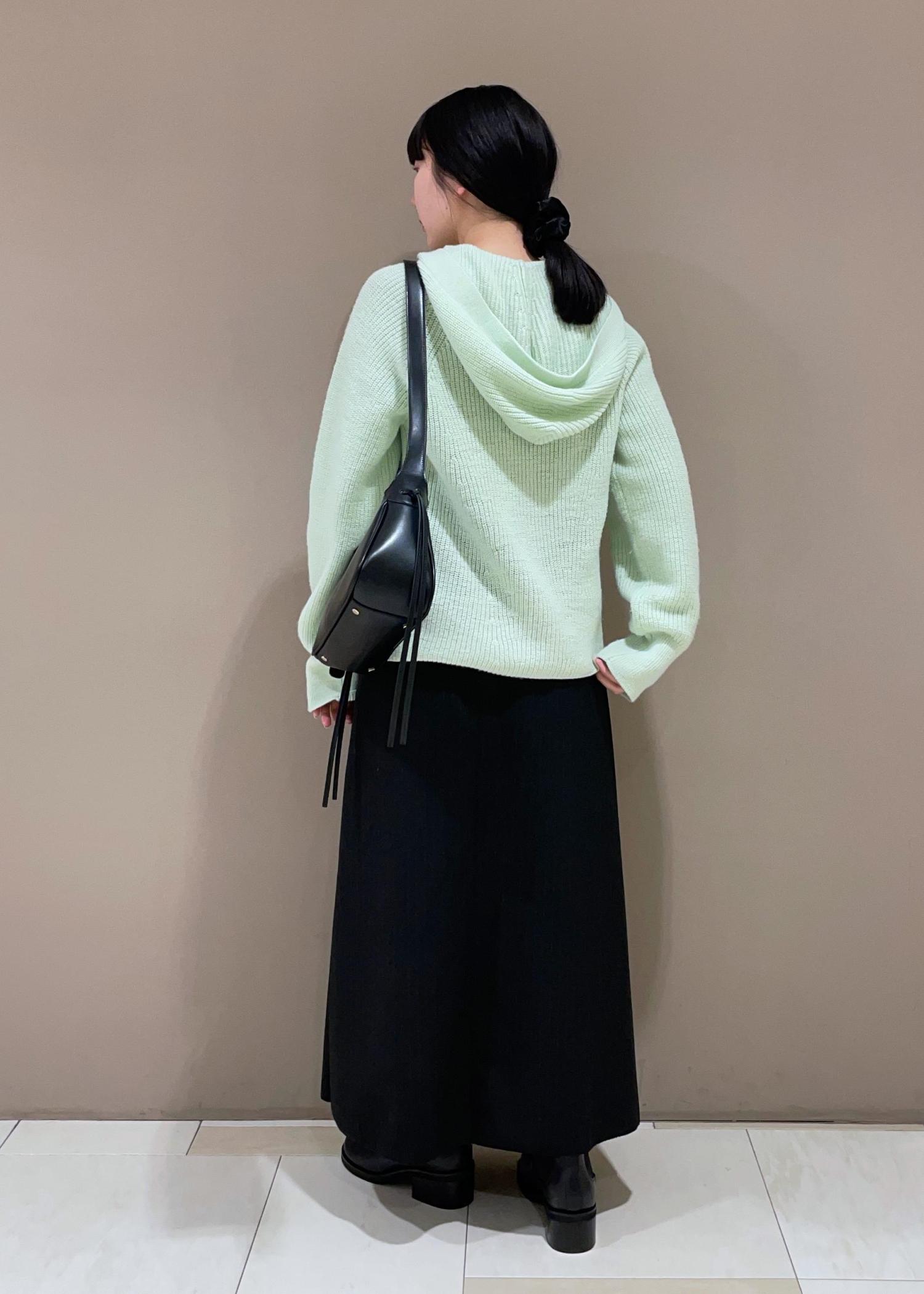 ADAM ET ROPÉ FEMMEイタリアンウールフーディーカーディガンライトグリーン / F¥26,400レビュー首周りがゆったりでインナーとの組み合わせを楽しめます◎前開きでカーディガンになる所も使いやすい!