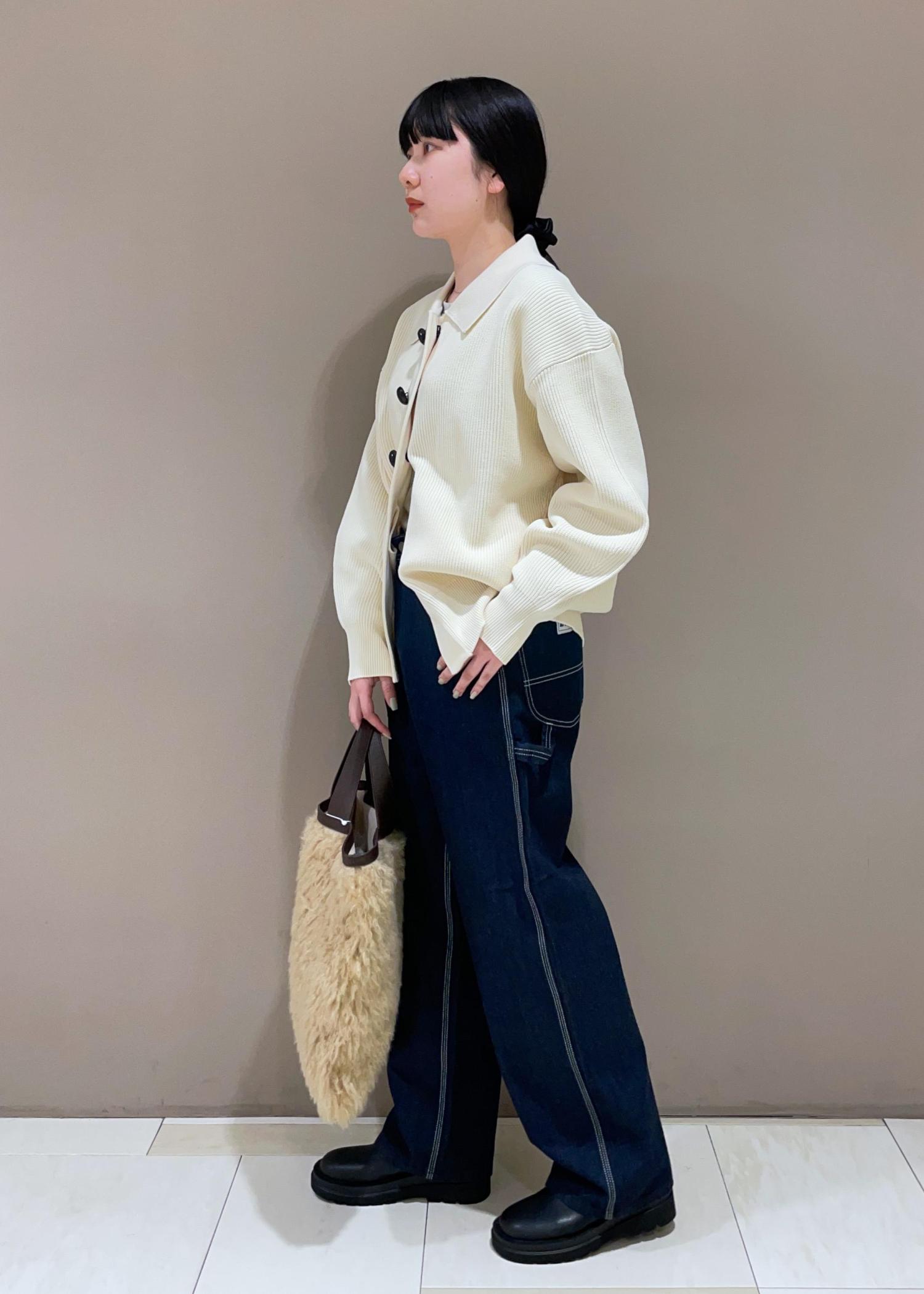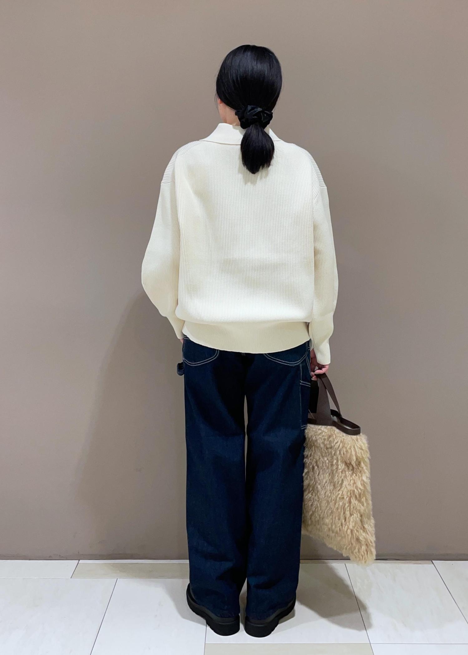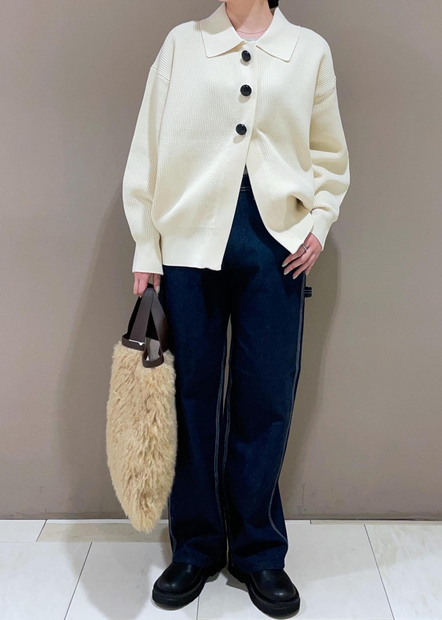ADAM ET ROPÉ FEMME【サステナブル】ポロニットリラックスカーディガンキナリ / F¥18,700レビューヒップもマルっと隠れる安心丈。首元があいたデザインで、インナーとの合わせやアクセサリーのコーディネートも楽しめます◎