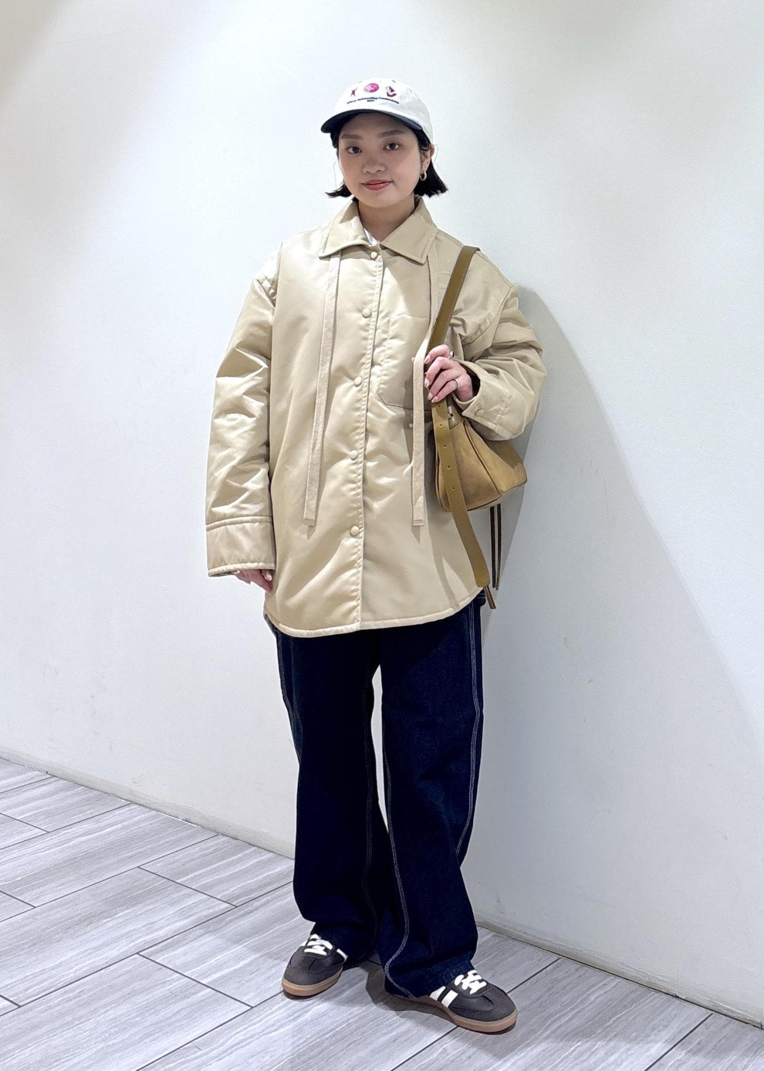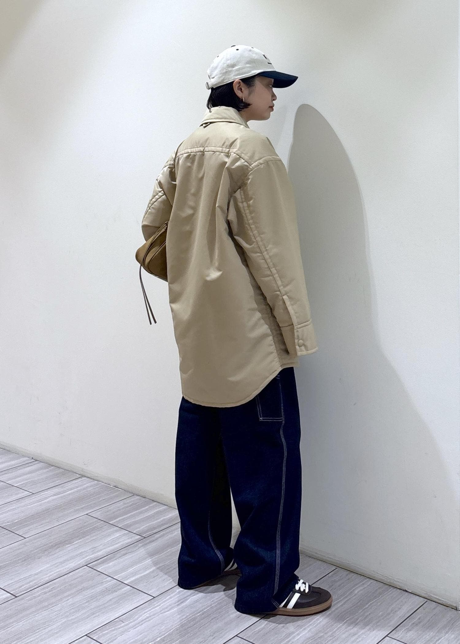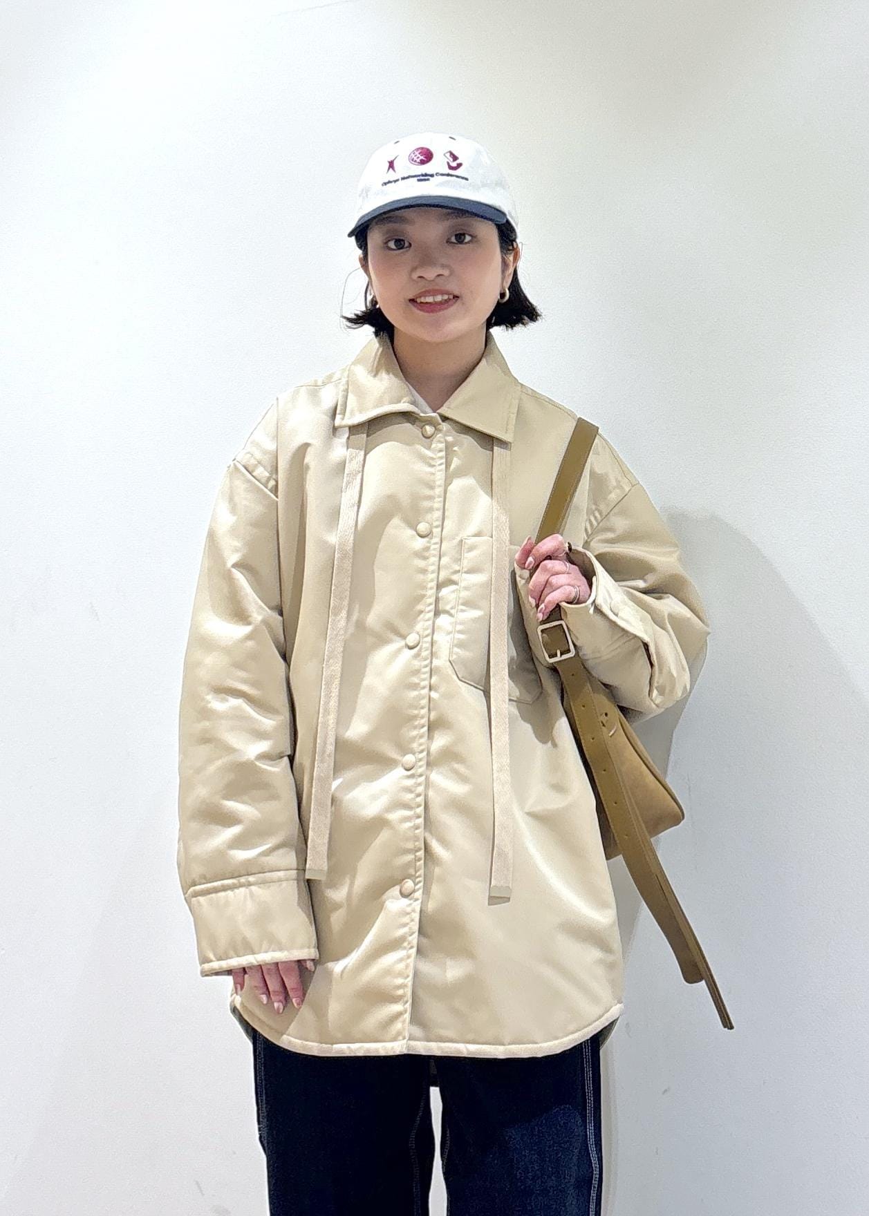 ADAM ET ROPÉ FEMME【サステナブル】ボンバーツイルパデットシャツブルゾン/撥水ベージュ / F¥29,700レビューシャツのようなデザインでカジュアルからきれいめまで幅広く合わせやすいです!