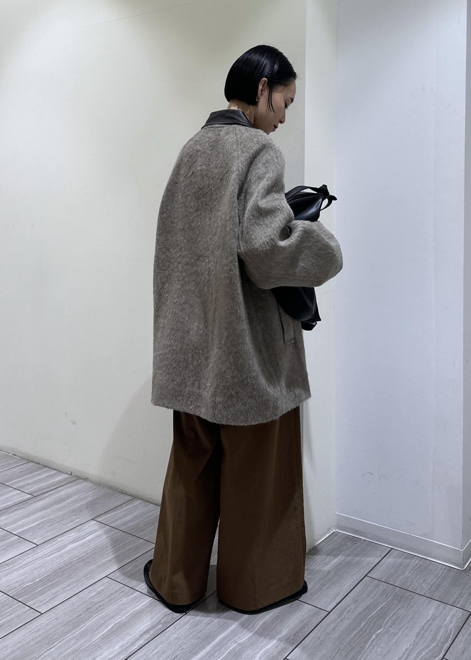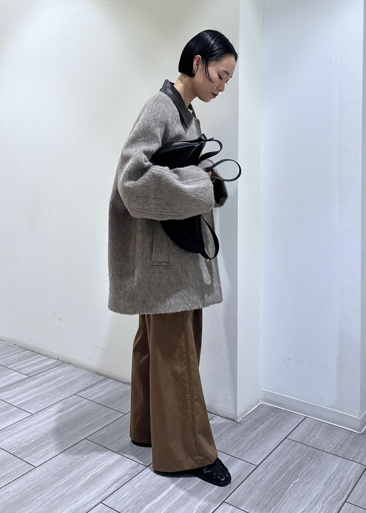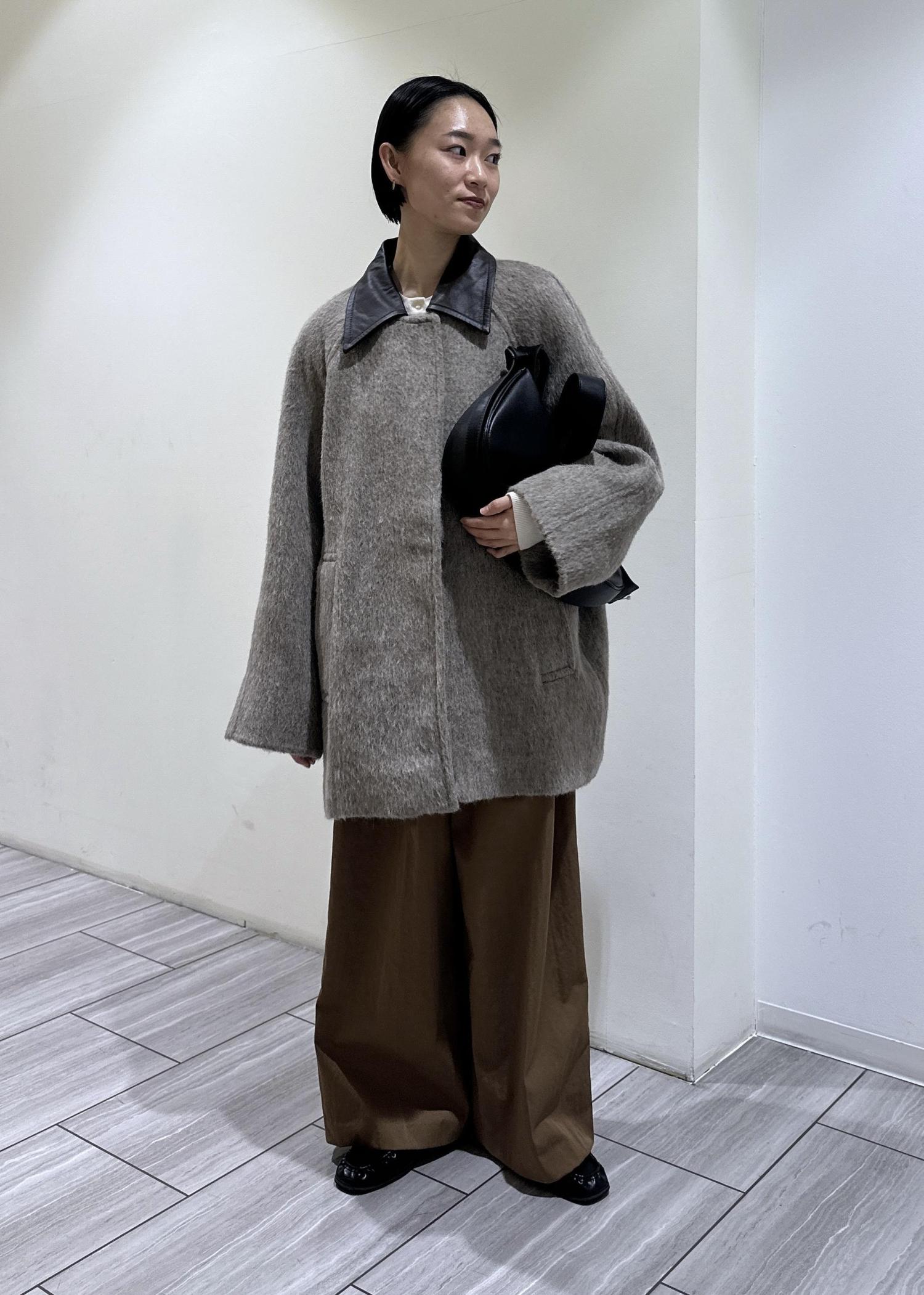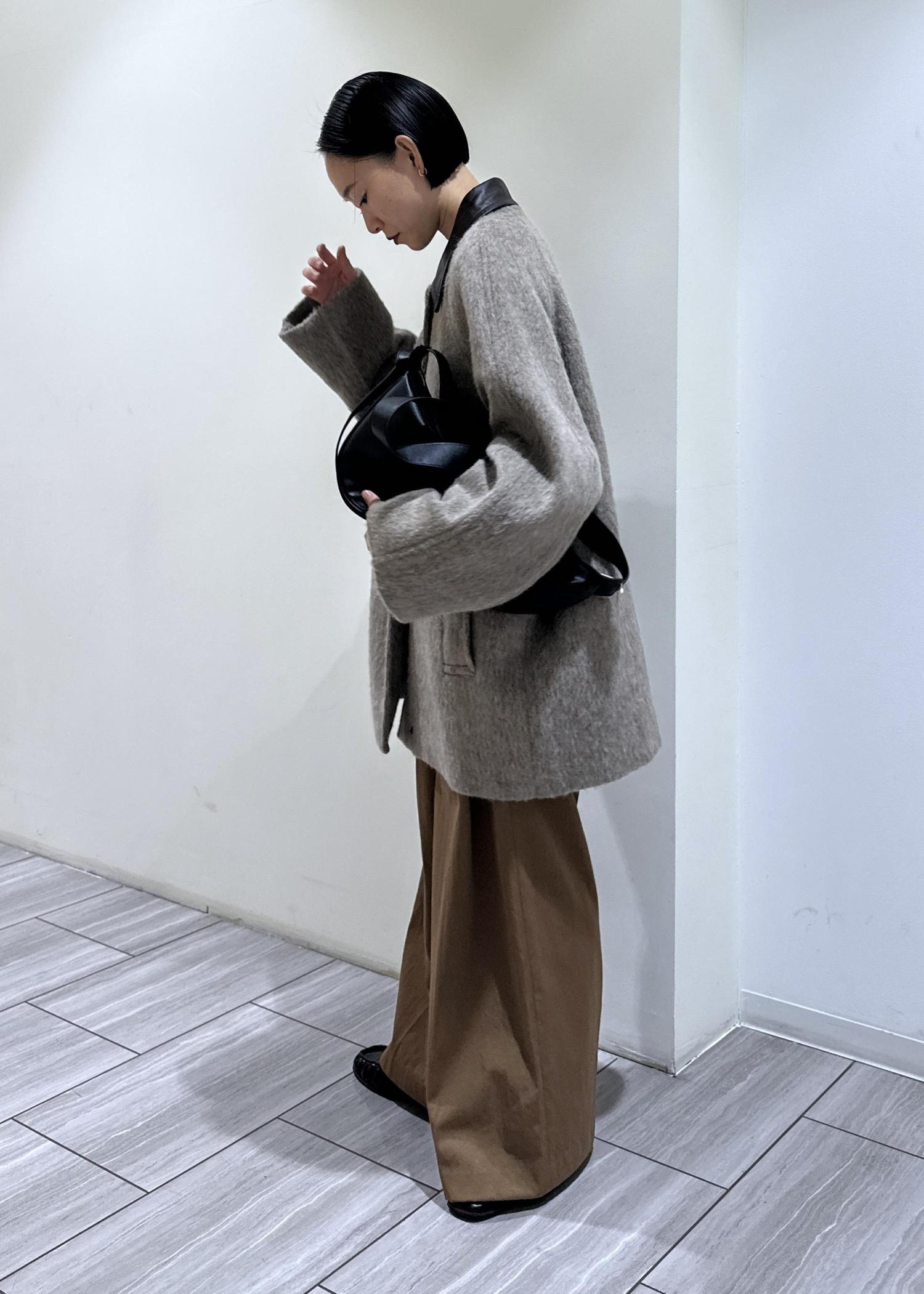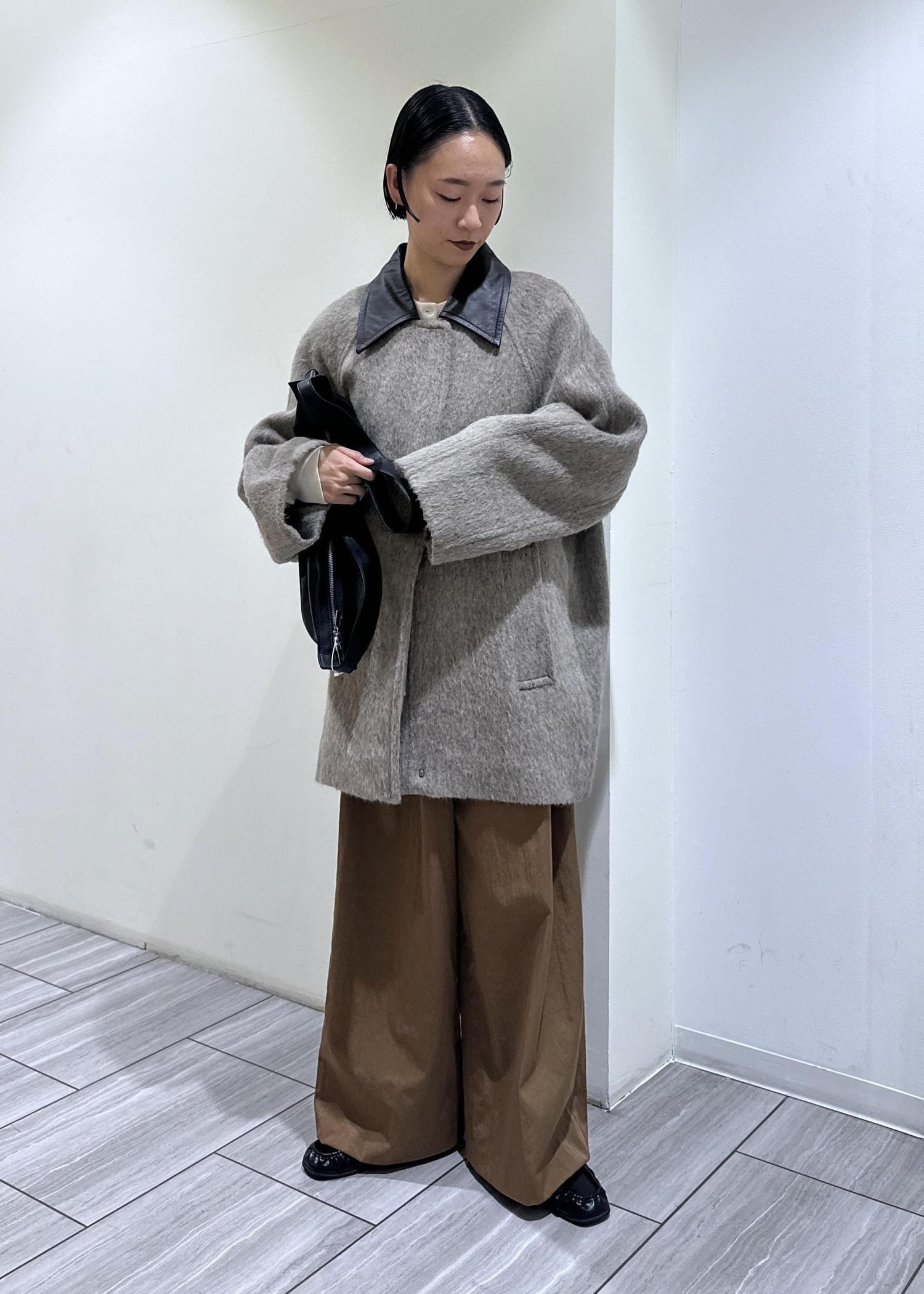 EMOELLE【EMOELLE】レザーカラーミドルコートベージュ系 / F¥79,200レビューミドル丈のアウター。素材春とても柔らかく軽めになっています。身幅もしっかりとある為、インナーにも着込みやすいサイズ感。