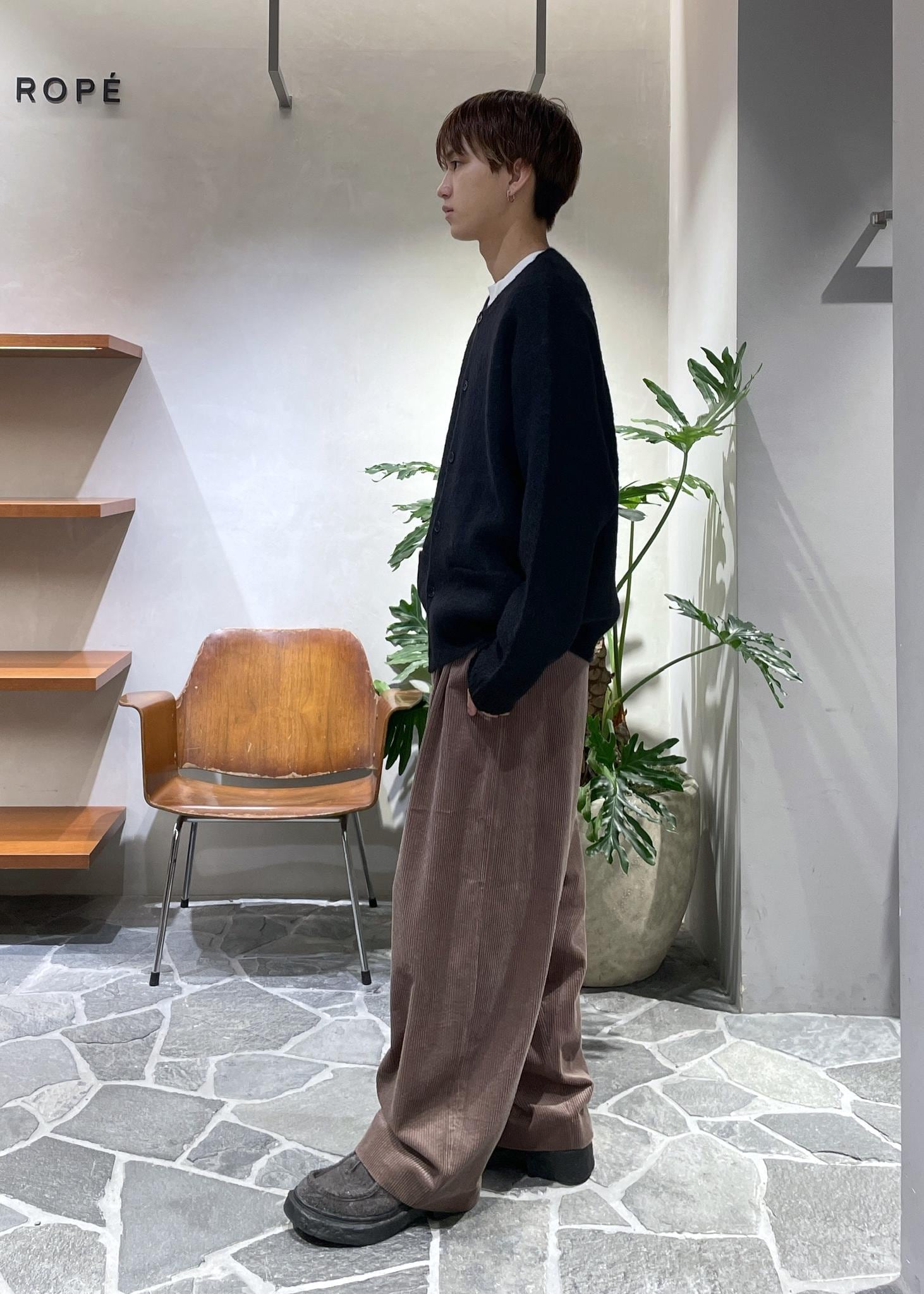 コーデュロイ素材の2タックの落ち感がとても綺麗なワイドバギーパンツになります。