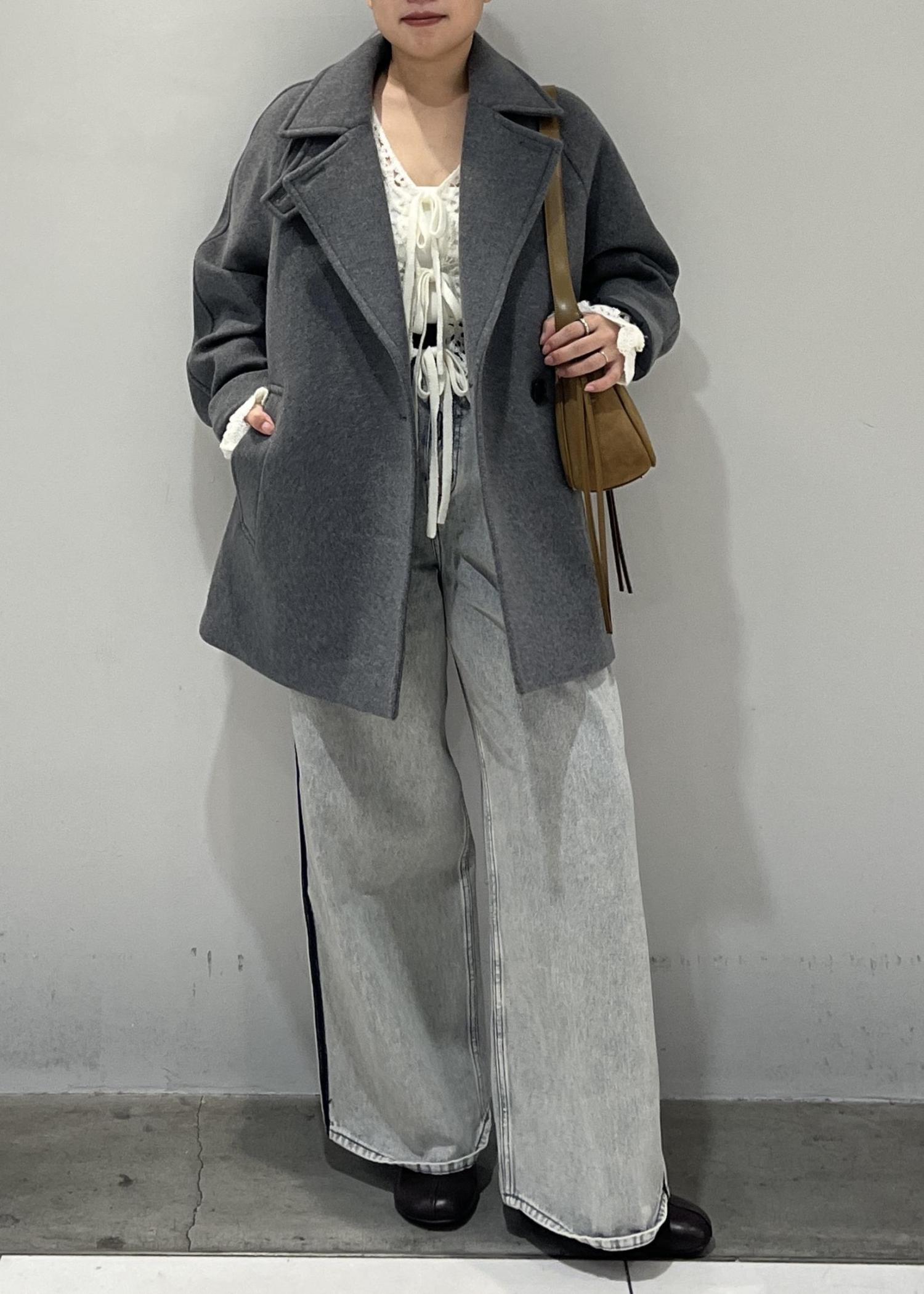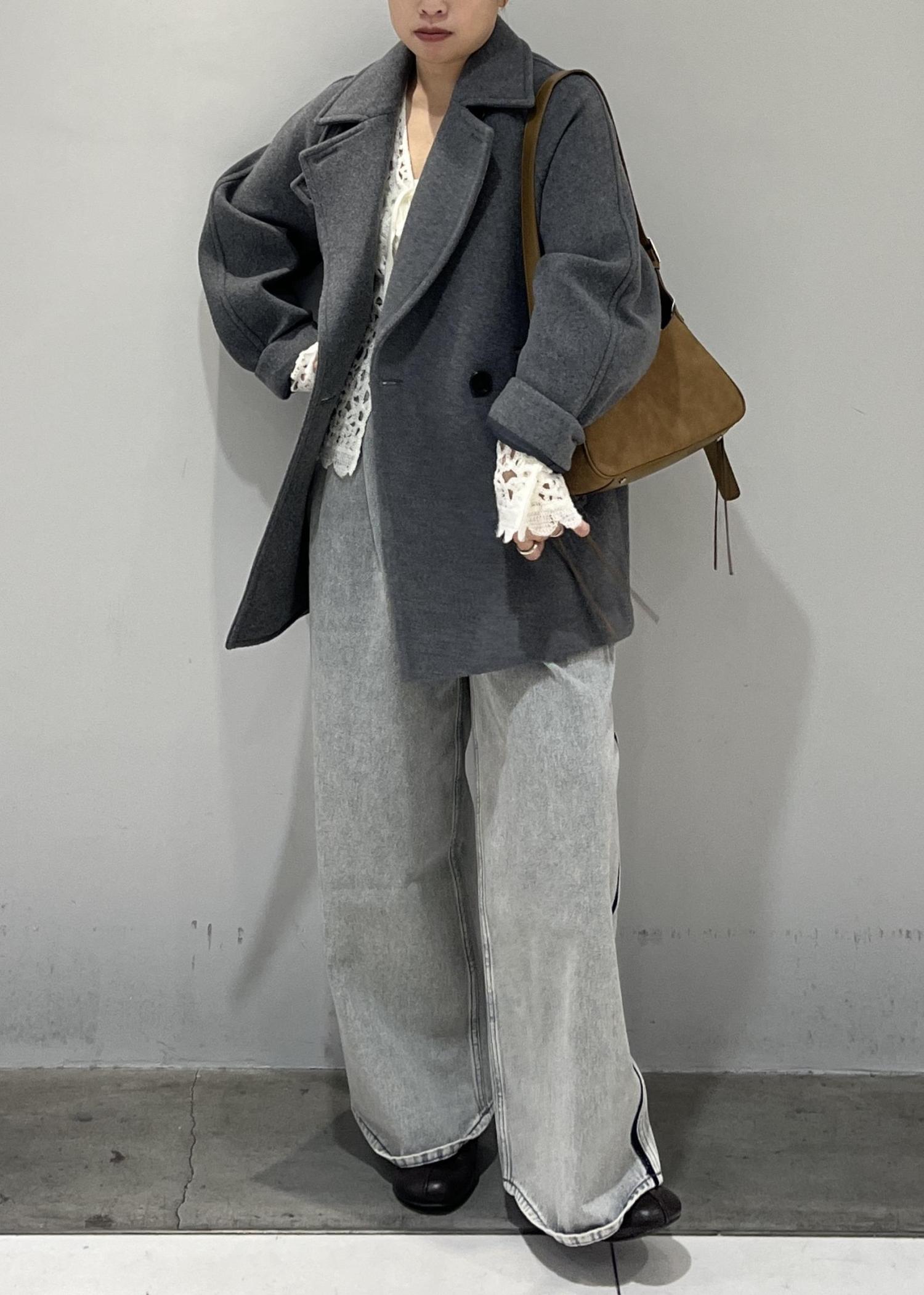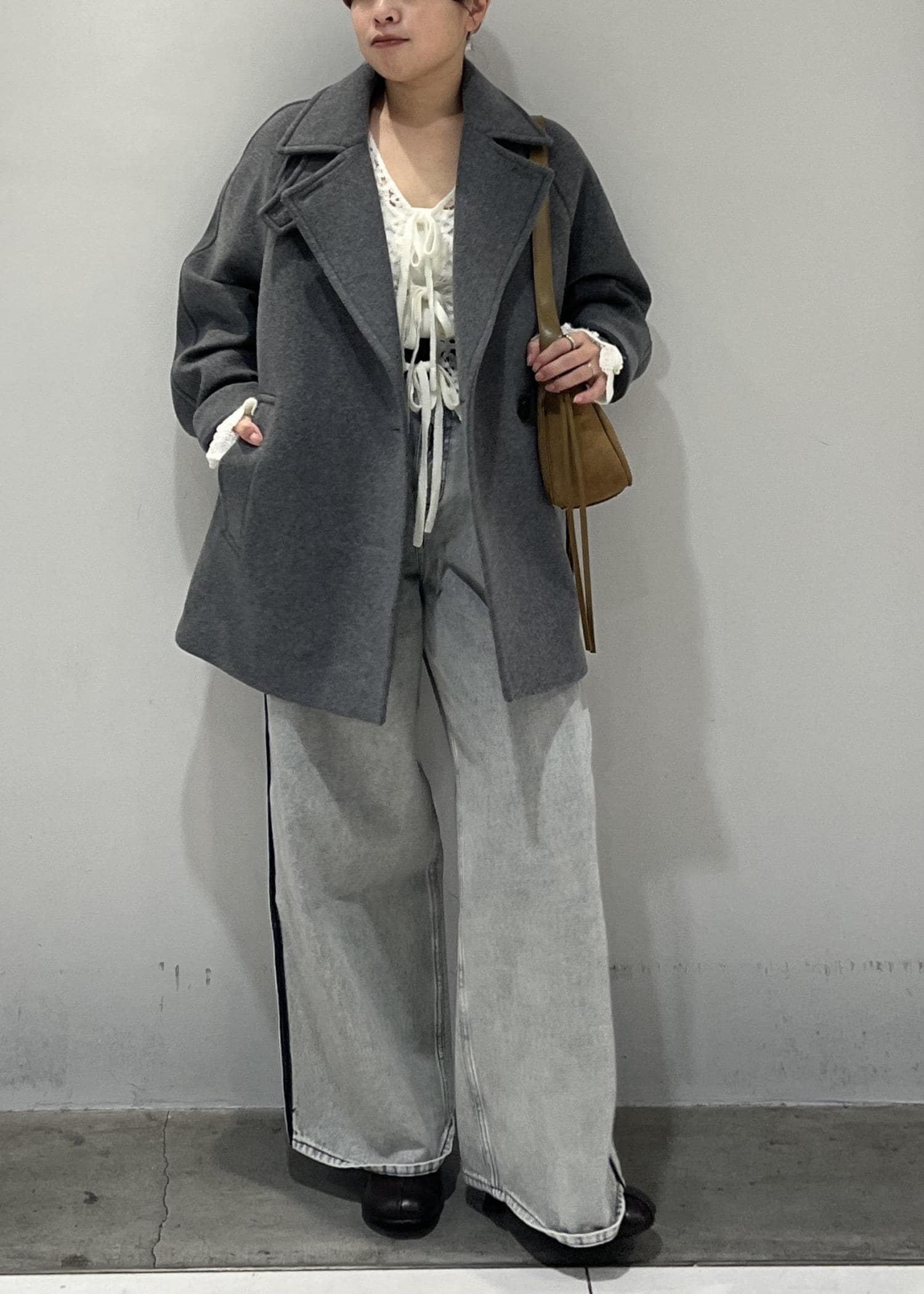 ADAM ET ROPÉ FEMMEウールボンディングミドルコートチャコール / F¥46,200レビューオーバーサイズのシルエットで中も着込める大きさです