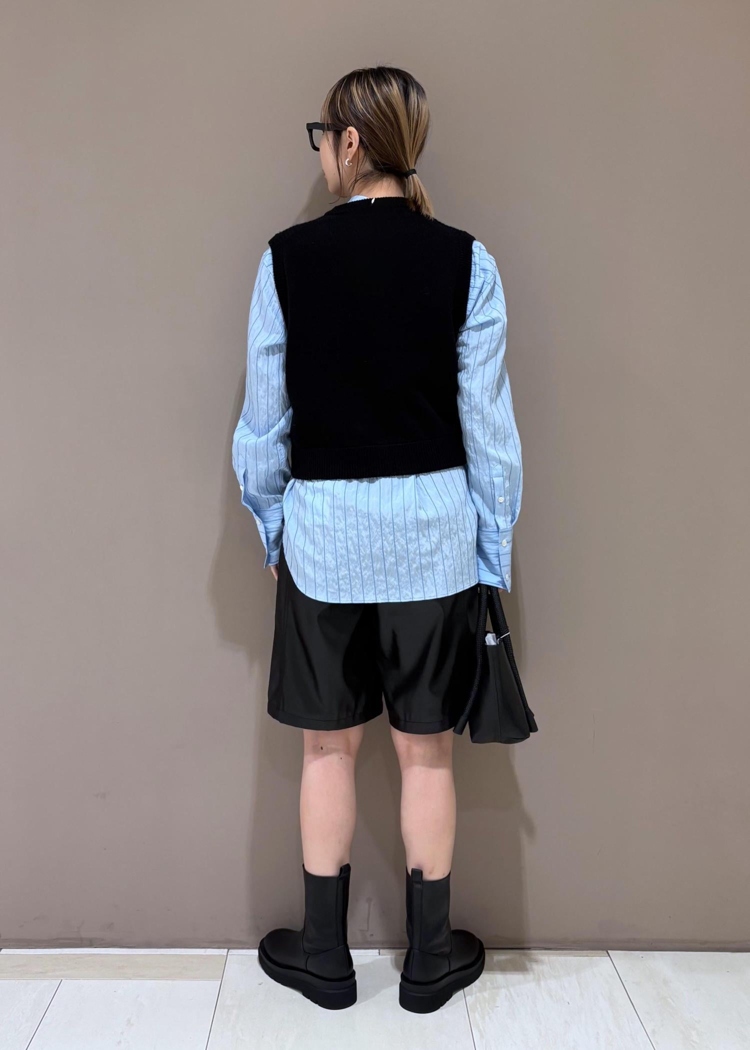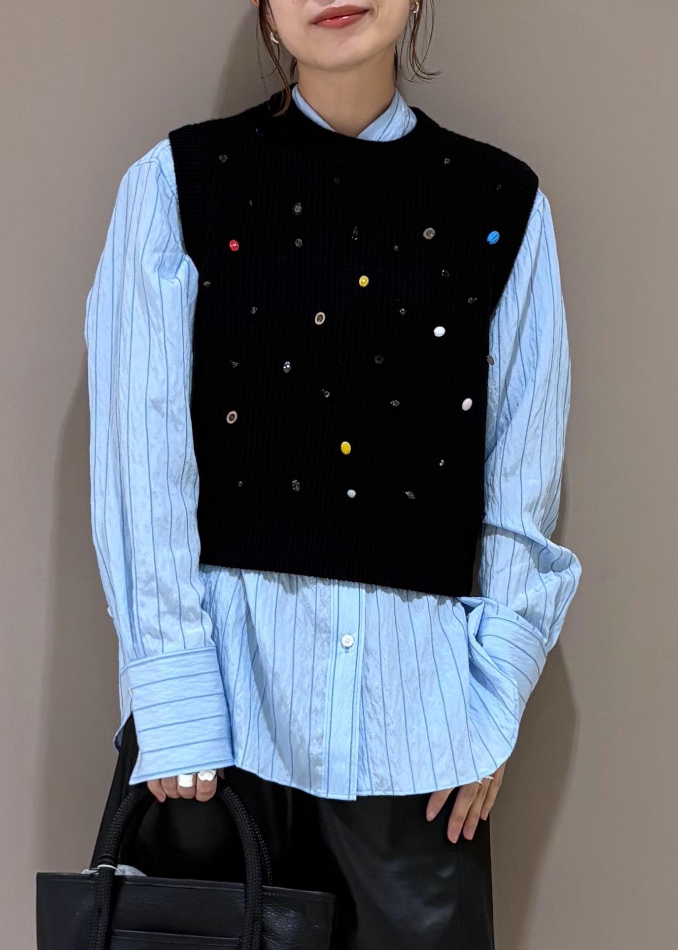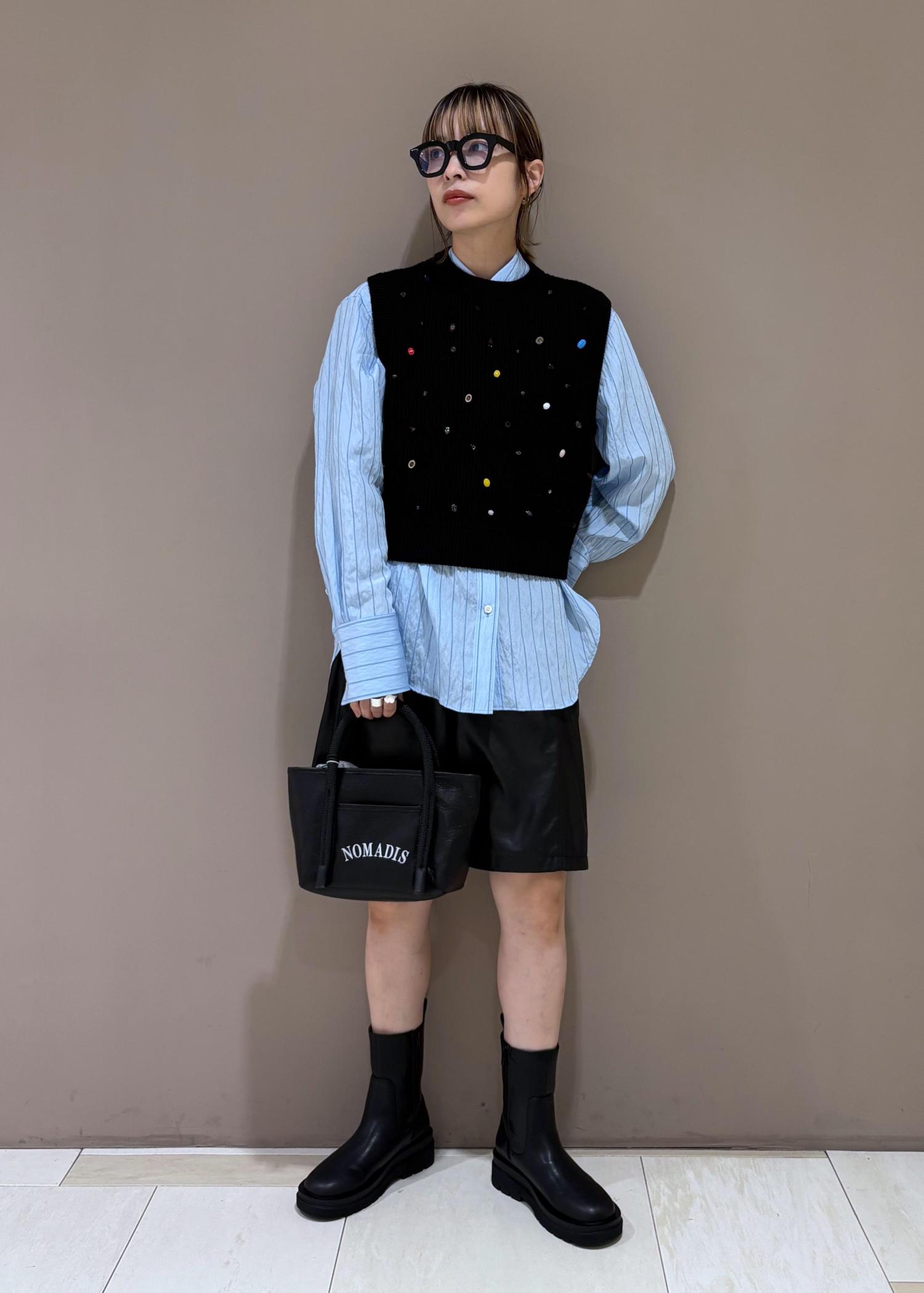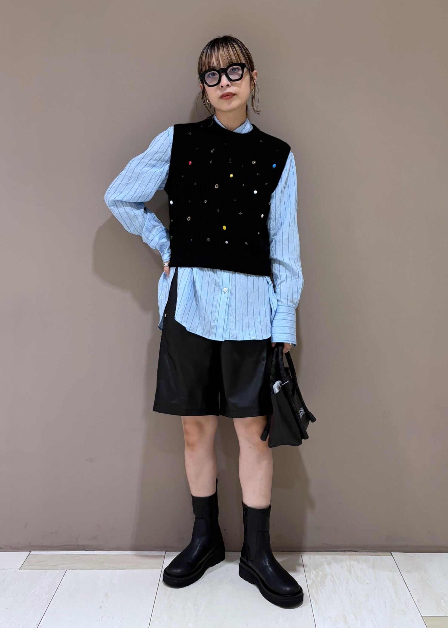 シャツとレイヤードして、かわいすぎない印象で◎
