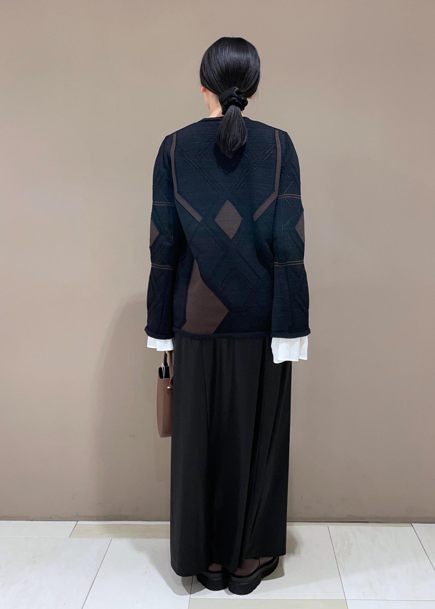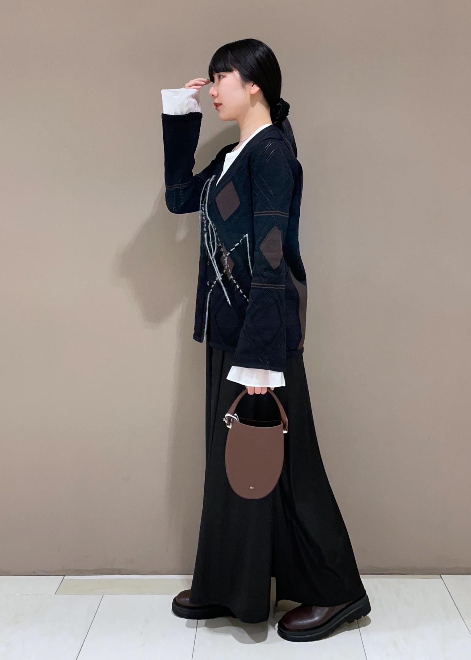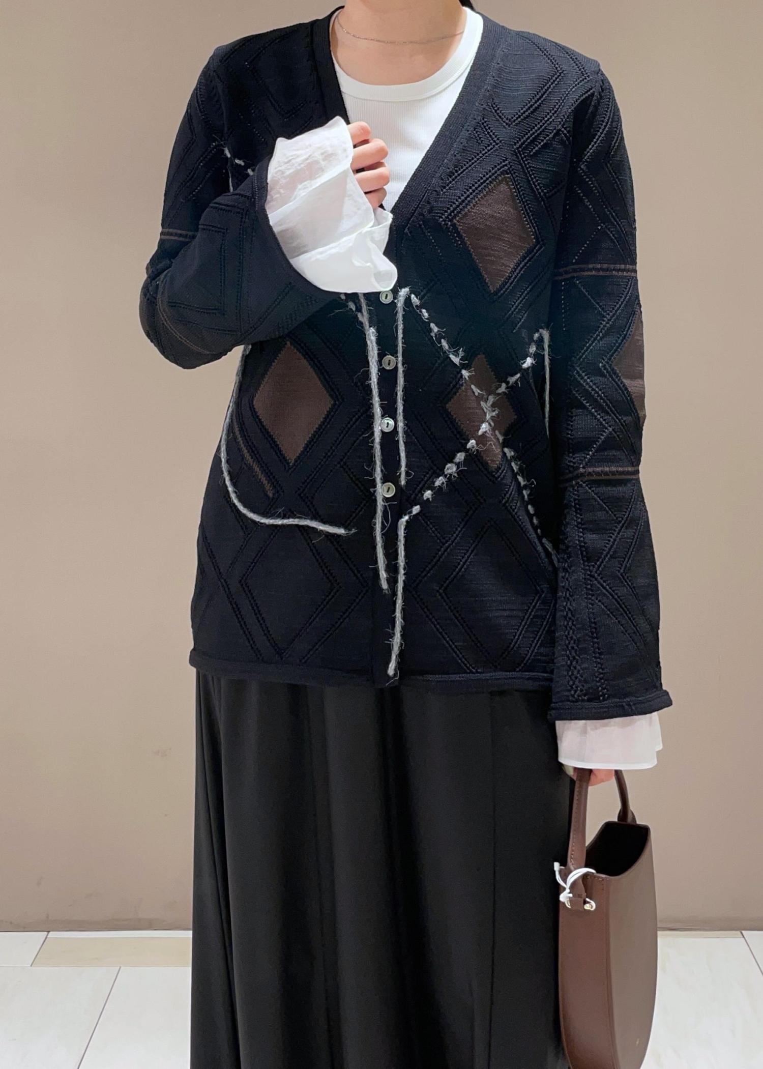 コーディネートの主役になるパターンニットカーディガンを着用しました!