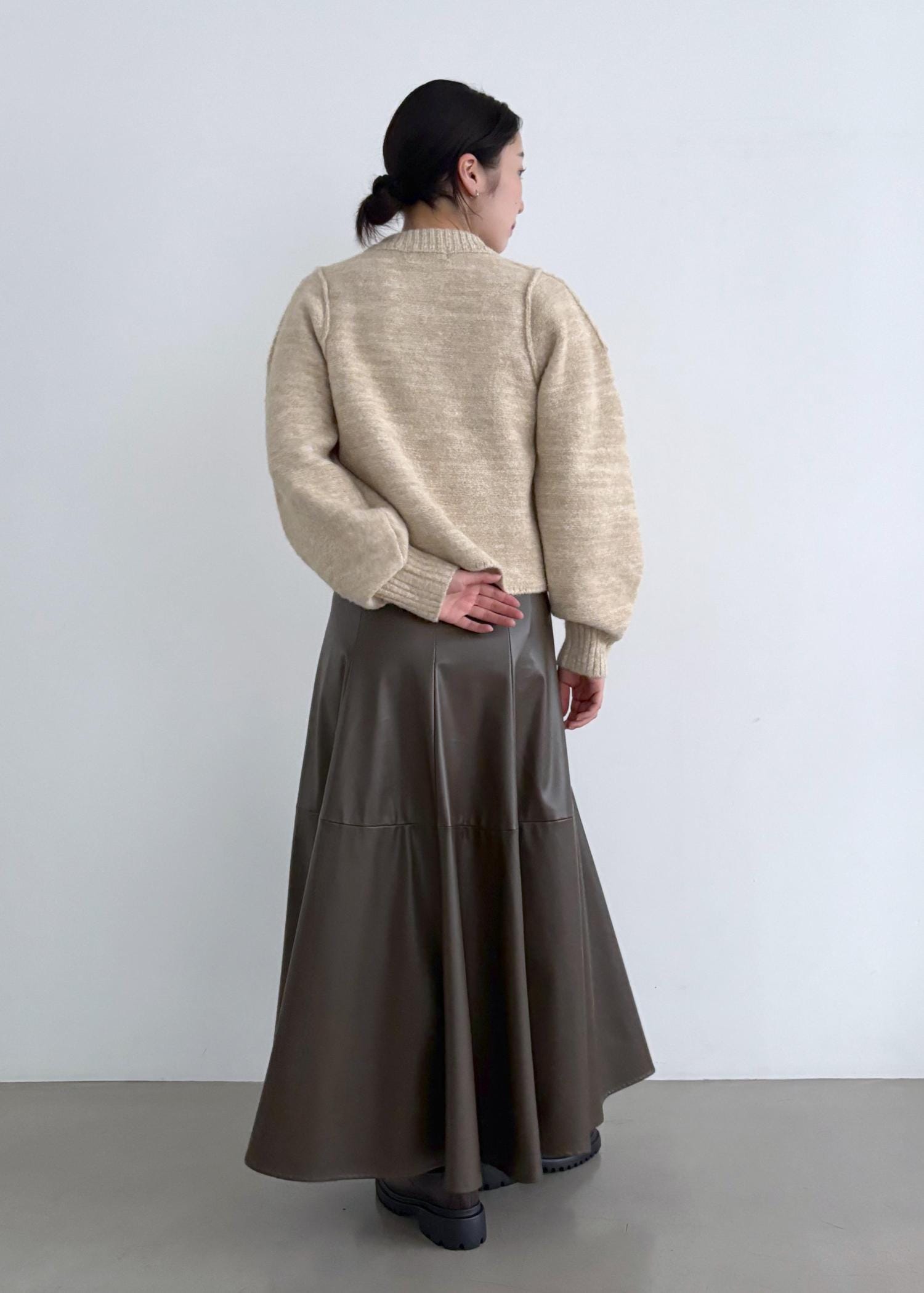 ニット×レザースカート