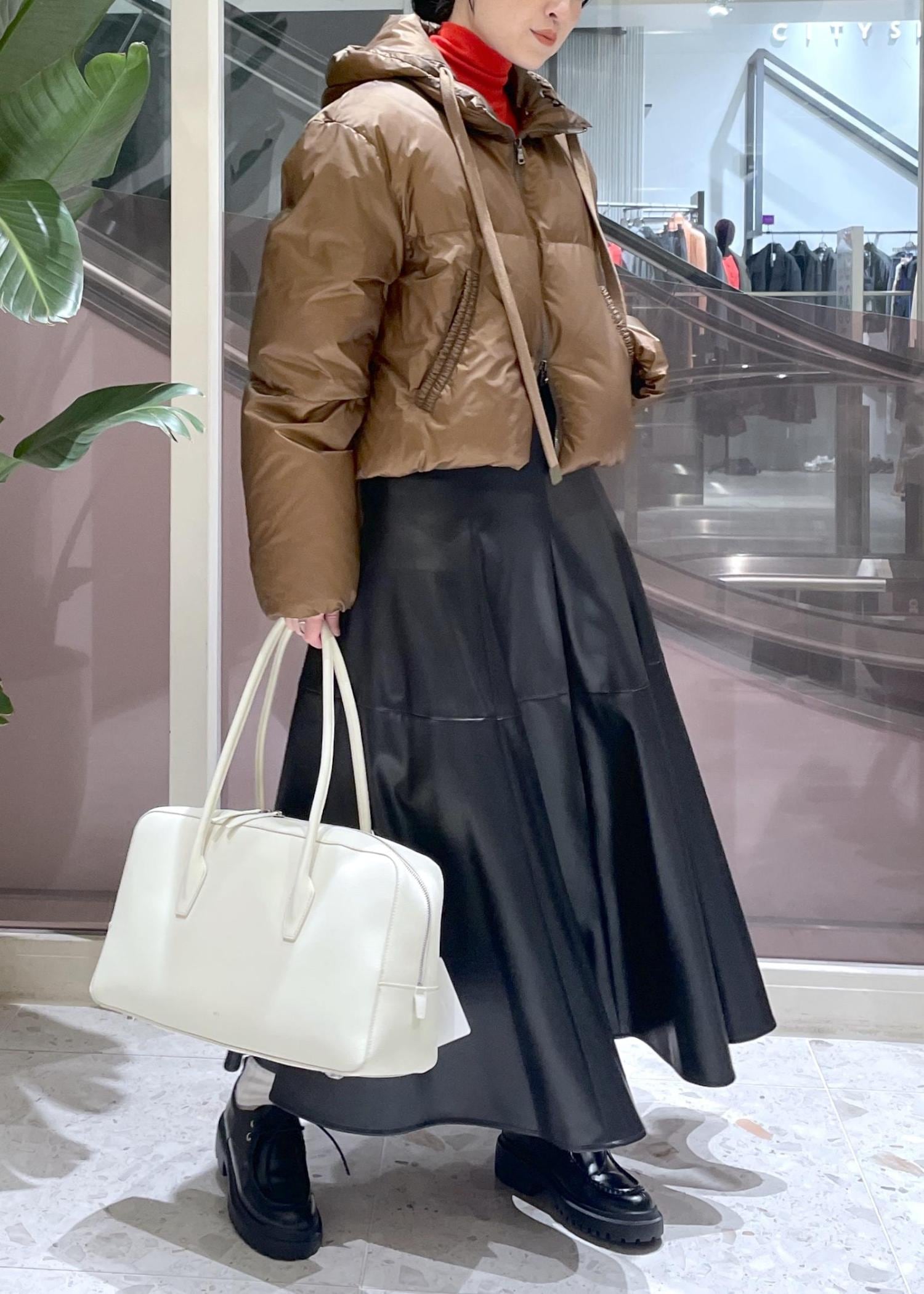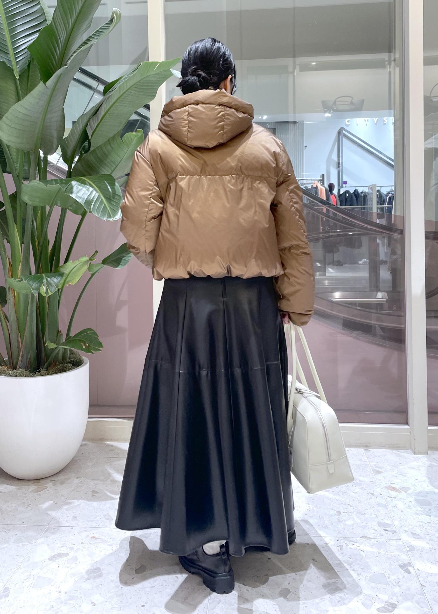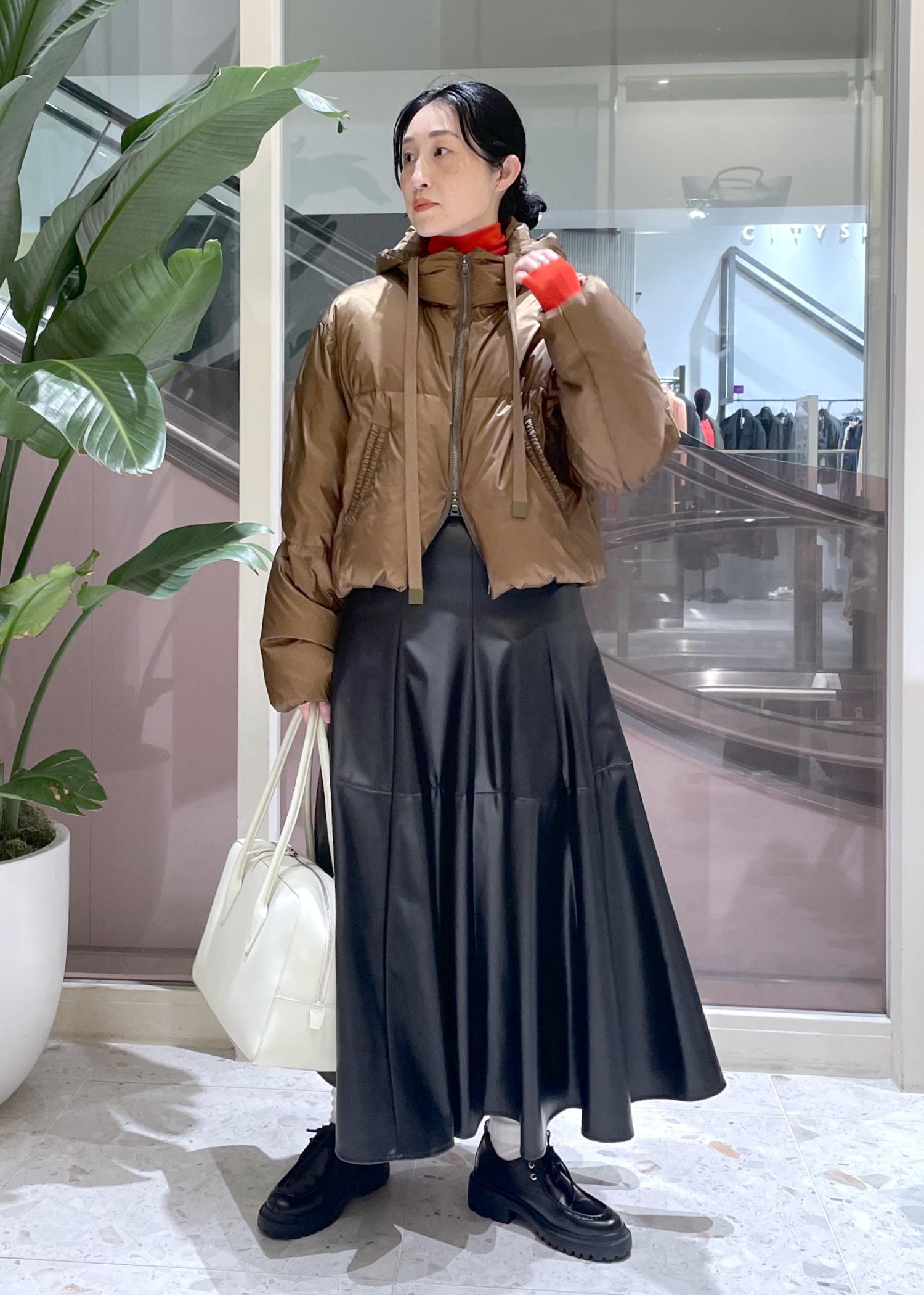 ショート丈とミドル丈がありますが、今回はレザーのフレアスカートに合わせてショート丈をチョイス。