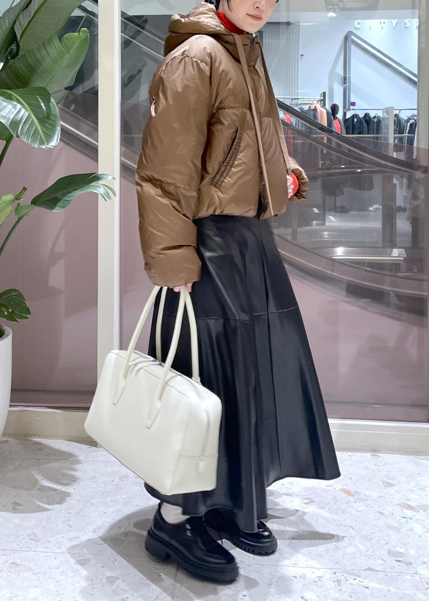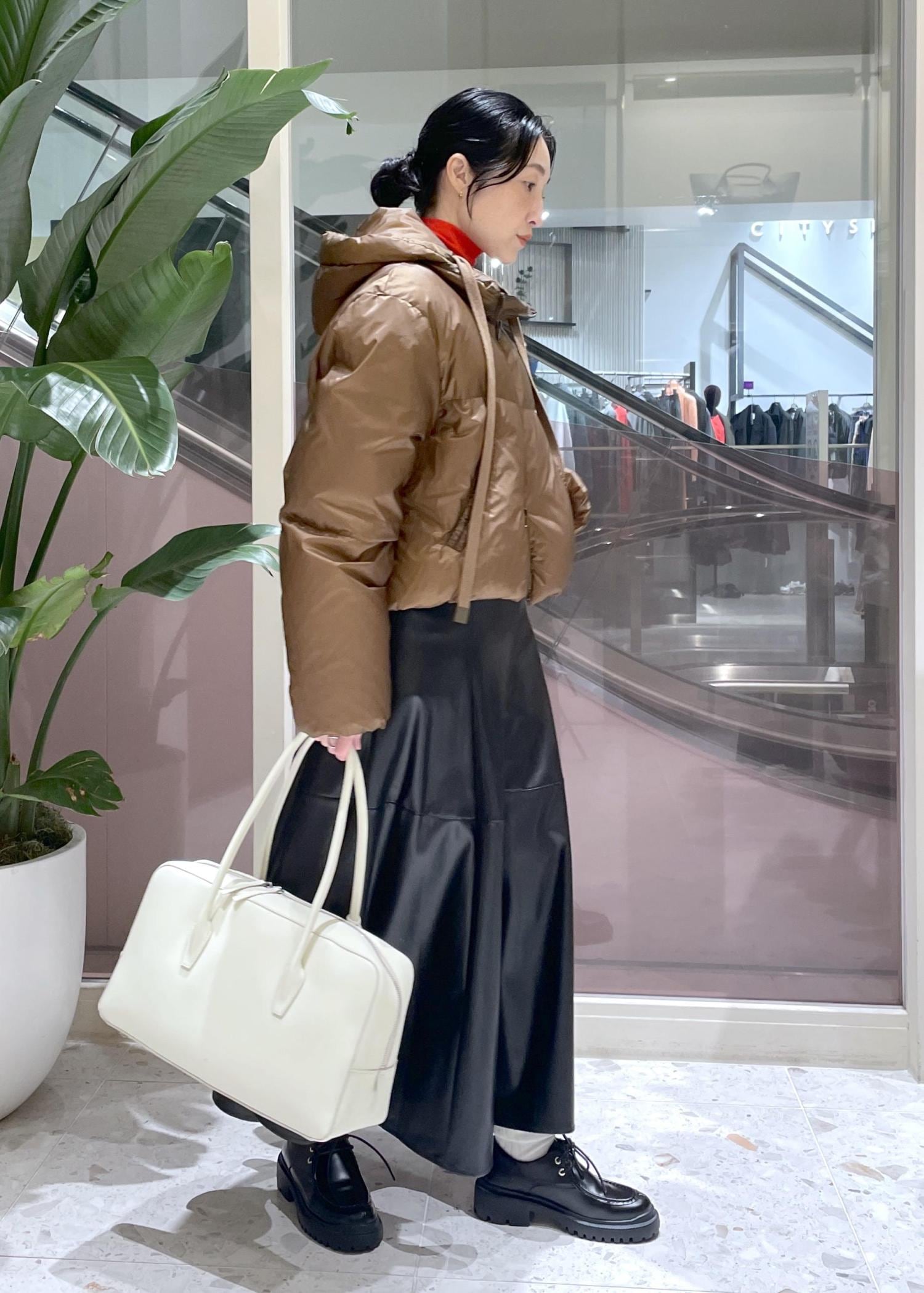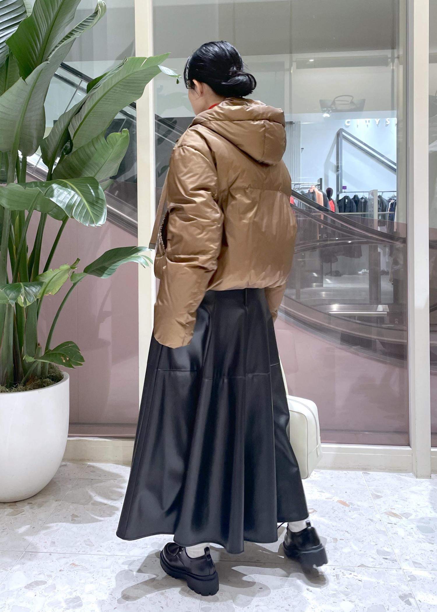 ショート丈とミドル丈がありますが、今回はレザーのフレアスカートに合わせてショート丈をチョイス。