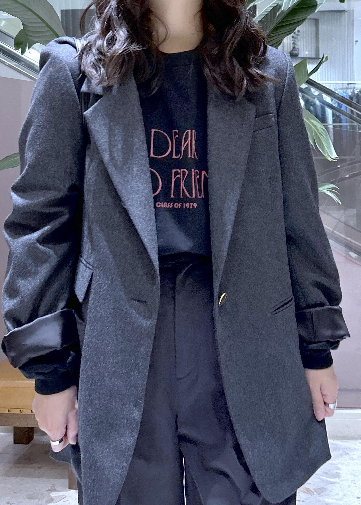 ADAM ET ROPÉ FEMMEシングルブレストスリットジャケットチャコール / 36¥39,600レビューとっても柔らかくて軽いお素材です。ウール素材ですがチクチク感はなく着用いただけます。シルエットが大きすぎないのですっきりとした印象でお使い頂けます。