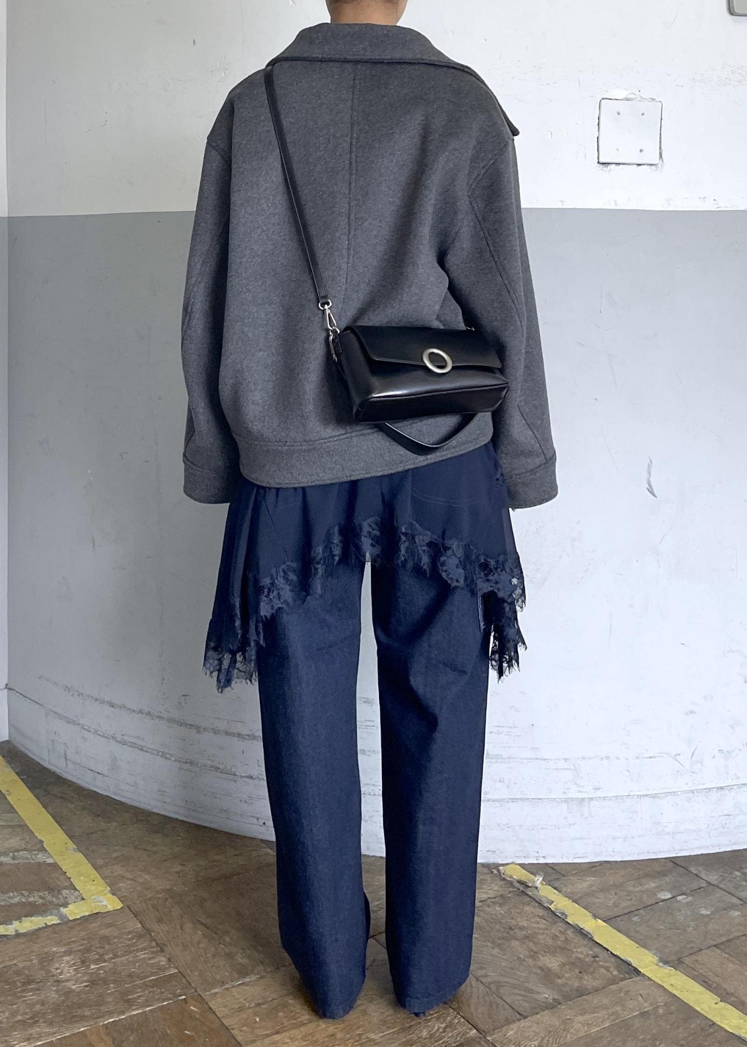 今回のコーディネートは、ブルゾンに、レースの軽やかさを掛け合わせることで、ハードすぎず女性らしさも感じられるスタイルになっていると思います。