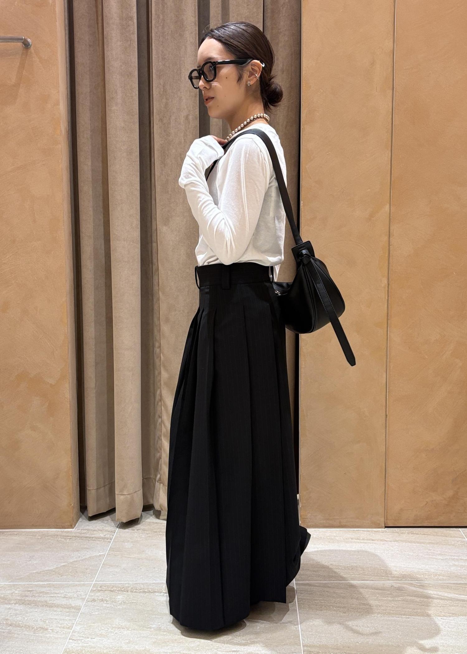 EMOELLE【EMOELLE】フロントプリーツスカートブラック系 / 36¥29,700レビュー少しウエストにゆとりがあるので腰履きで抜け感のあるスタイリングにしても様になるアイテムです。