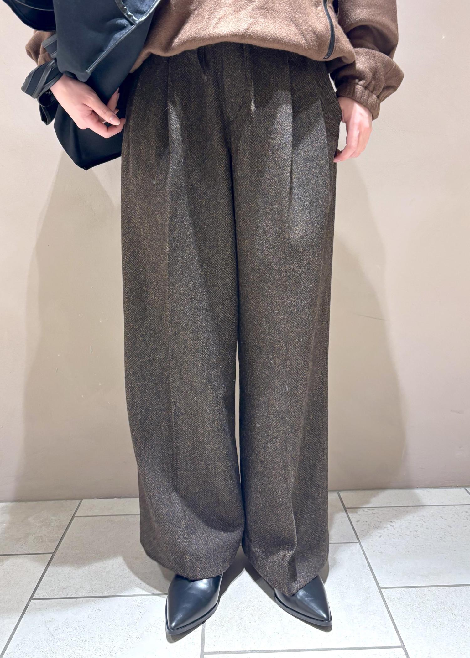 EMOELLE【EMOELLE】へリンボーンワイドパンツダークブラウン系 / 36¥39,600レビュー普段38を選ぶが、36でもゆったりで、丈感も丁度いいサイズ感。